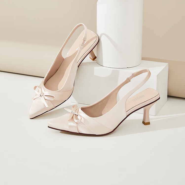 大东(dusto)后空高跟凉鞋女款2025新款夏季仙女风小个子显高尖头单鞋0187 肤色 36
