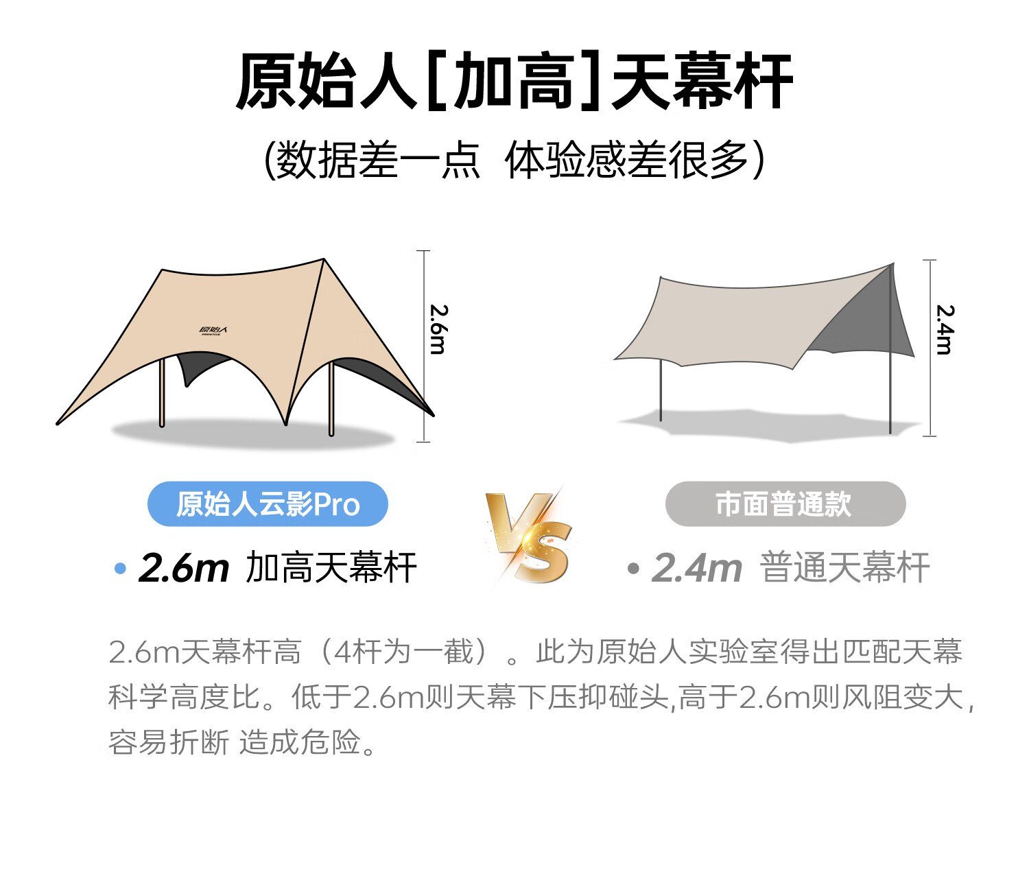 原始人(The Primitive)户外露营天幕帐篷便携式防雨防晒速搭速开免搭建懒人燕尾野营野餐 加大号四角速搭款-搭建无需调整