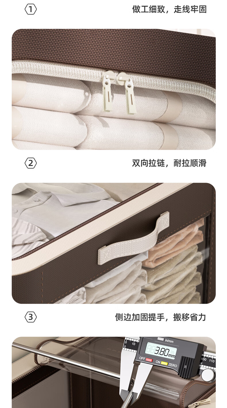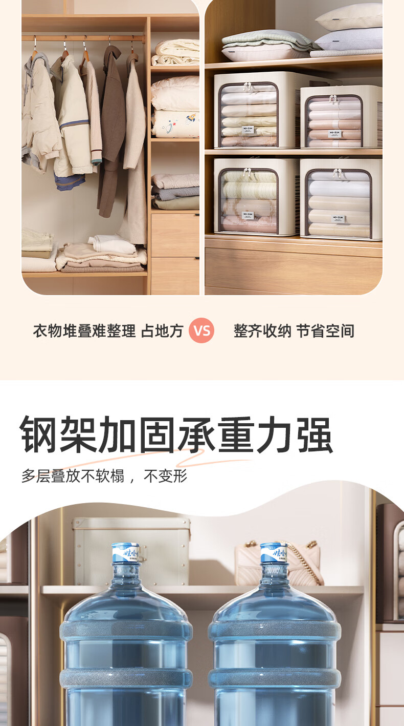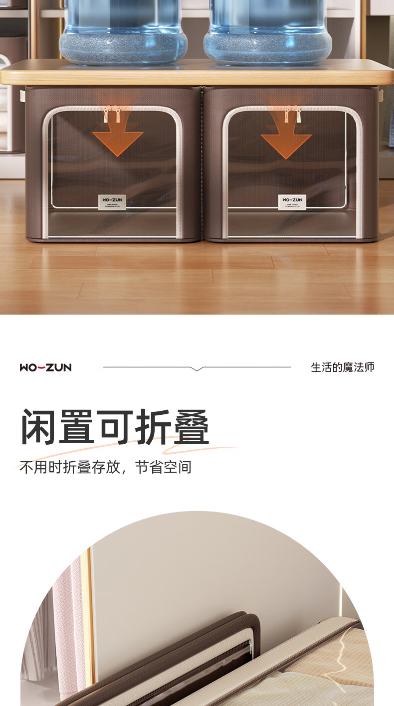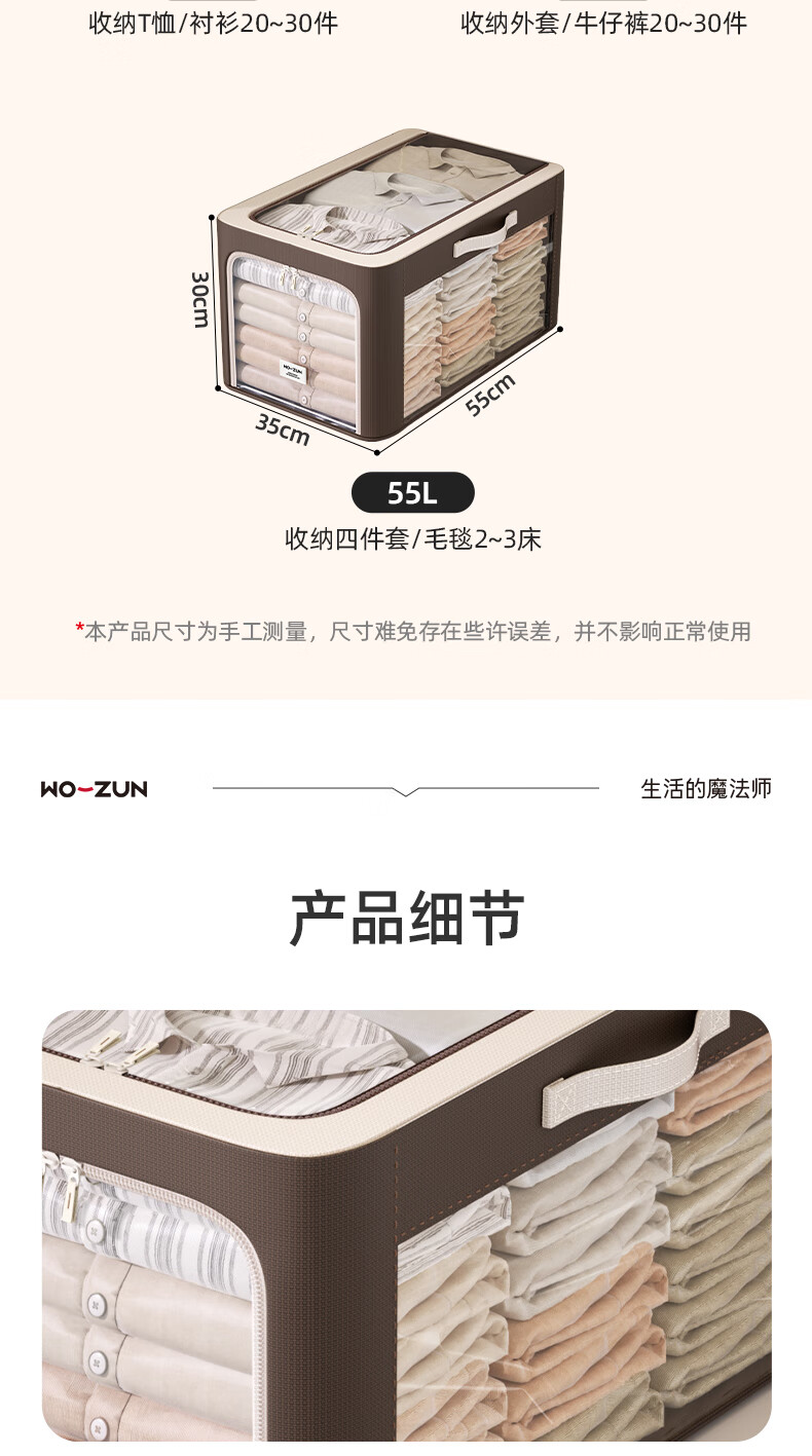 沃尊衣柜衣服收纳箱收纳盒牛津布整理箱透明升级窄长型夹缝衣物储物盒 米色特大号55L【加粗钢架】55*35*30cm