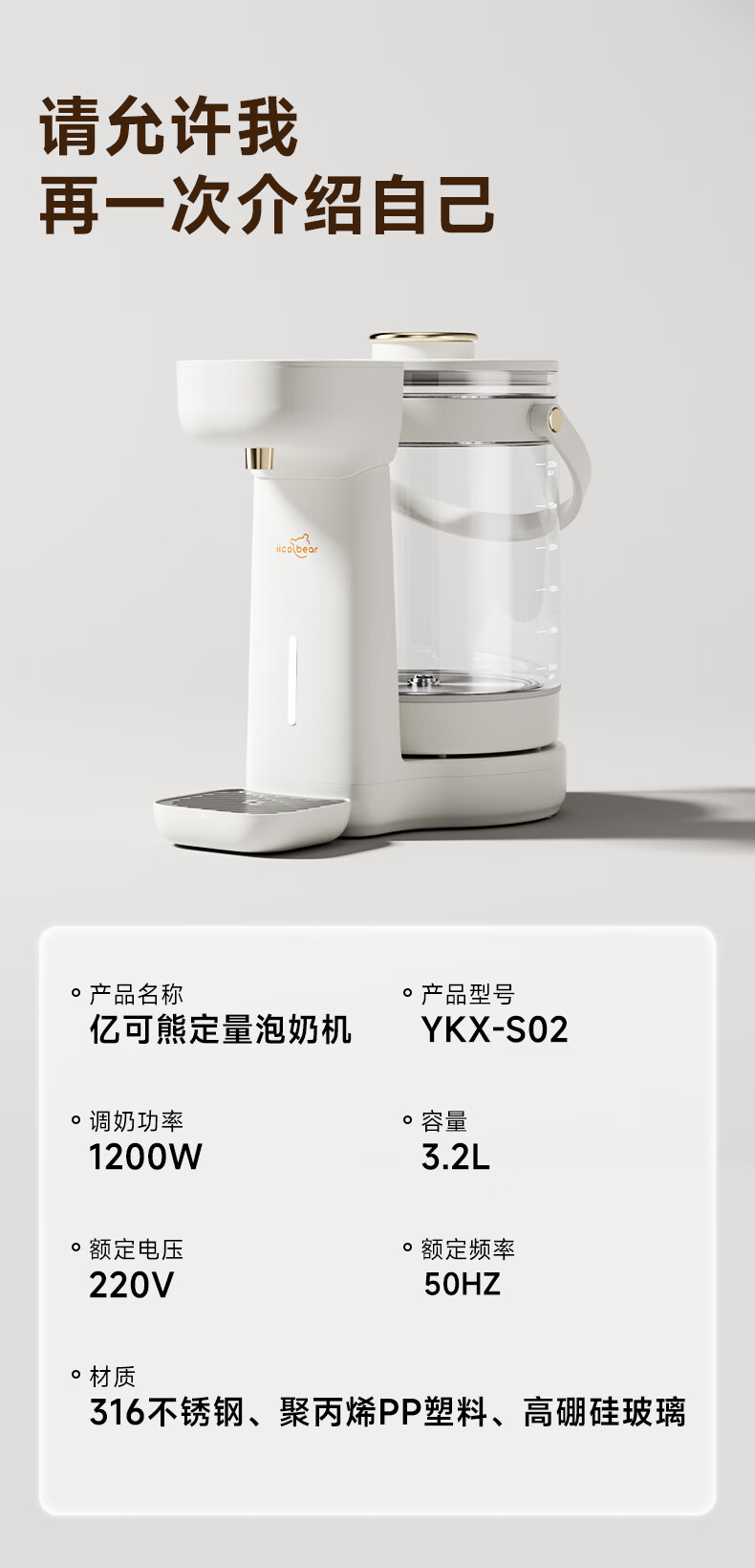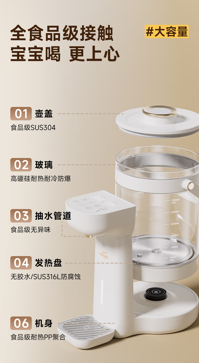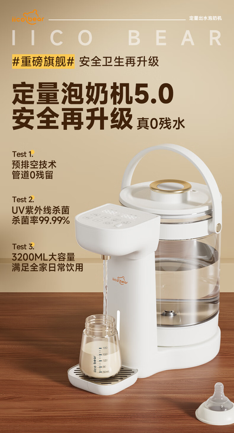 亿可熊(iicobear)恒温热水壶婴儿专用泡奶机自动智能定量出水家用调奶器饮水机 3.2L 【管道0残水/UV杀菌/72H恒温】