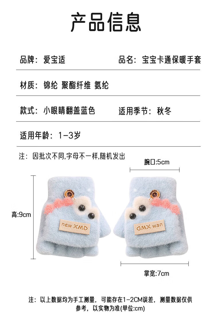 爱宝适婴儿手套秋冬保暖男女宝宝翻盖半指手套儿童加绒手套蓝色2260