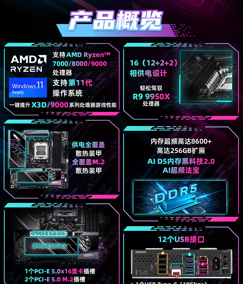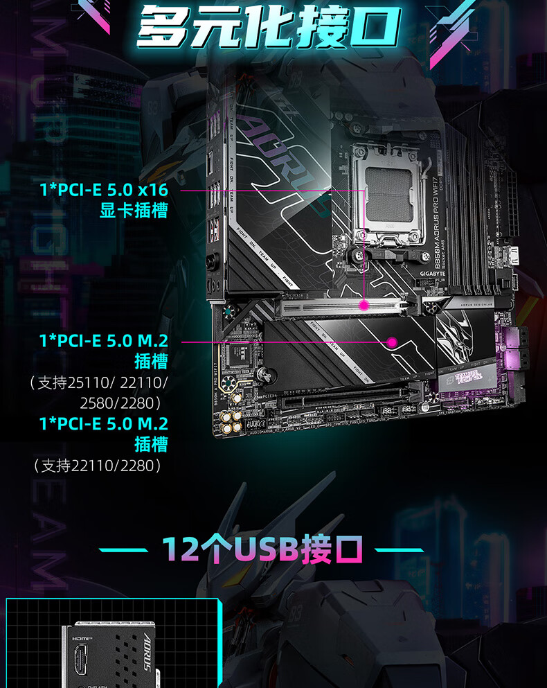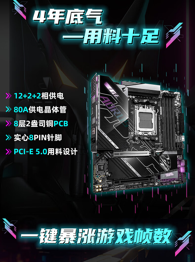 技嘉(GIGABYTE)电竞雕B850M AORUS PRO WIFI7主板DDR5支持AMD CPU AM5 9700X 9950X 9900X 9600X畅玩三角洲行动