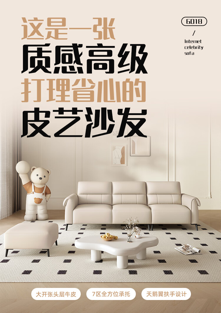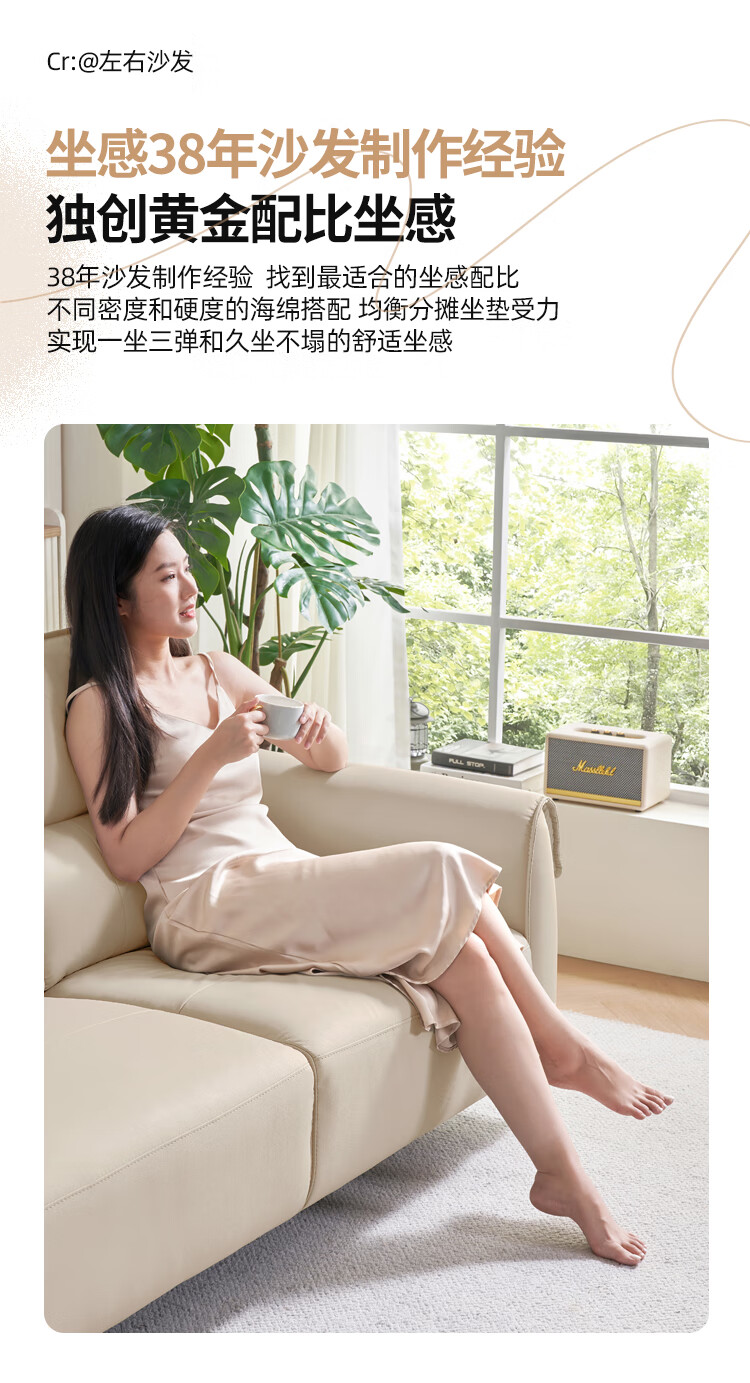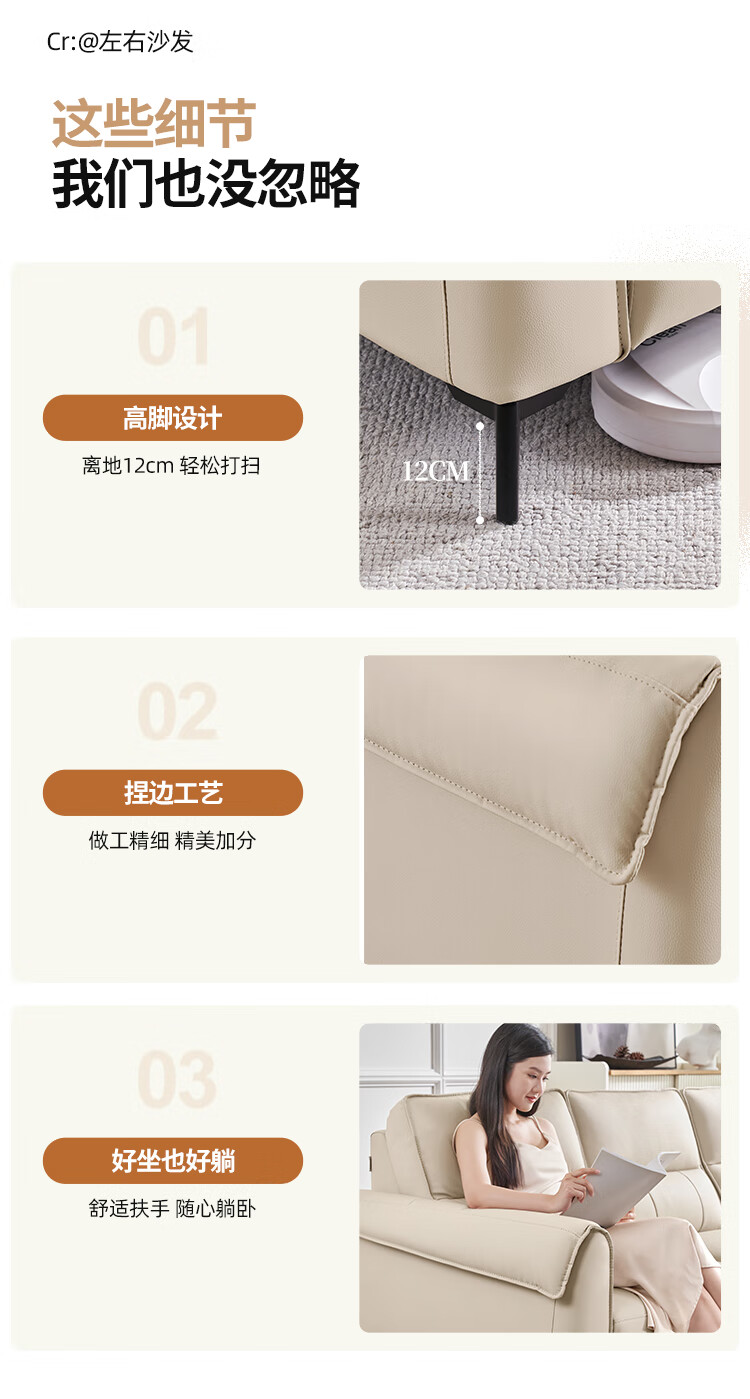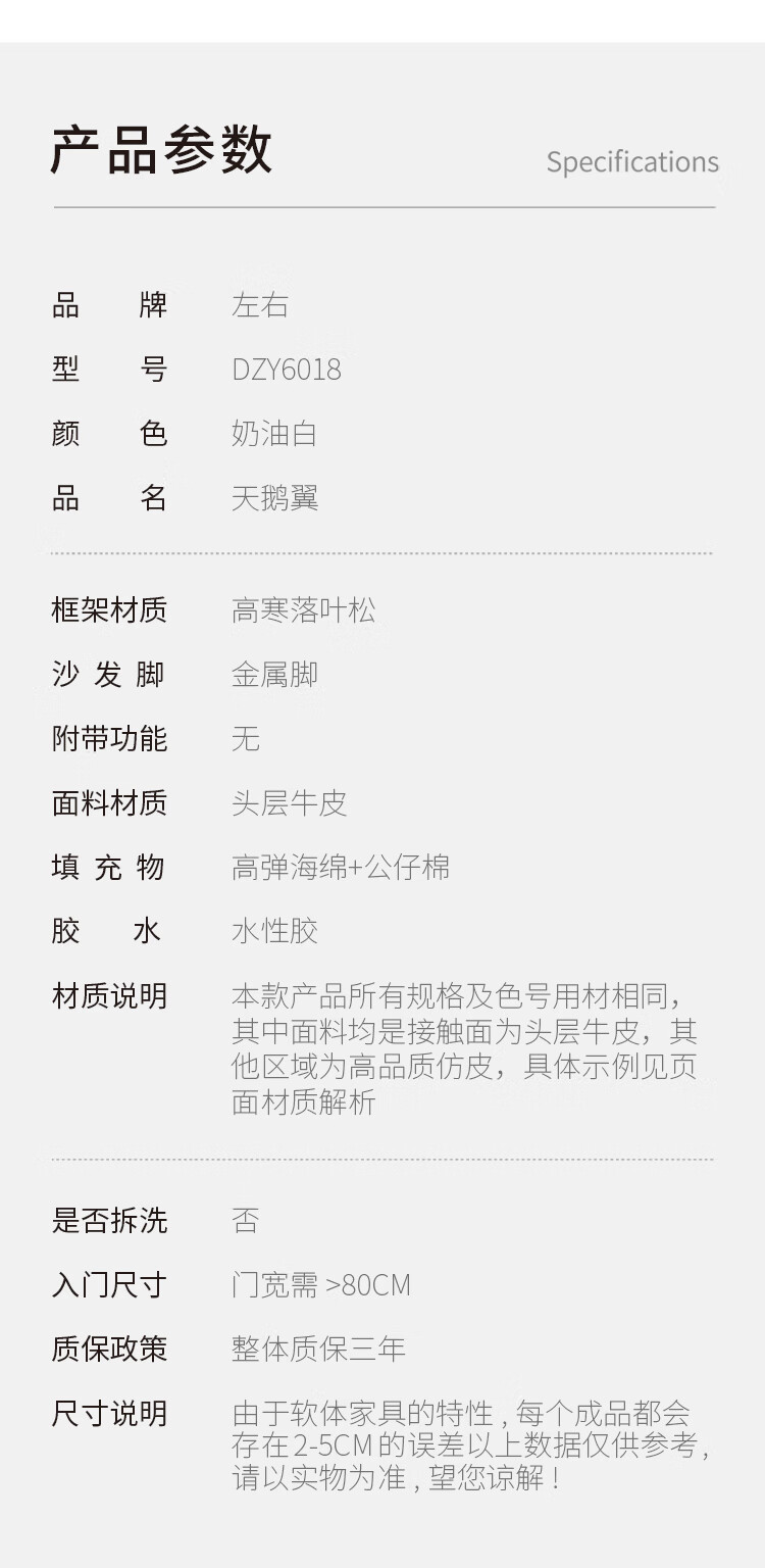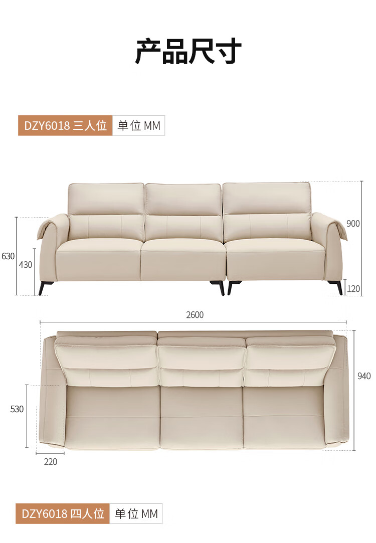 左右沙发客厅网红奶油风小户型直排真皮沙发DZY6018三人位 青云灰