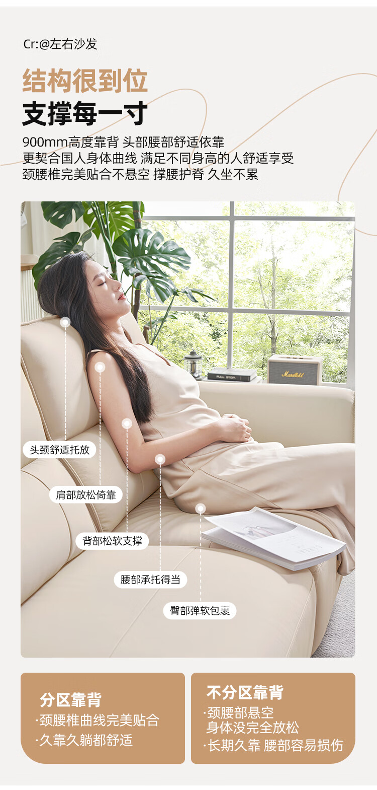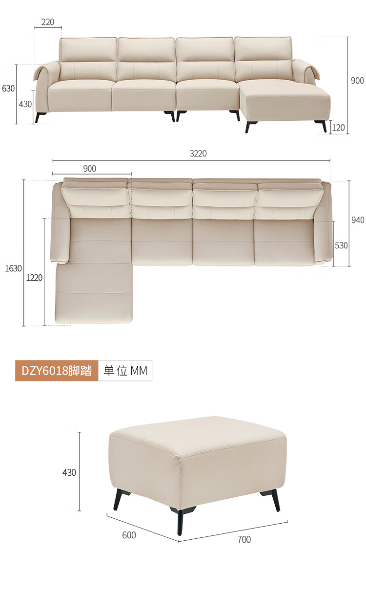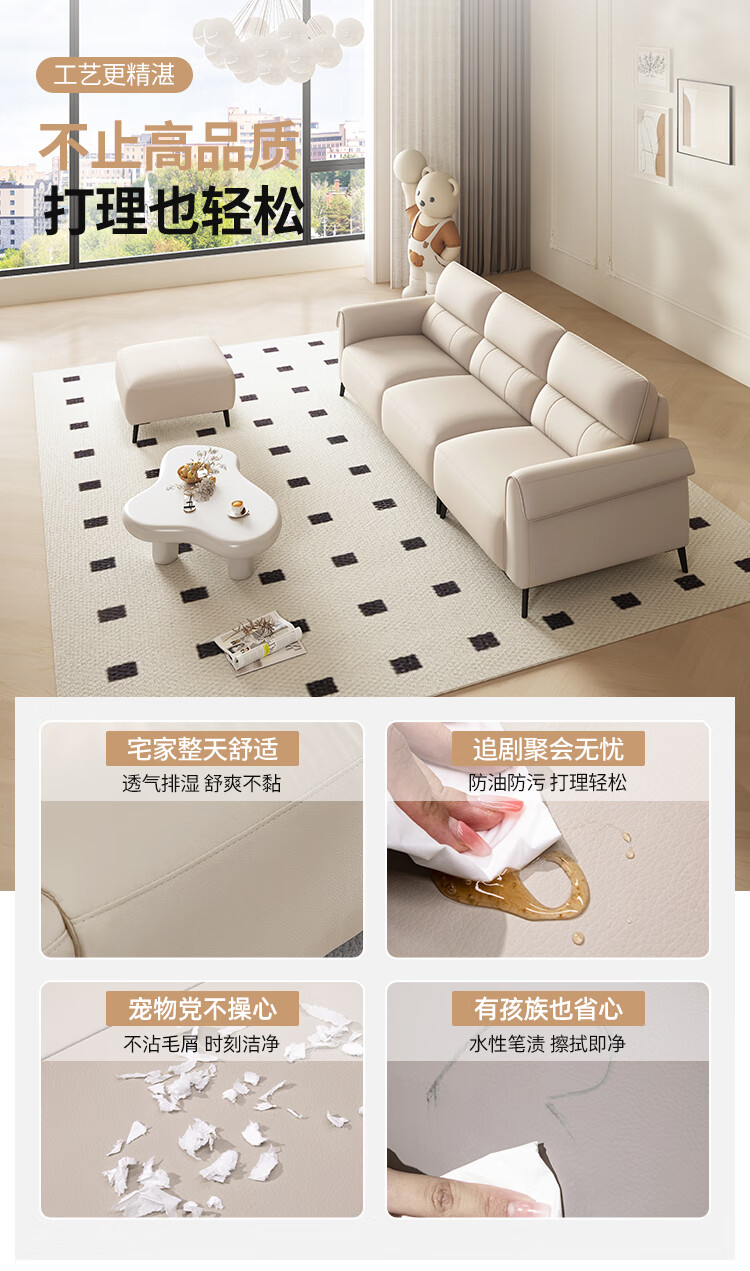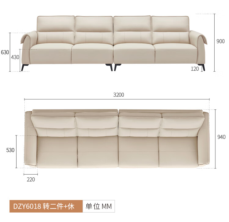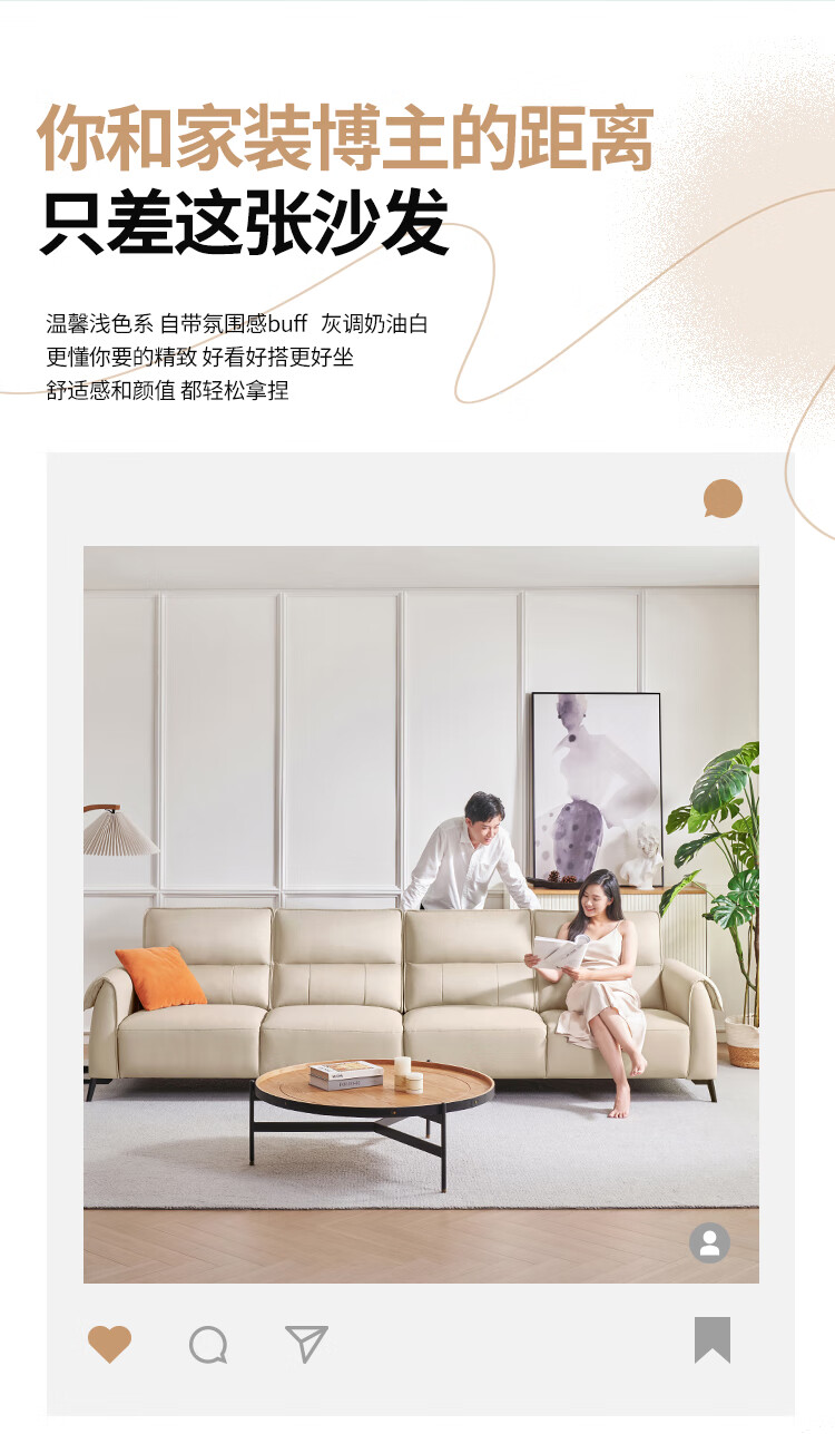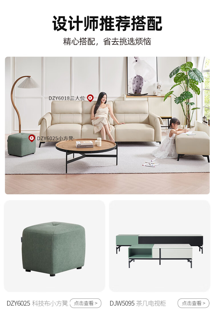 左右沙发客厅网红奶油风小户型直排真皮沙发DZY6018三人位 青云灰