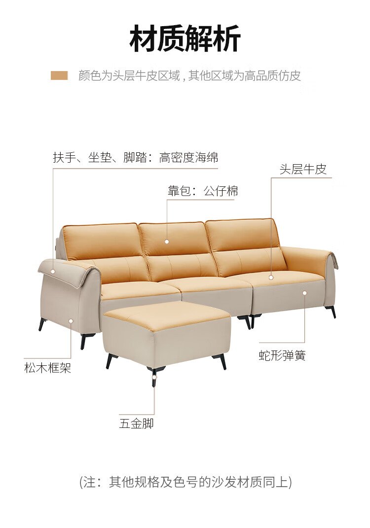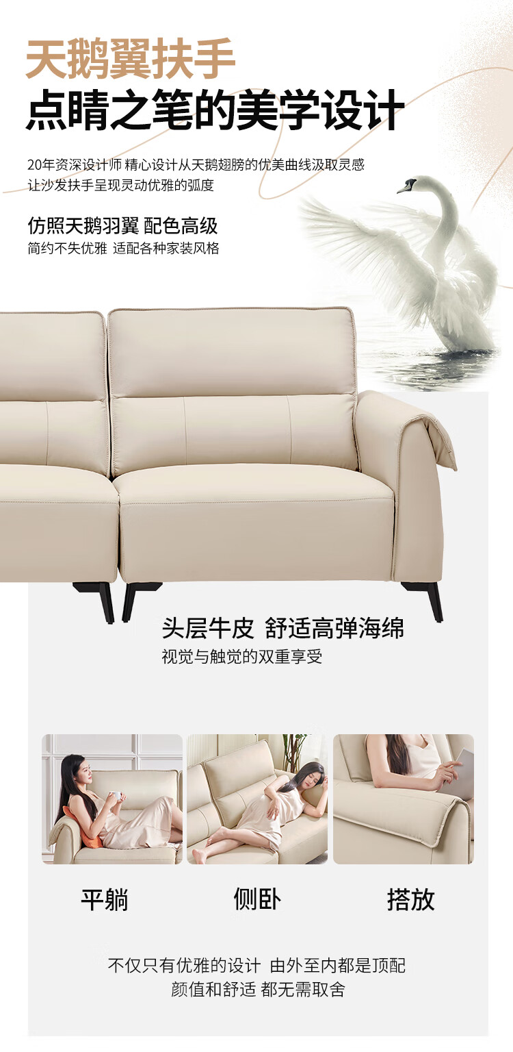 顾家家居(KUKA)【头层牛皮】劳伦斯沙发客厅大户型羽毛填充1286黑四人位3.36m