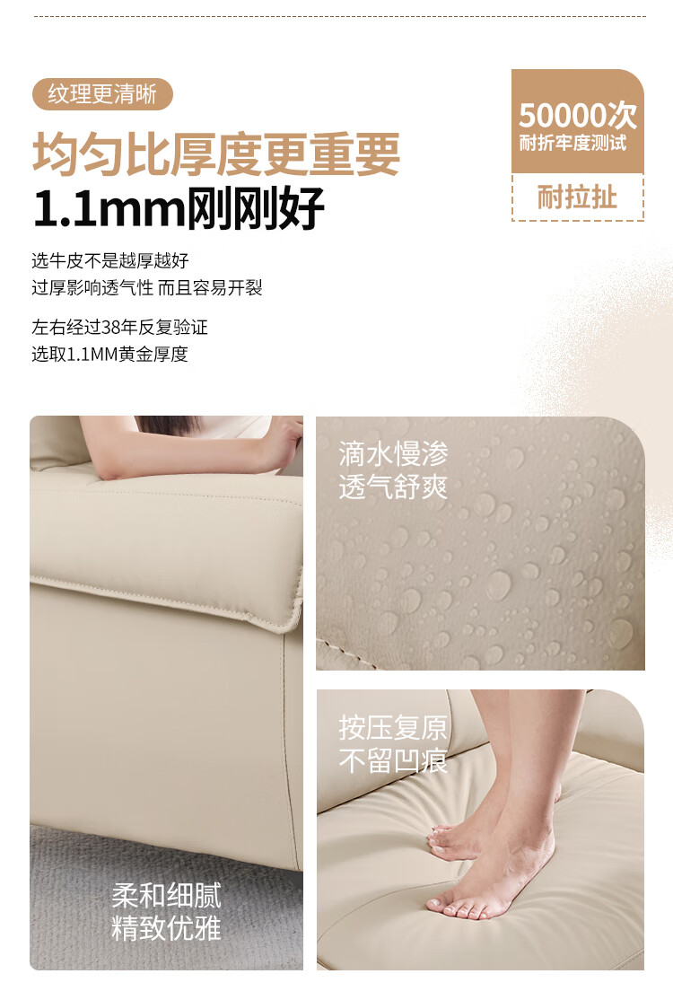 顾家家居华夫格奶油风头层牛皮床双人床卧室DS8109B馥芮白高脚款1.8