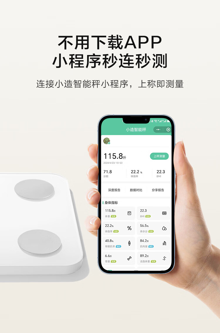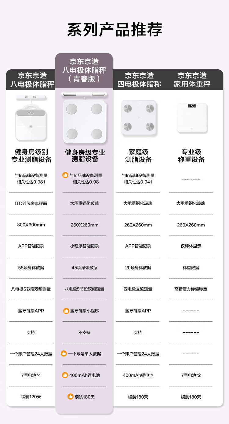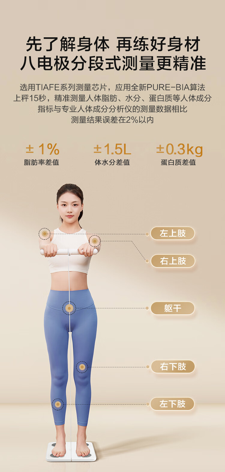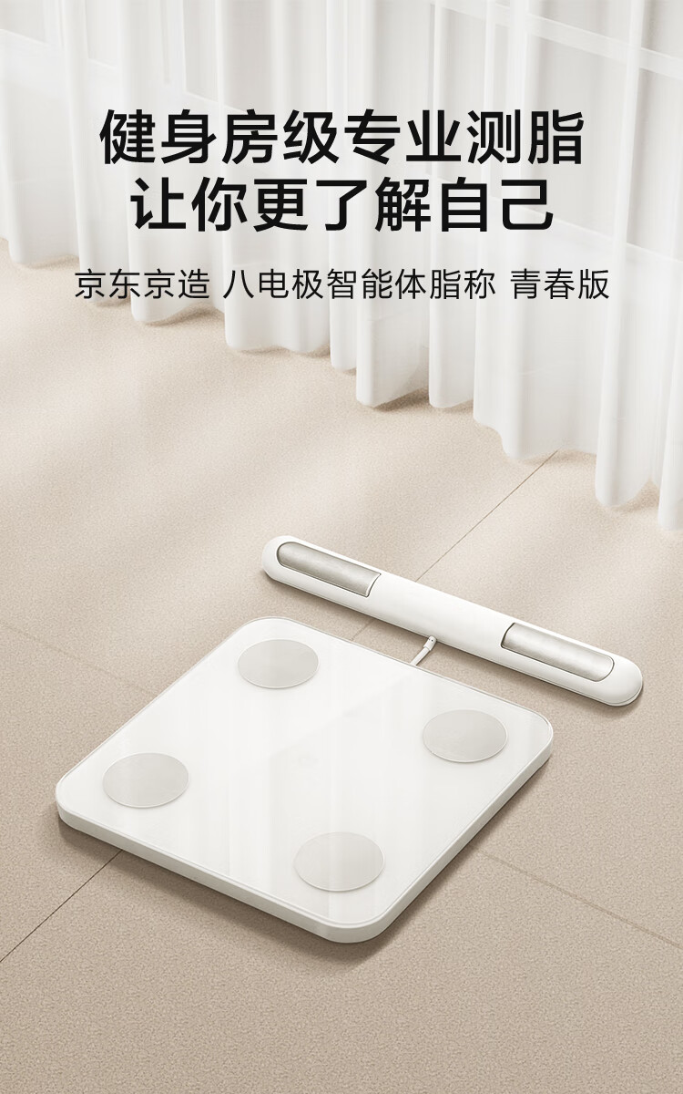 京东京造八电极智能体脂秤【青春版】电子秤健康秤 高精度测量塑形家用体重秤 蓝牙连接 可充电