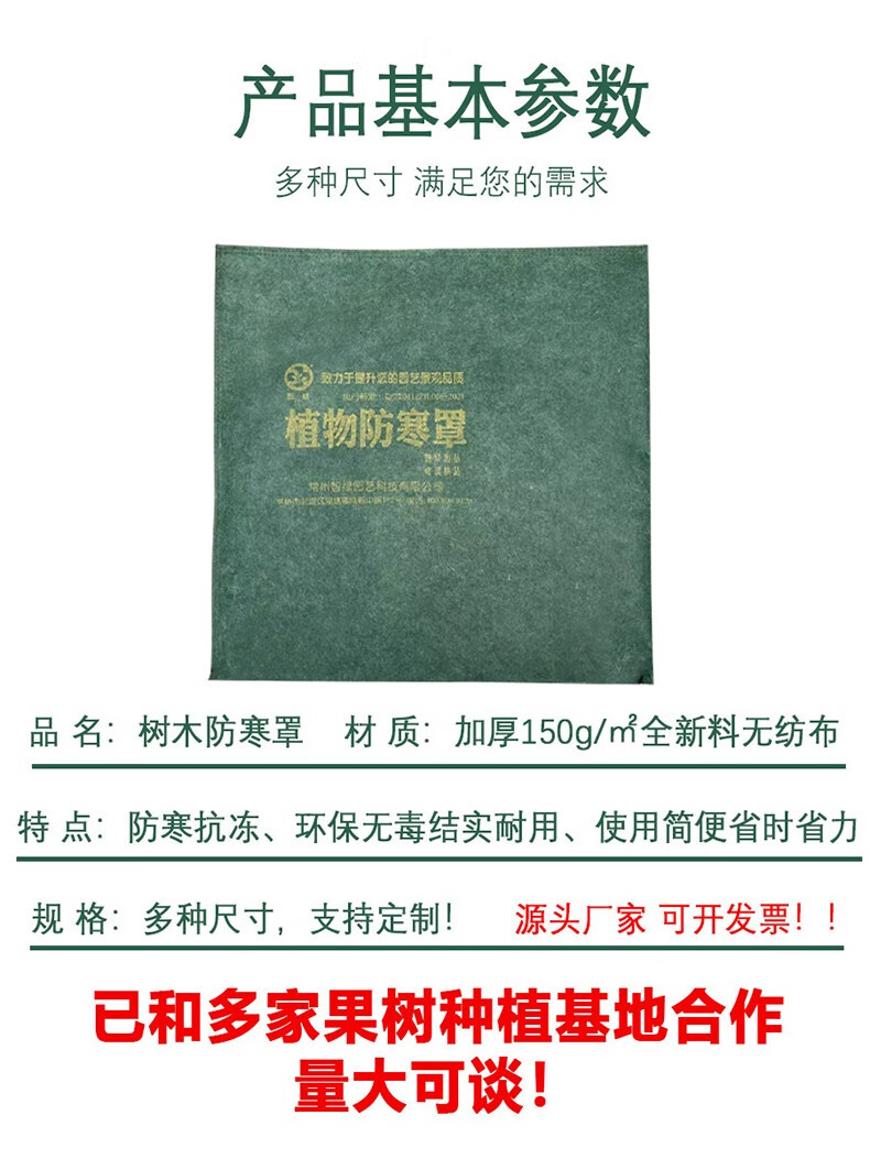 植物防寒罩保暖保温布袋果树木越冬防冻罩花卉过冬防风透气无纺布 宽1.0米 高1.5米防寒罩