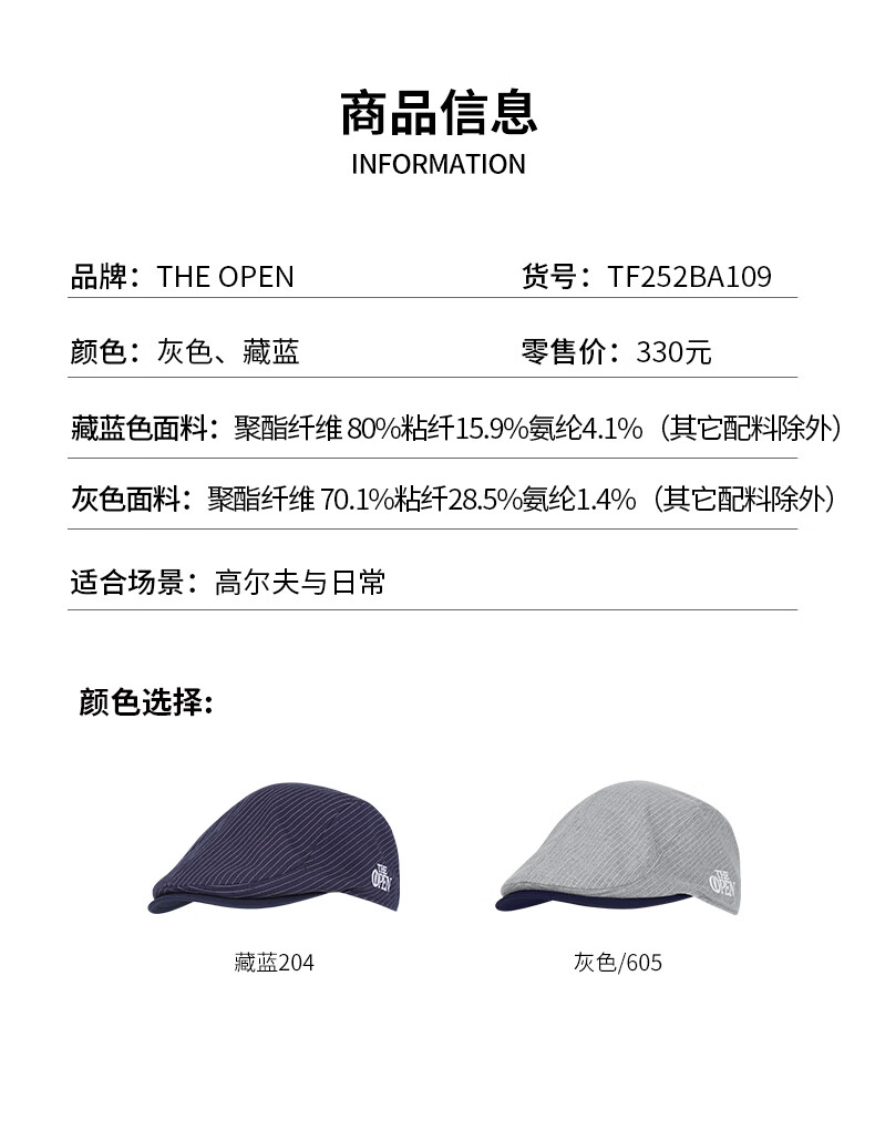 THE OPEN CHAMPIONSHIP英国公开赛高尔夫球帽女25全新时尚复古英伦风高尔夫鸭舌帽女 藏蓝 均码