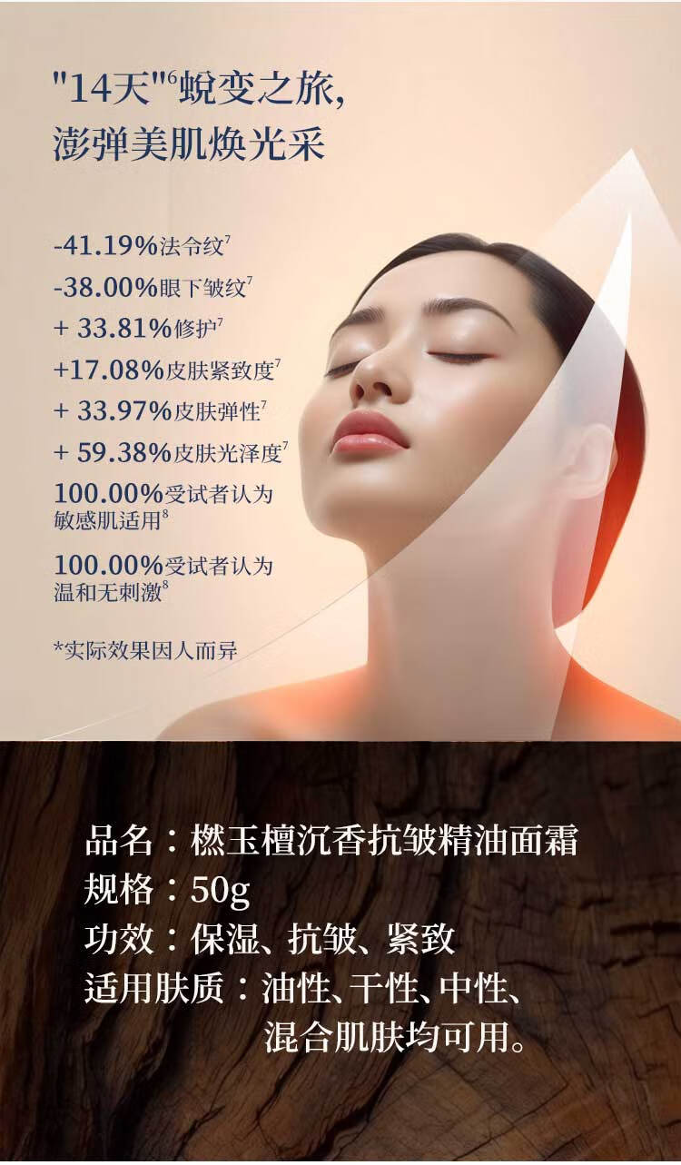 橪玉檀沉香抗皱精油面霜紧致滋润不油腻植物萃取秋冬保湿乳霜50g