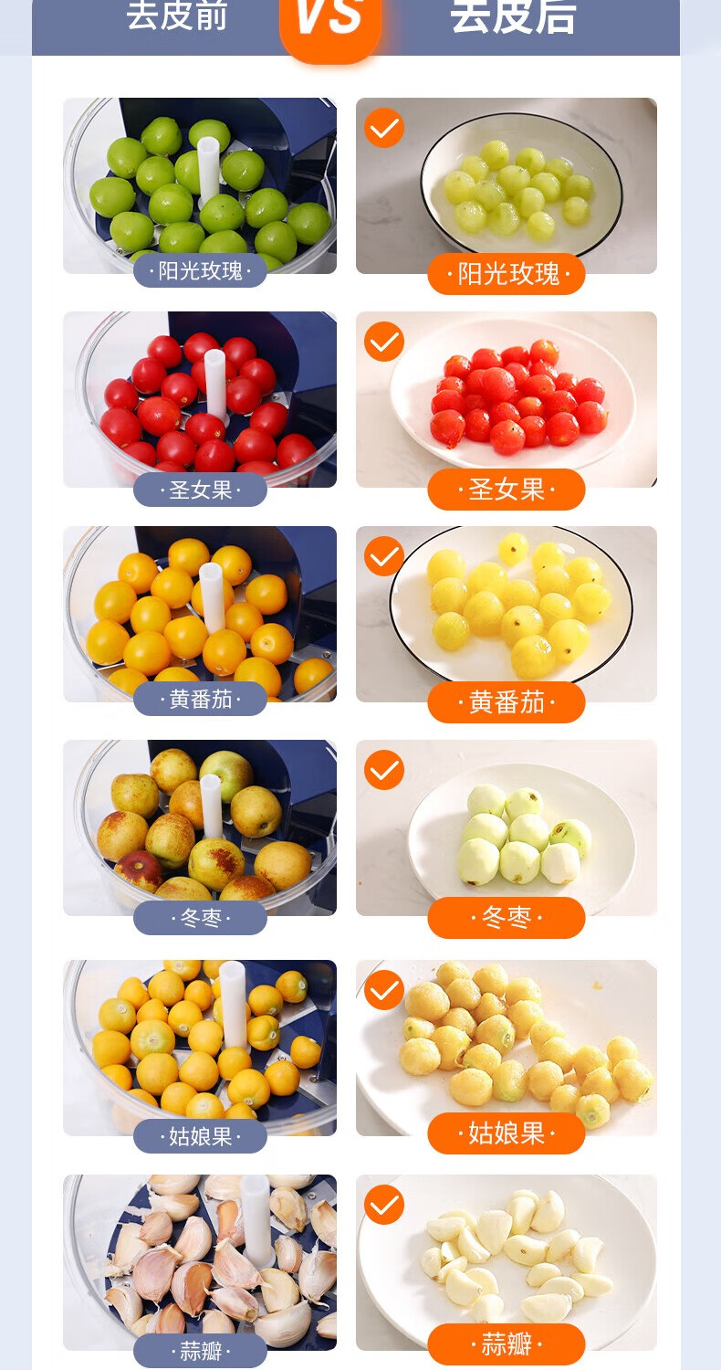 箱居全自动葡萄去皮机商用家用大蒜头水果去皮神器奶茶店水果剥皮机 果蔬自动去皮机【升级款】