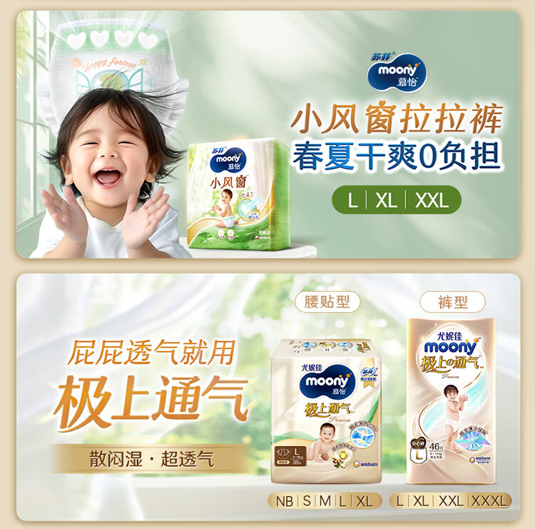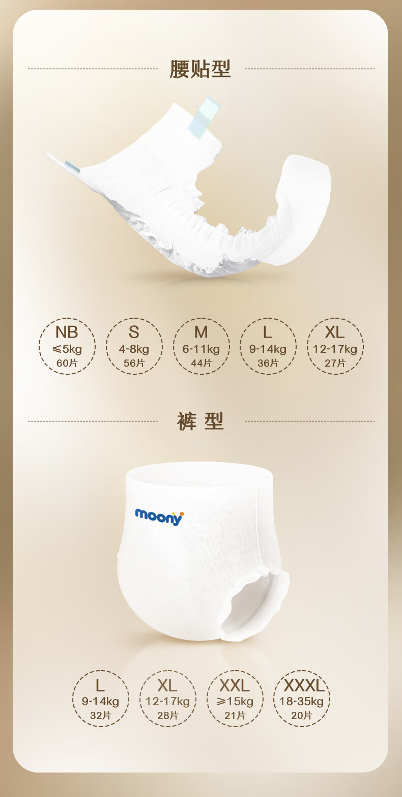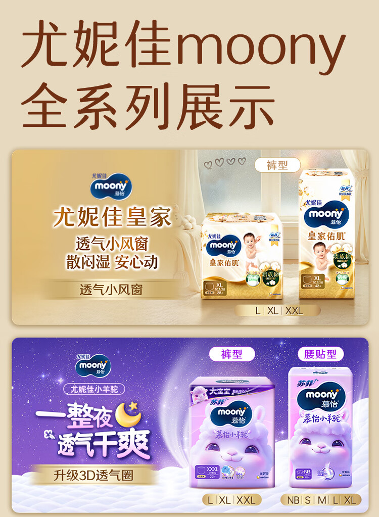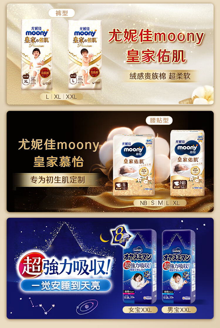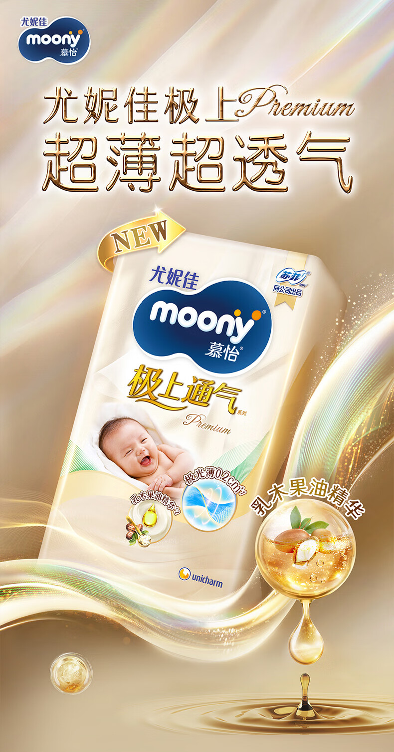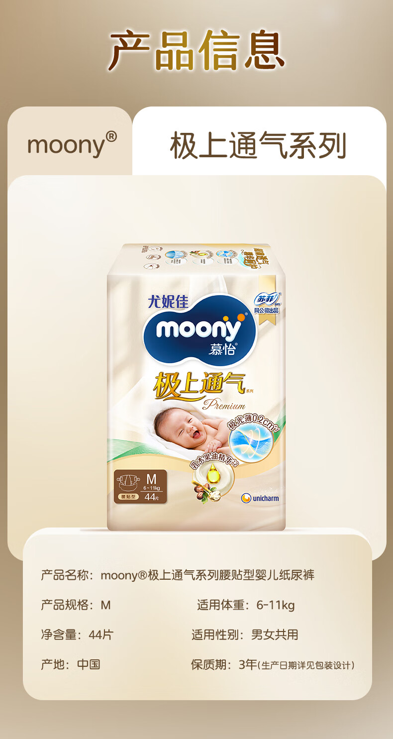 MOONY尤妮佳慕怡极上系列纸尿裤M44片 (6-11kg)中包装尿不湿超薄散热