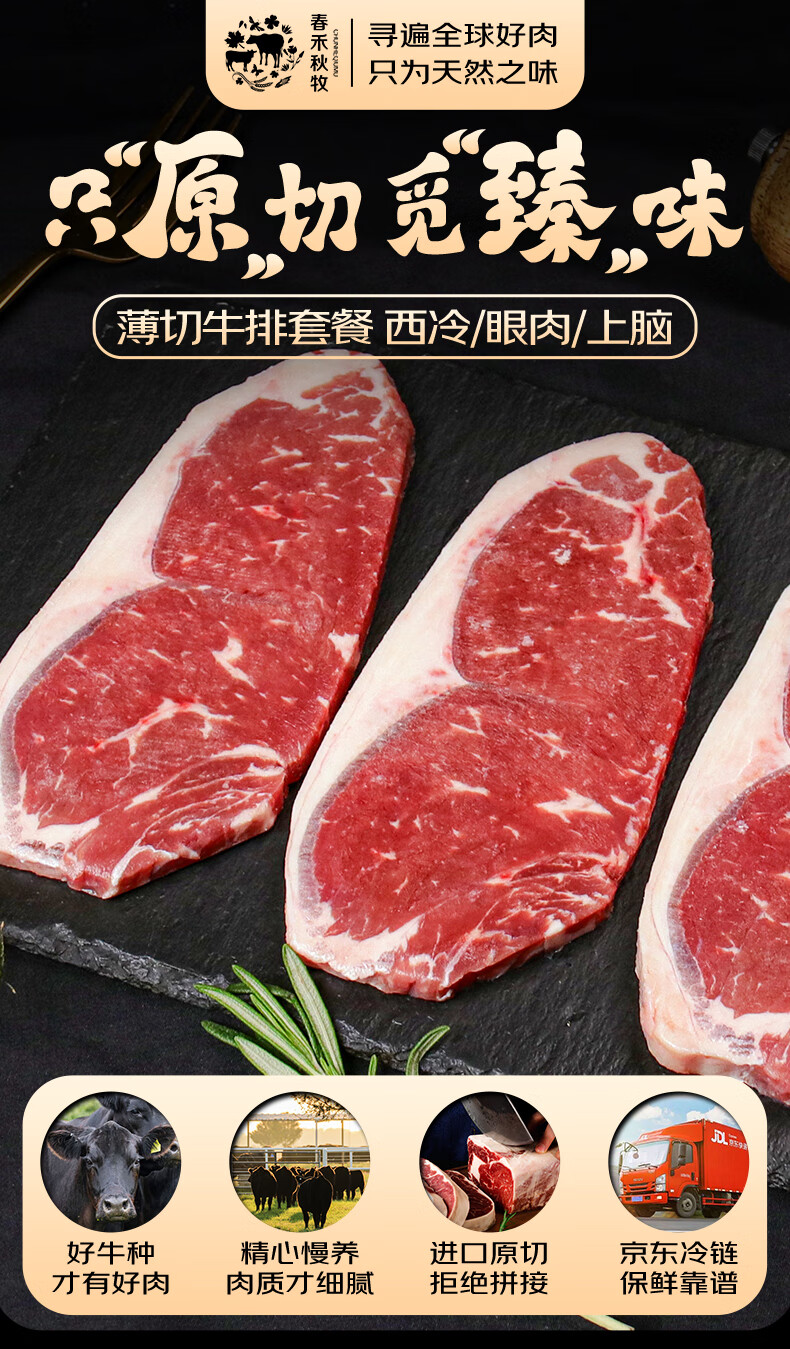 春禾秋牧 进口谷饲薄切西冷眼肉上脑牛排套装 原切牛排牛肉生鲜 火锅烧烤 【热销款】西冷*1片+眼肉*1片+上脑*2片