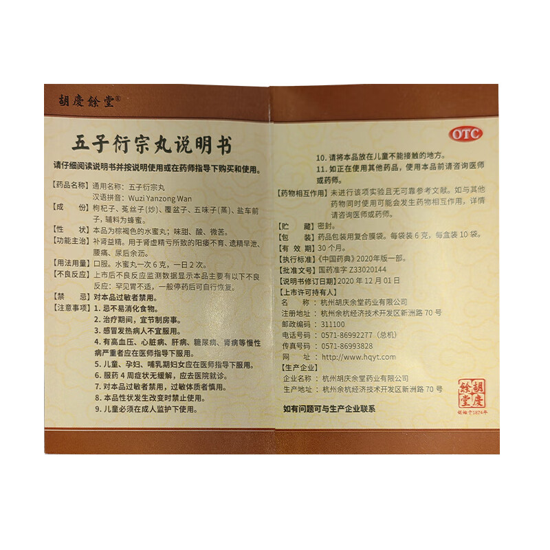 胡庆余堂 五子衍宗丸6g*10袋 补肾益精 肾虚精亏 阳痿不育遗精早泄 腰痛尿后余沥