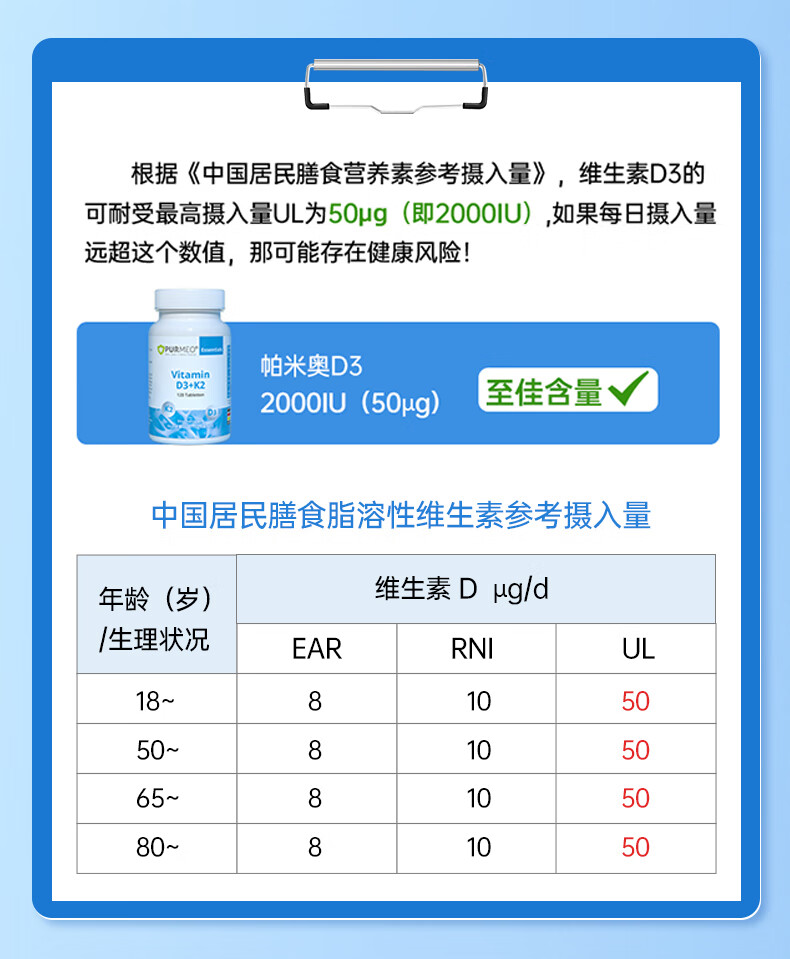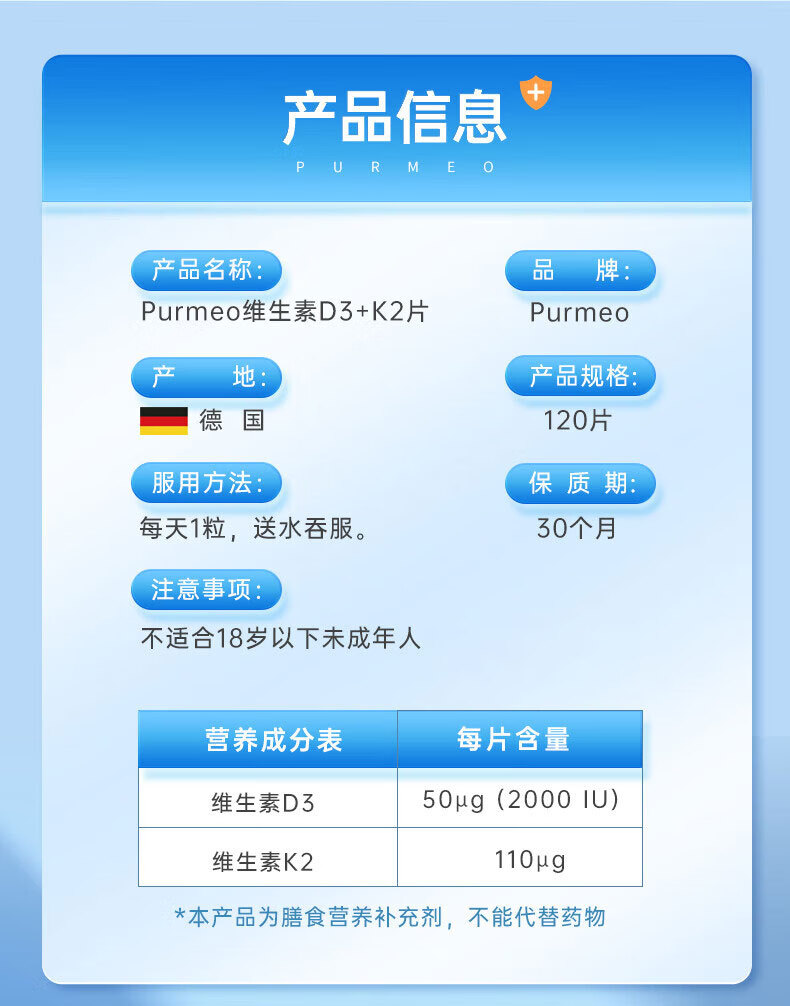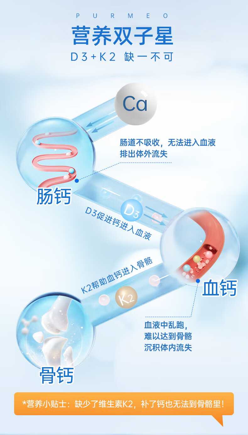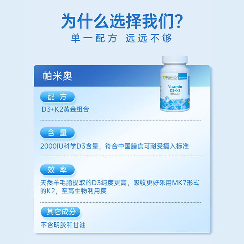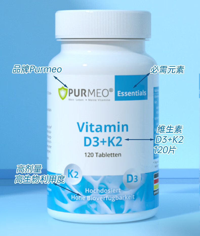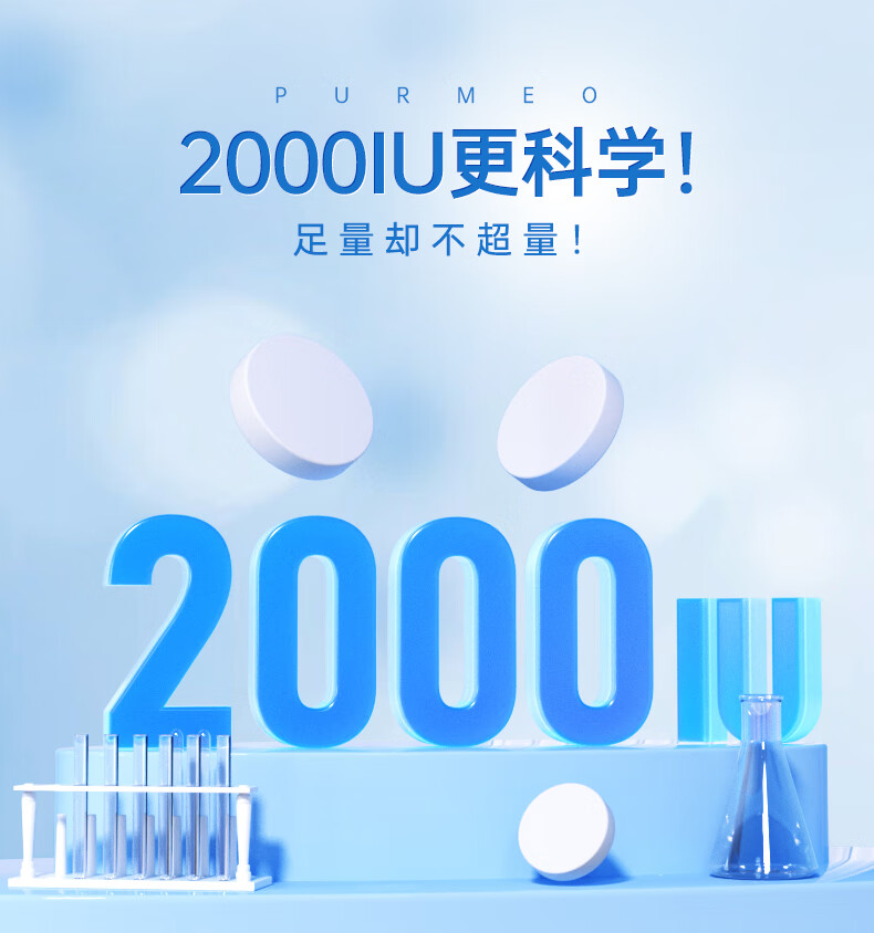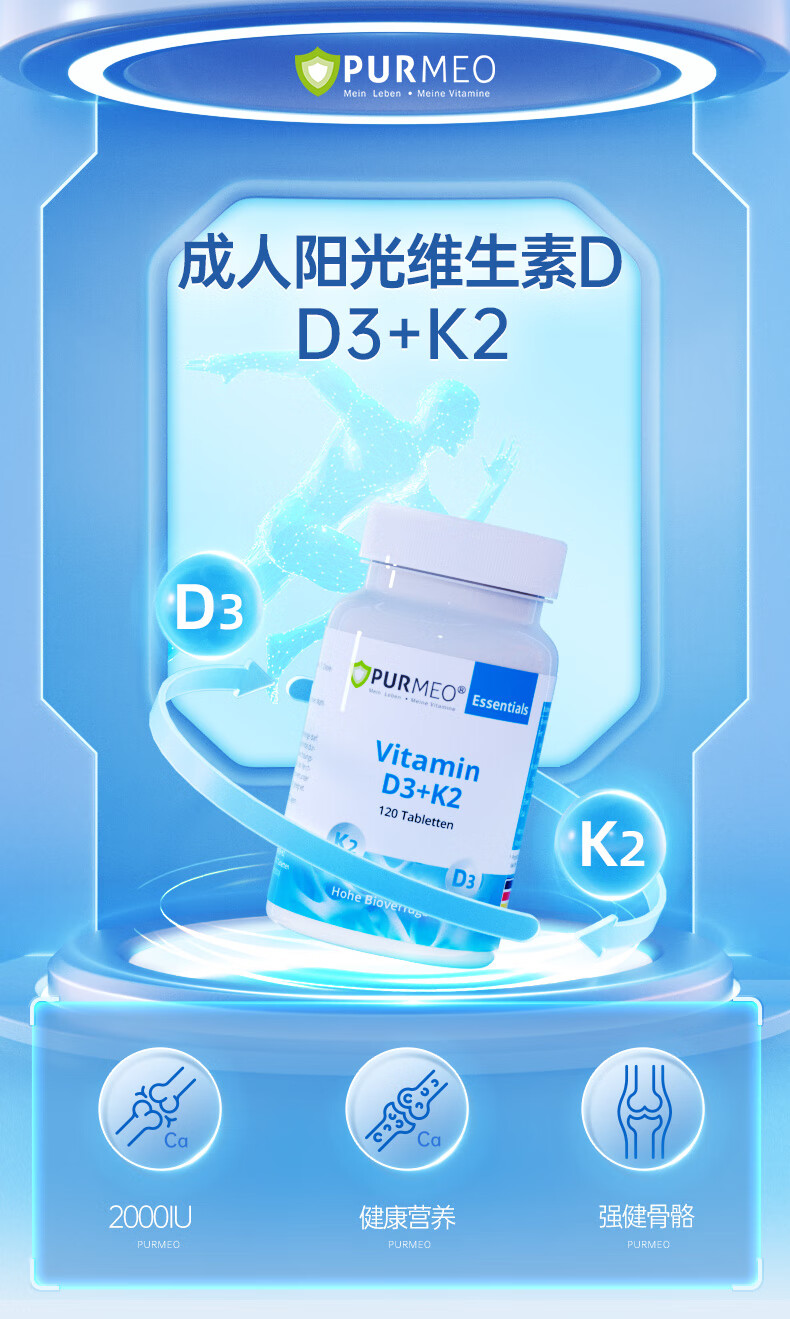 purmeo帕米奥2000iu成人活性维生素D3阳光瓶进口D3+K2男女维他命vd
