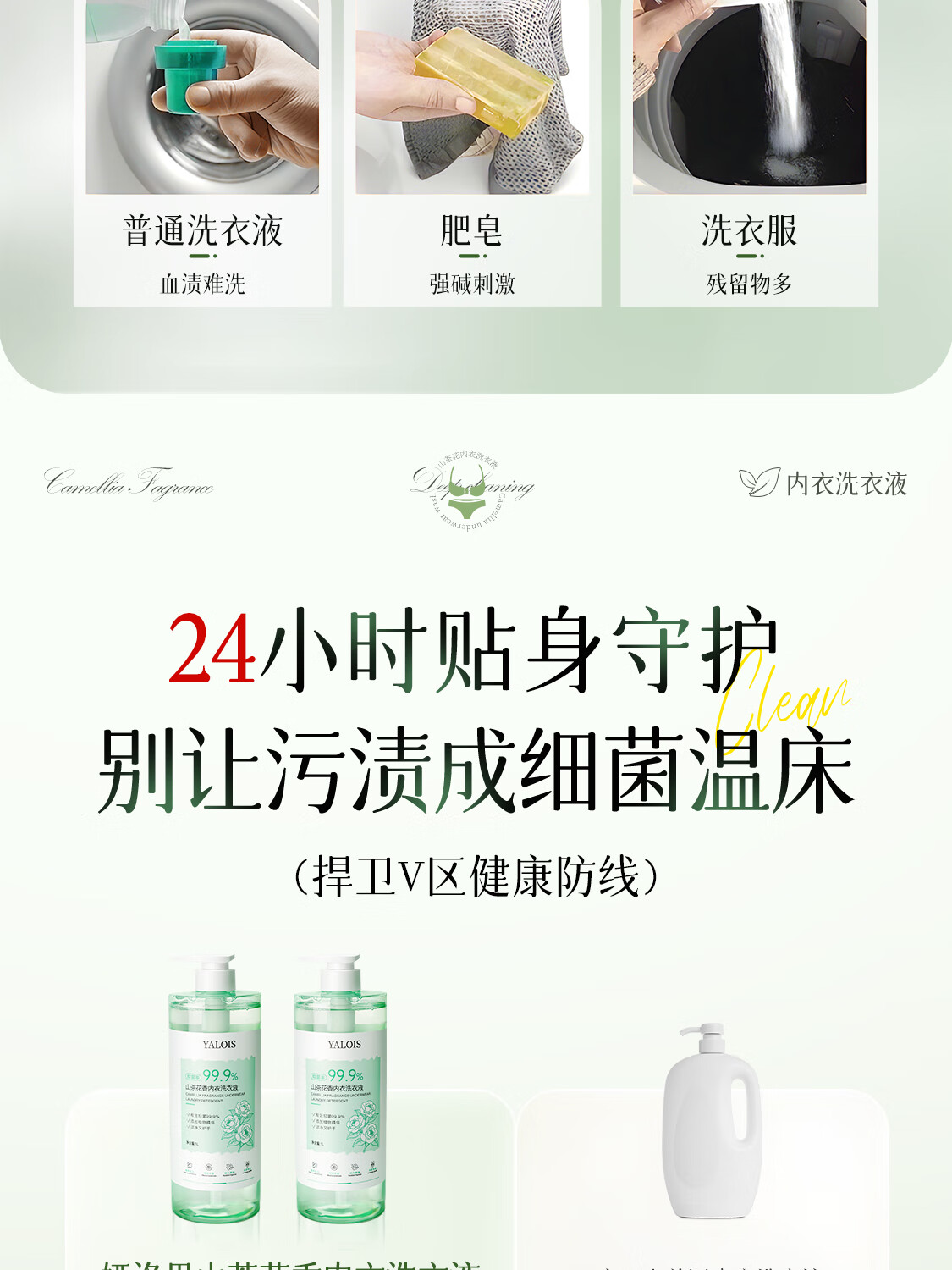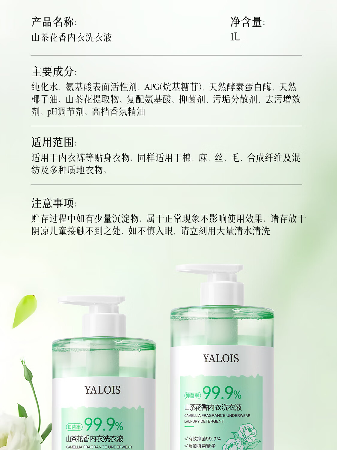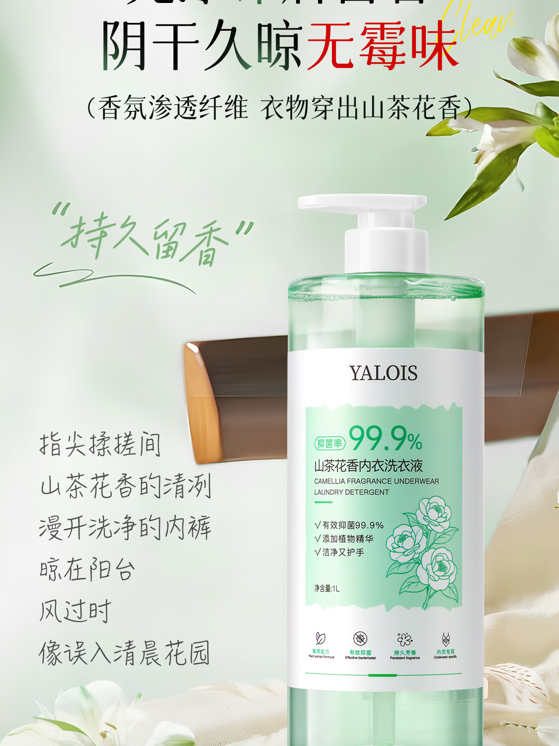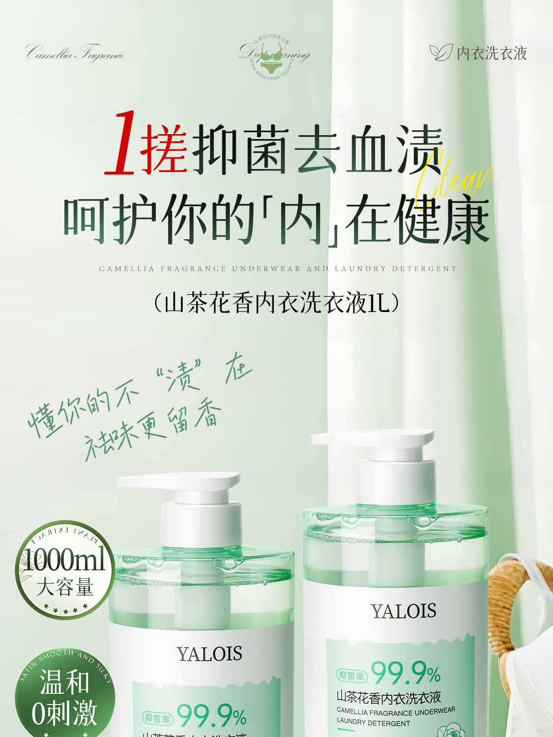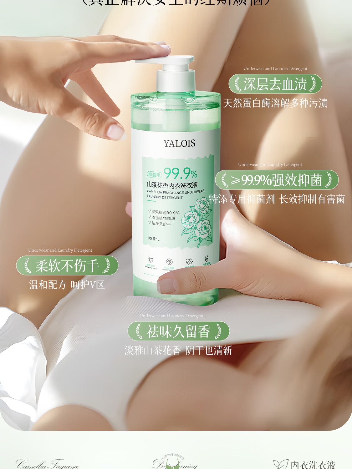 YALOIS山茶花内衣内裤专用洗衣液1L清洗液除菌除螨消毒去血渍男女士热卖