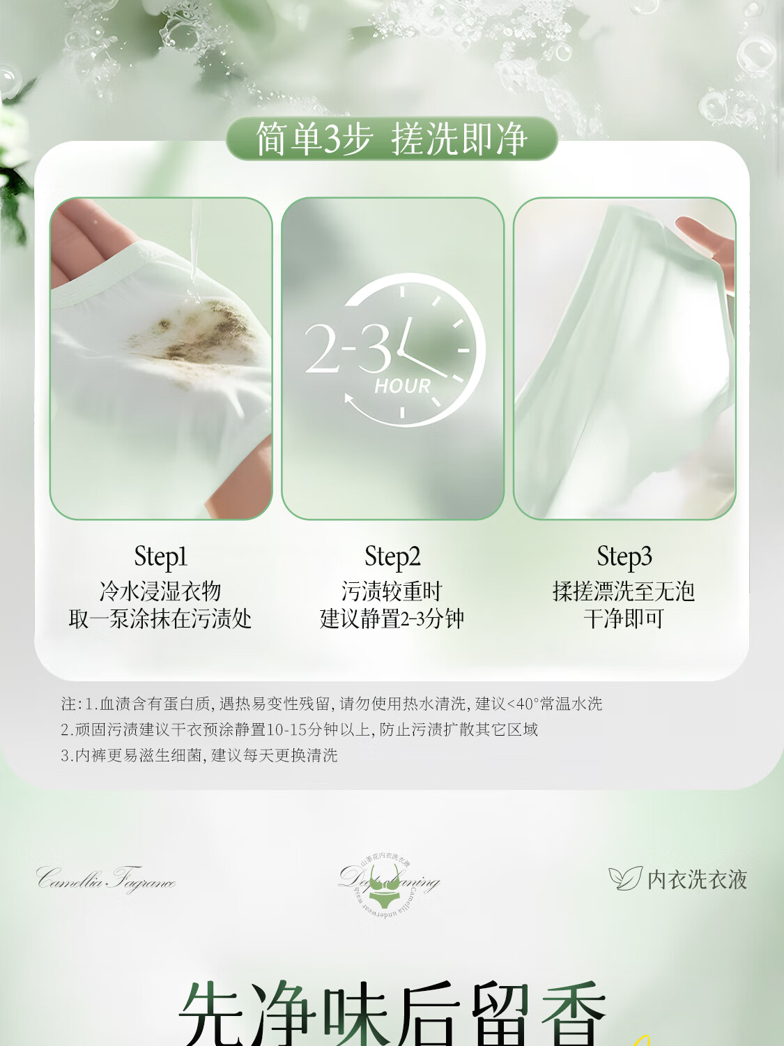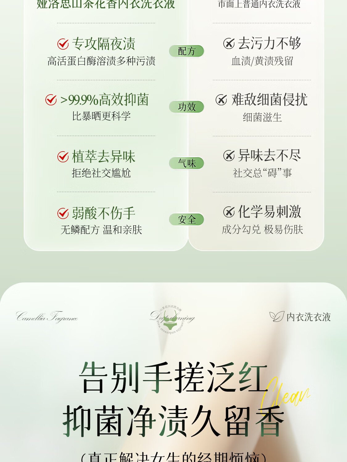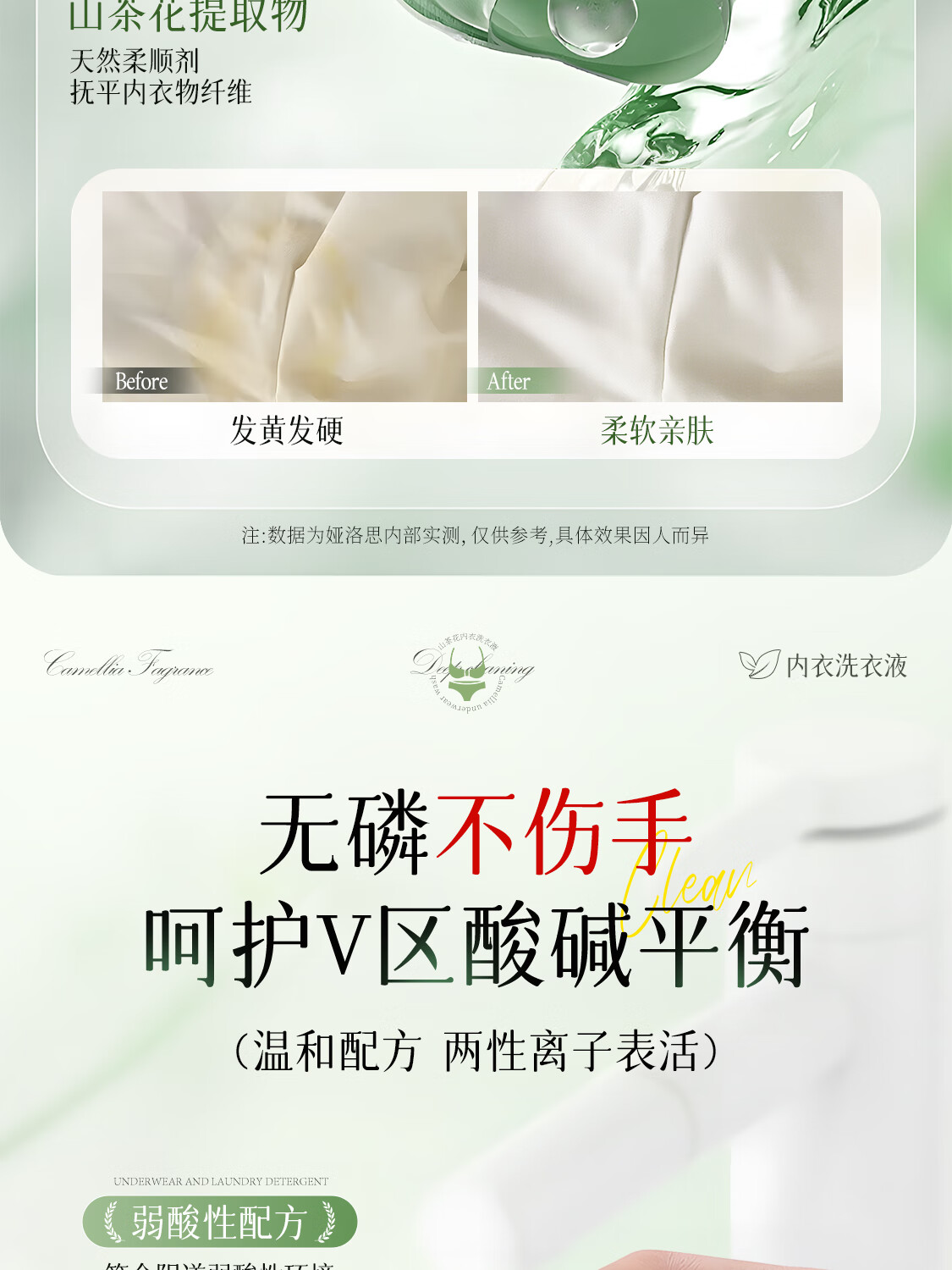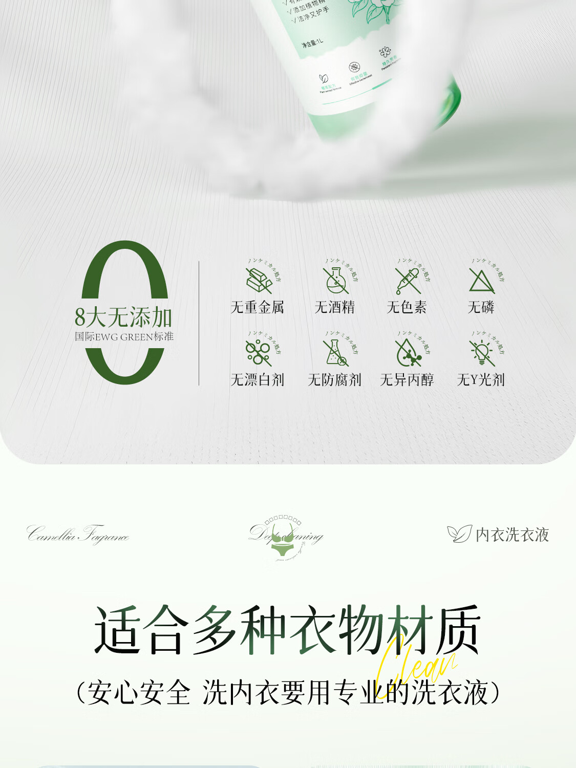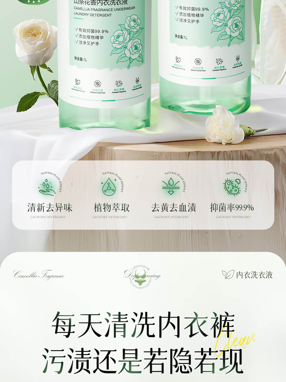 YALOIS山茶花内衣内裤专用洗衣液1L清洗液除菌除螨消毒去血渍男女士热卖