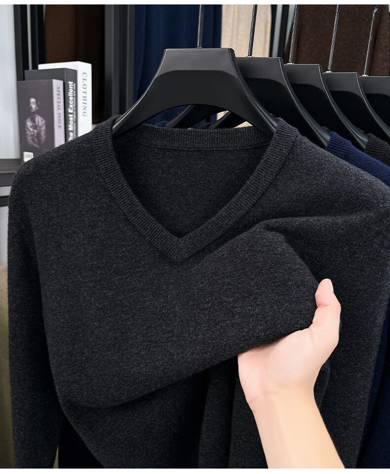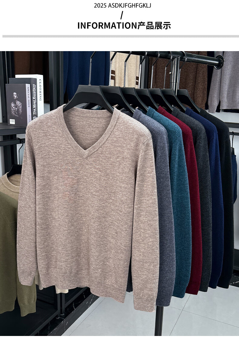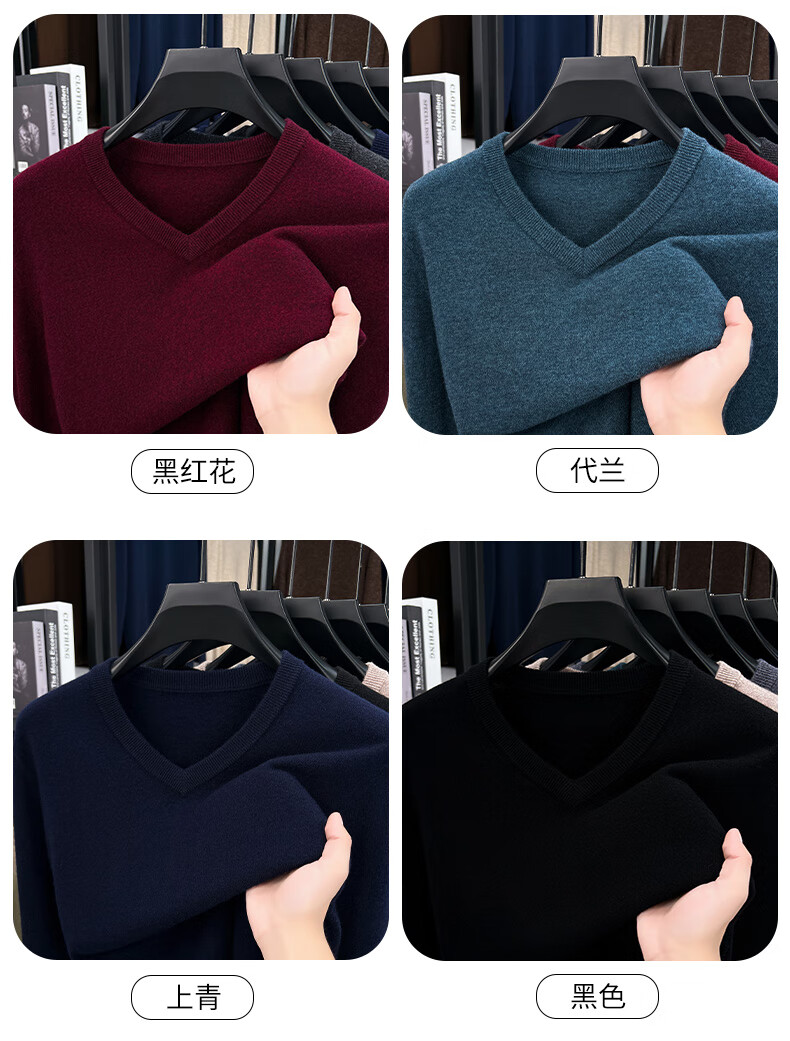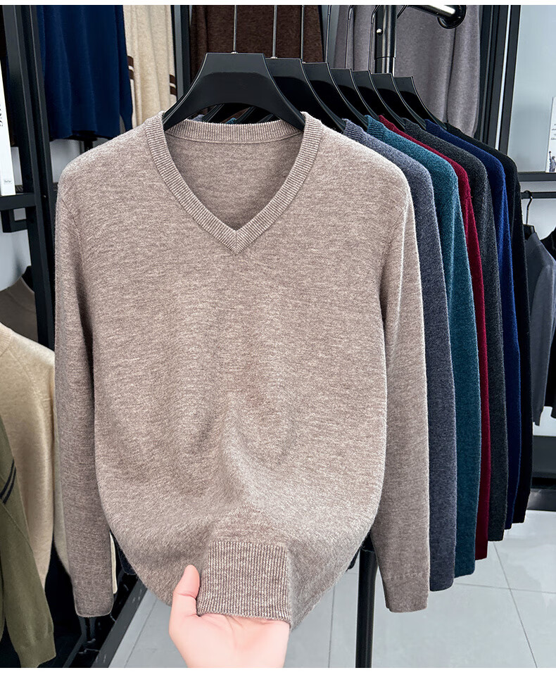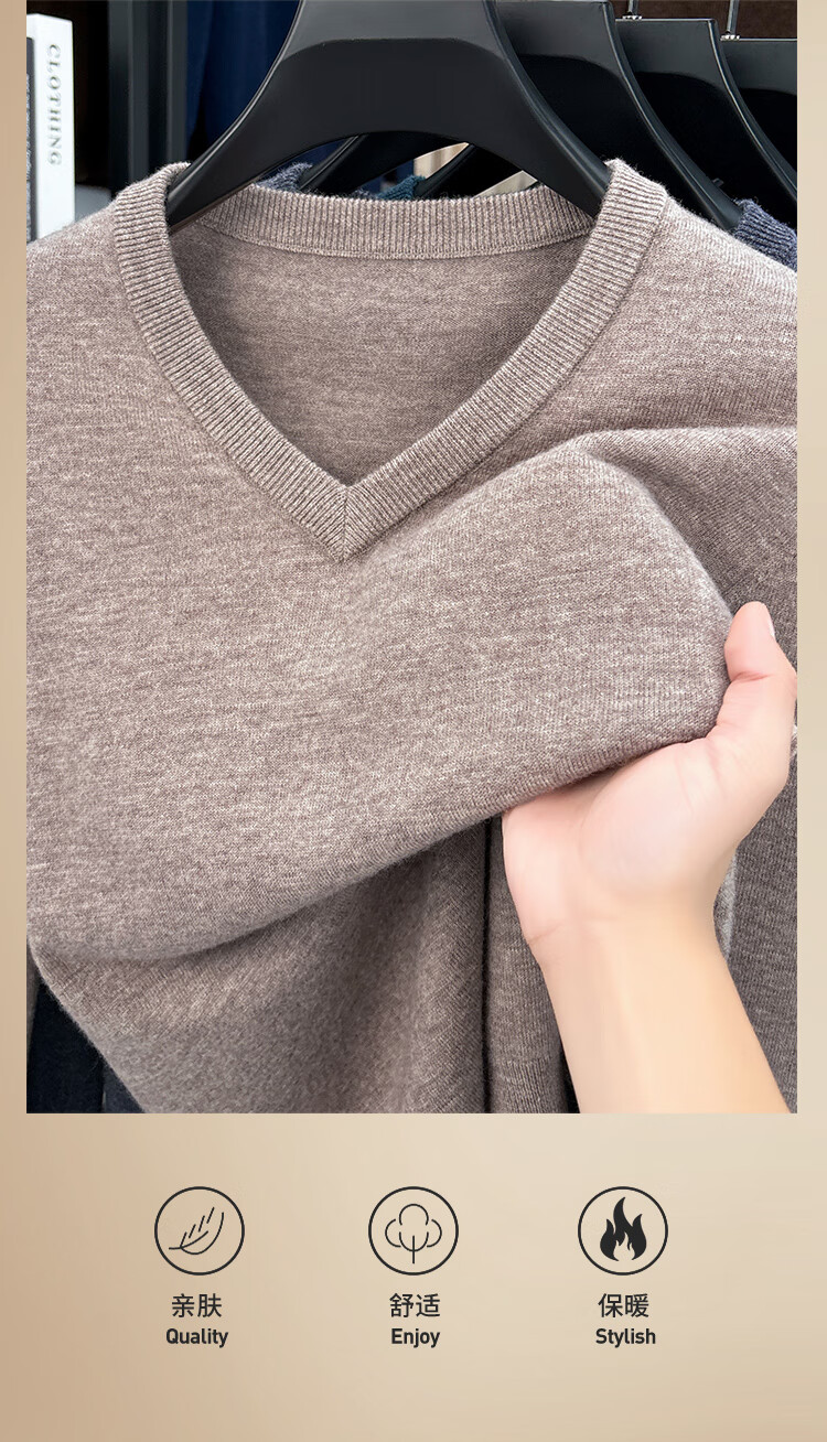 乔沃(JOW)【100%绵羊毛】V领男士保暖秋冬加厚商务休闲套头毛衣男