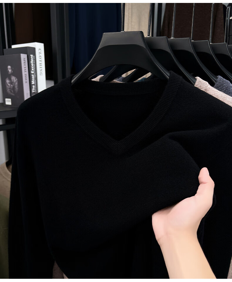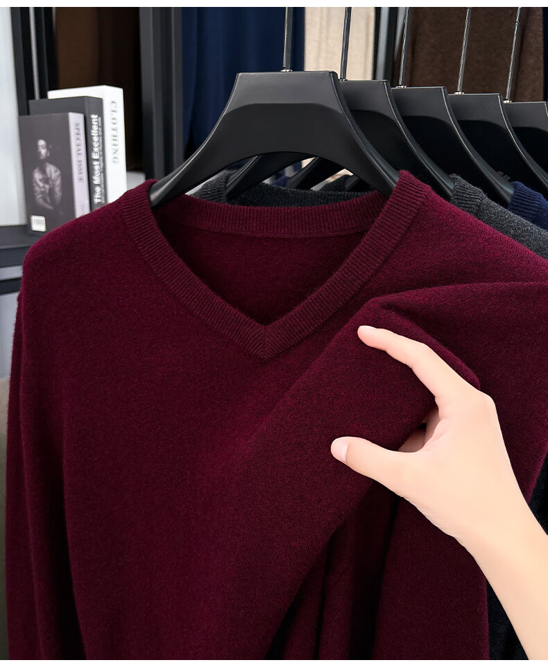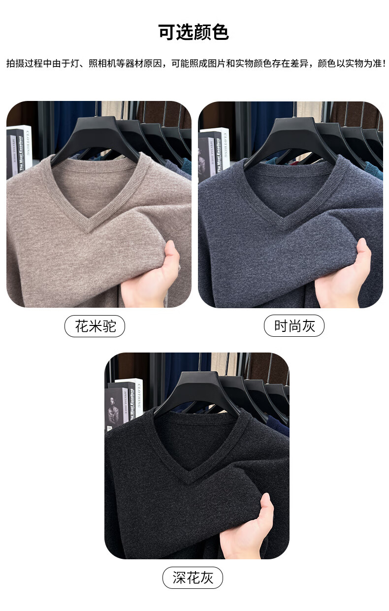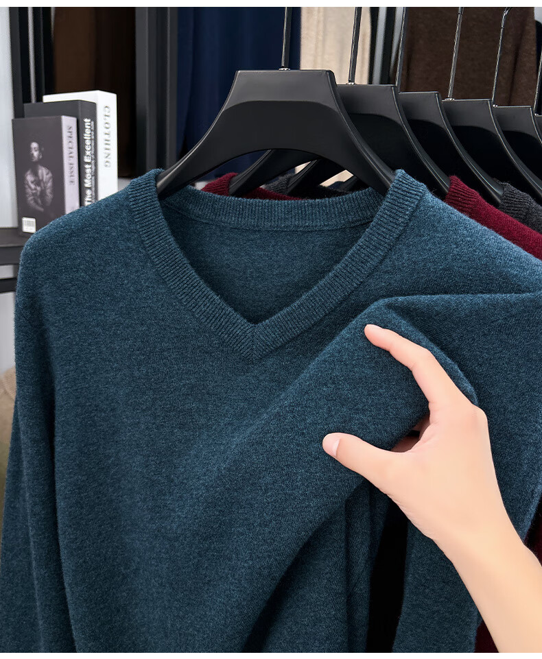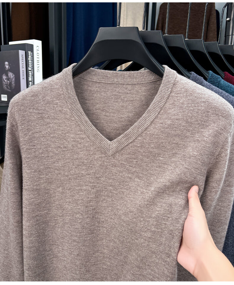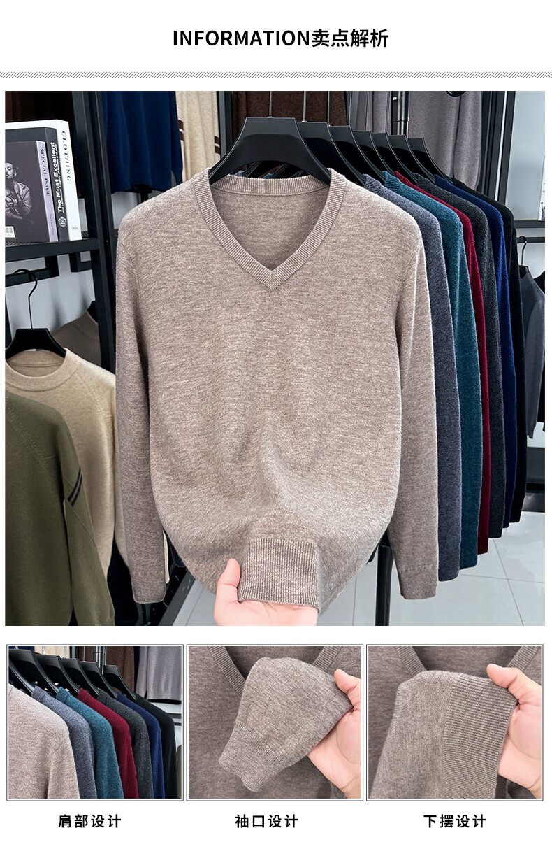 乔沃(JOW)【100%绵羊毛】V领男士保暖秋冬加厚商务休闲套头毛衣男