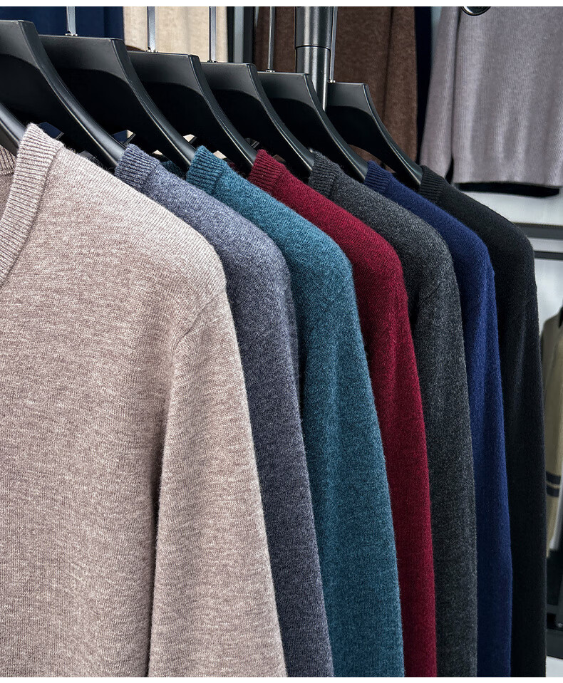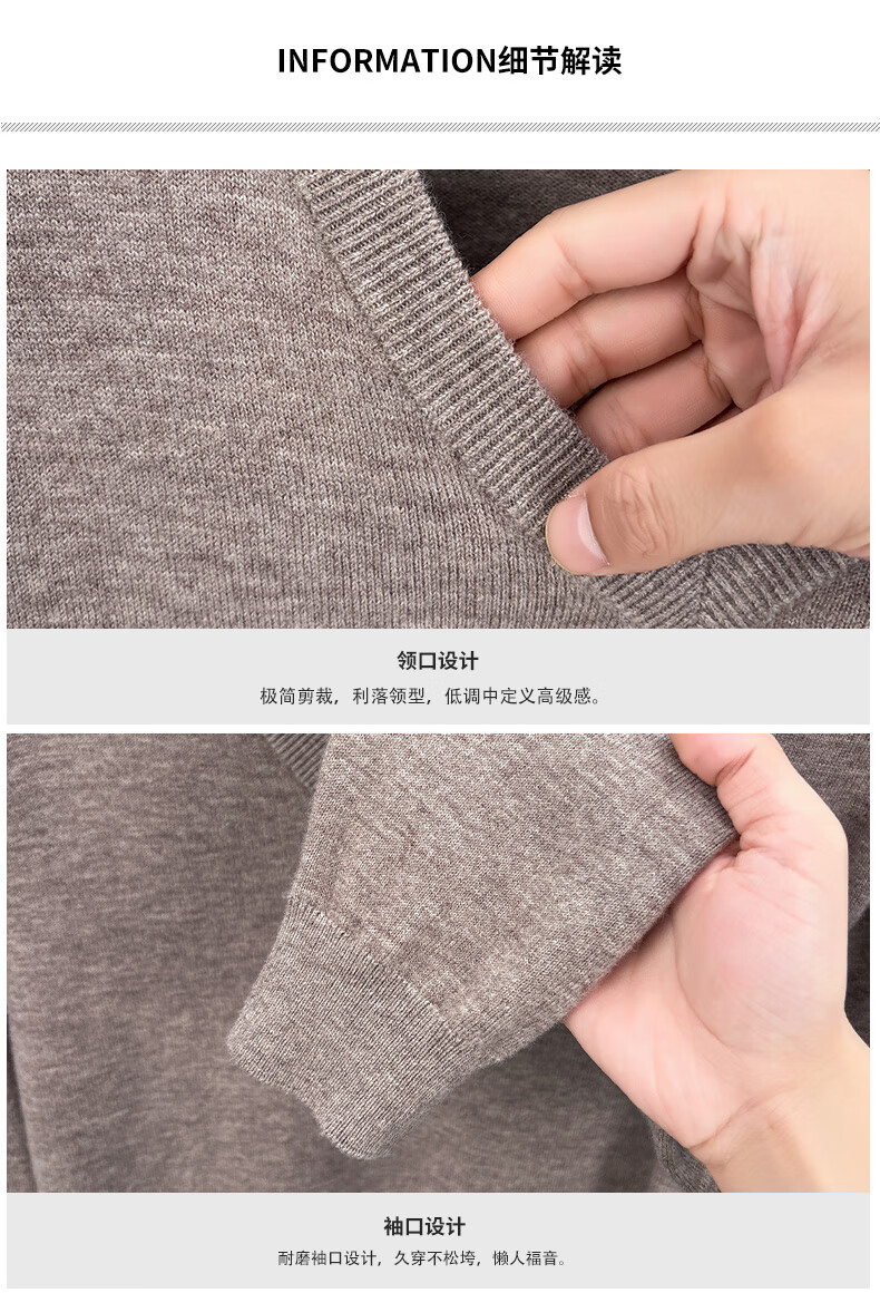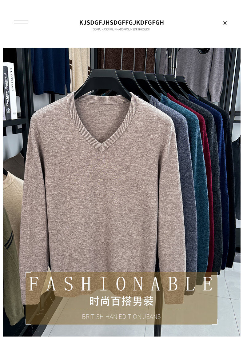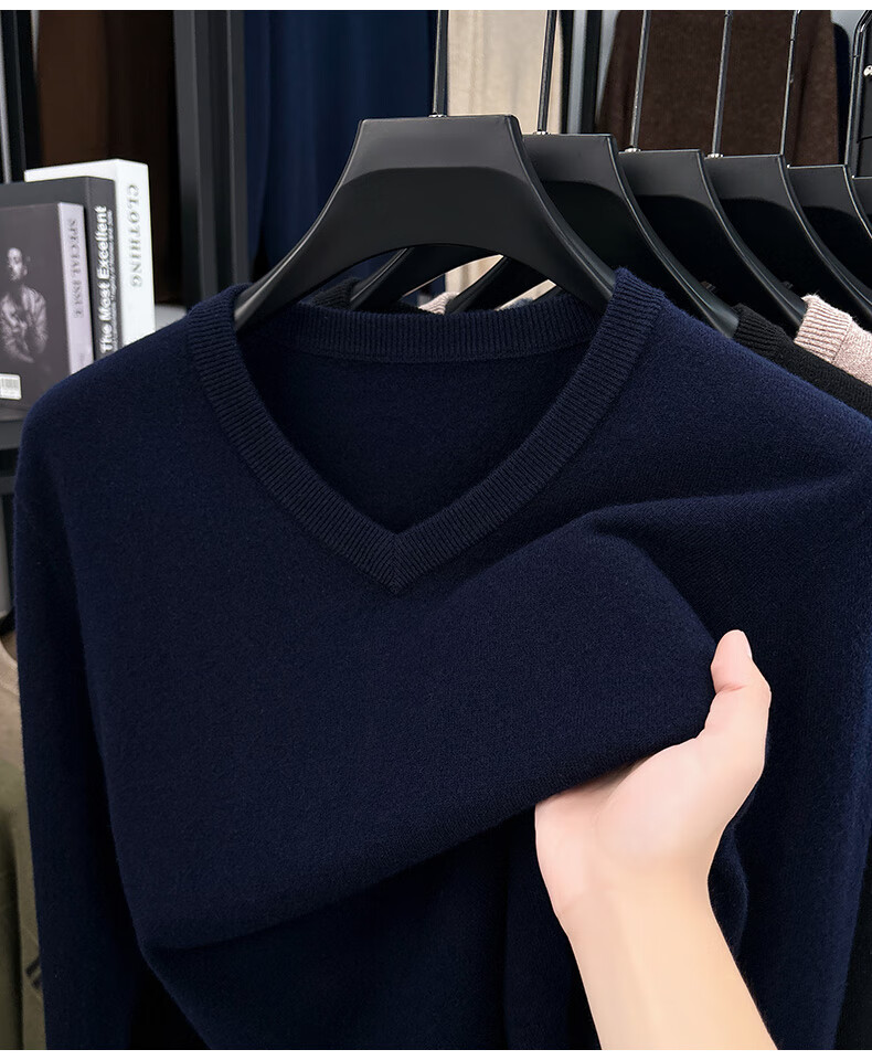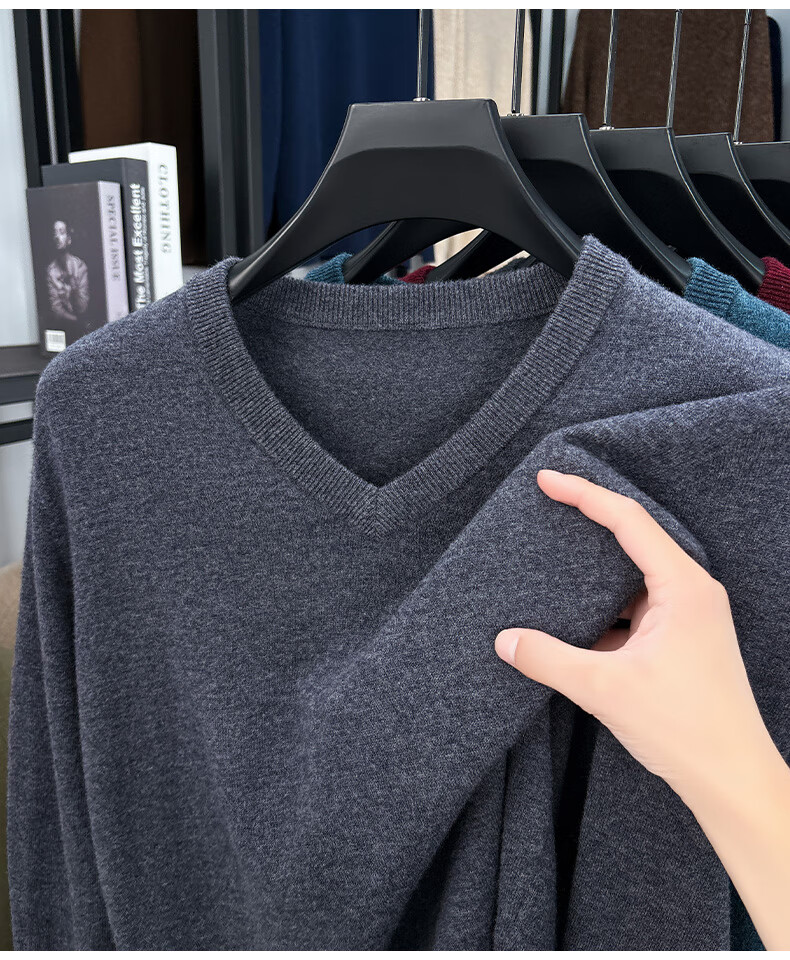 乔沃(JOW)【100%绵羊毛】V领男士保暖秋冬加厚商务休闲套头毛衣男