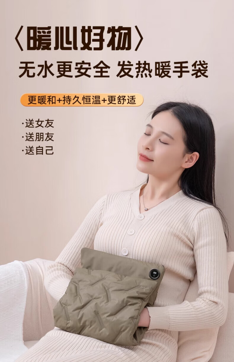 WCZ德国石墨烯暖手袋2025新款暖手宝暖宝宝充电无水热水袋暖水袋女生 【军绿色】充电版 升级款 20000毫安 温度数显 双面 3秒速热