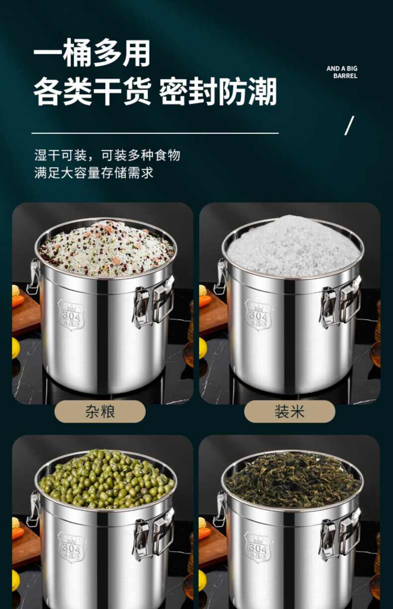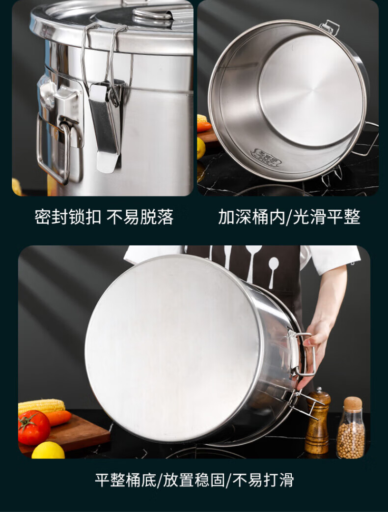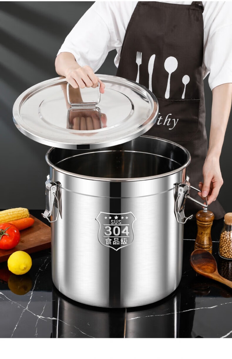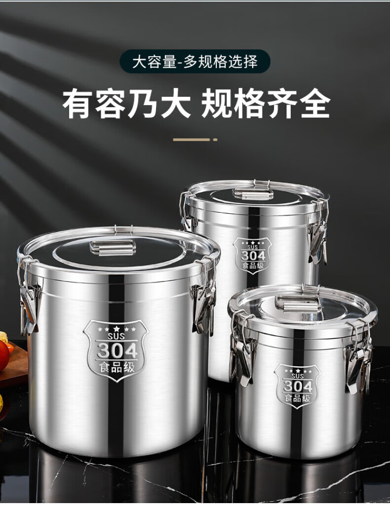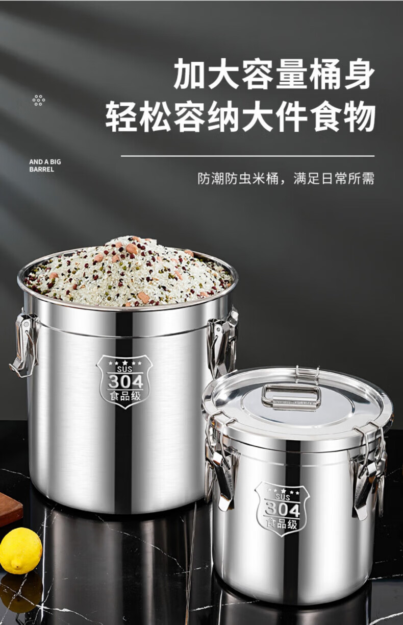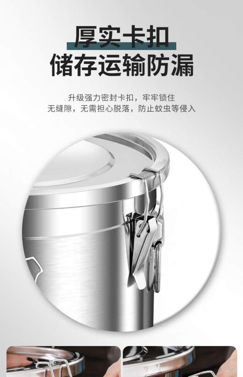 WCZ德国特厚密封桶304食品级不锈钢面粉桶家用50斤装米桶防潮储米罐 17升密封桶304旗舰款 盖子升级304材质
