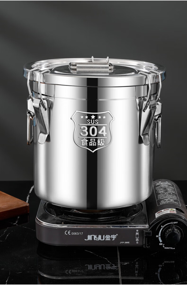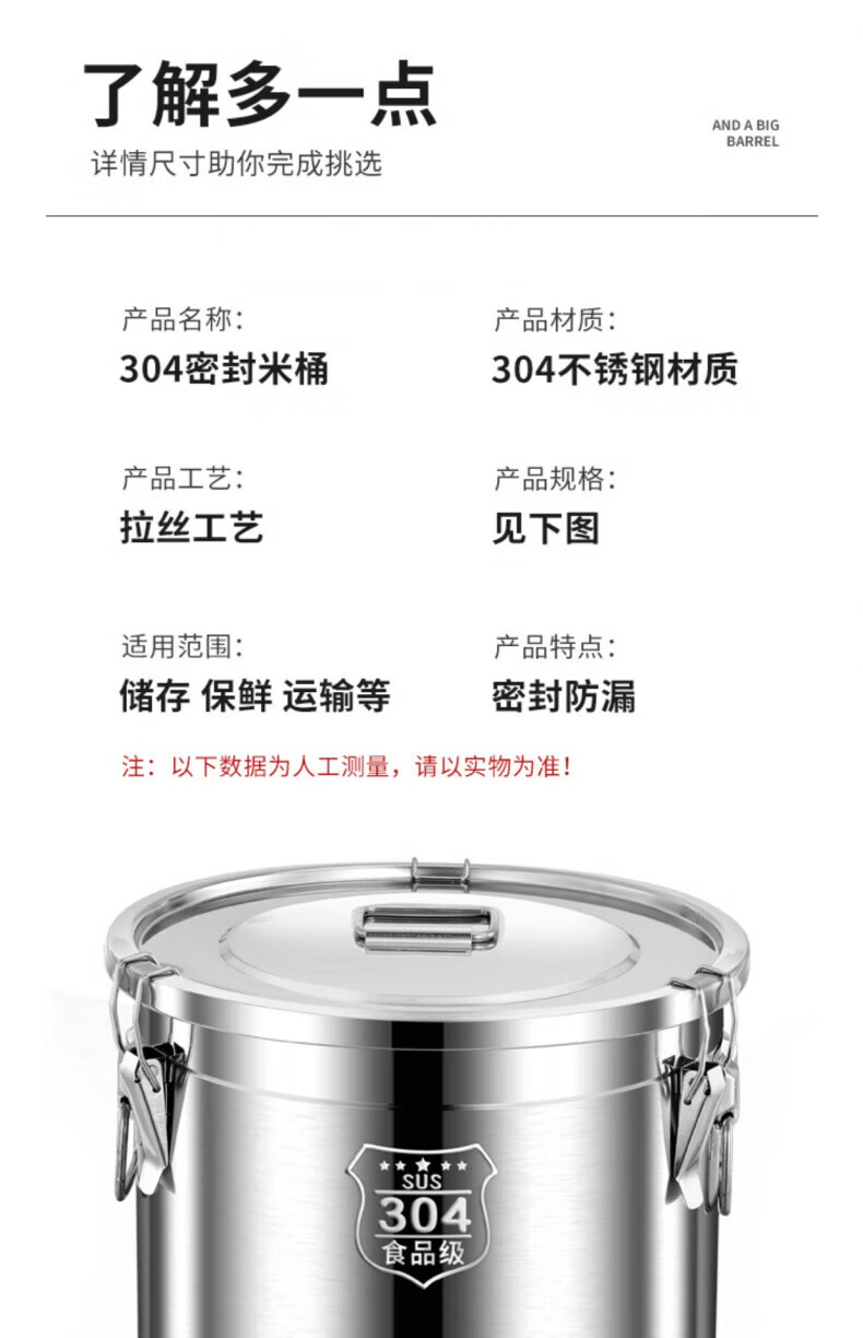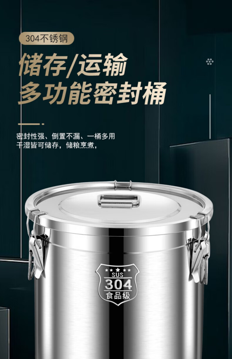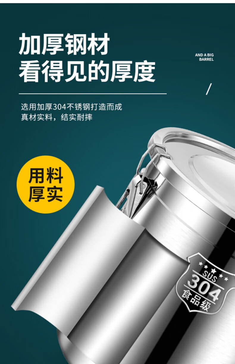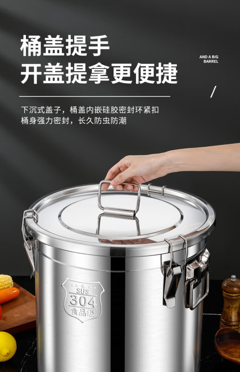 WCZ德国特厚密封桶304食品级不锈钢面粉桶家用50斤装米桶防潮储米罐 17升密封桶304旗舰款 盖子升级304材质
