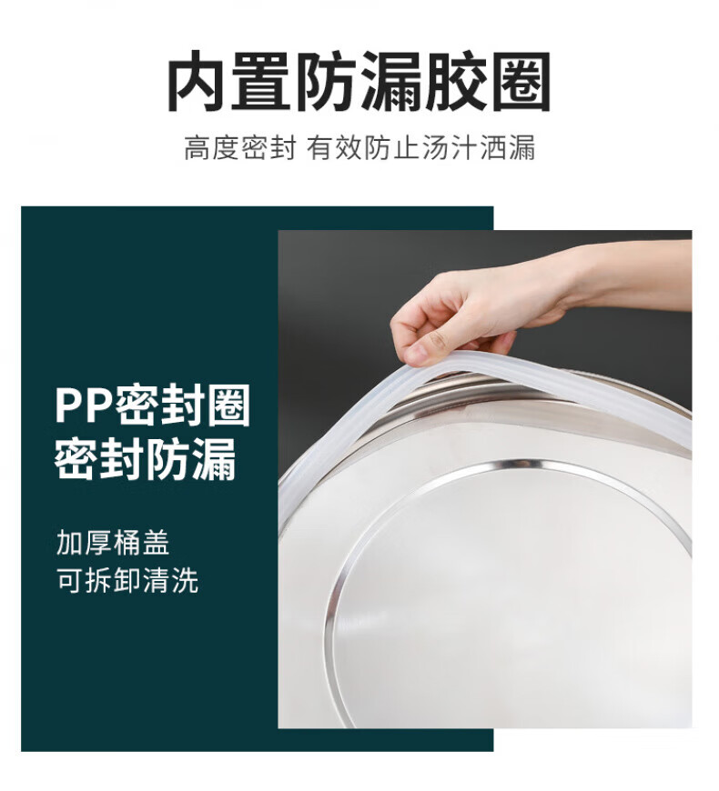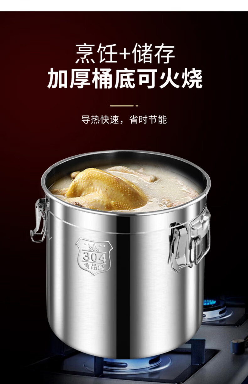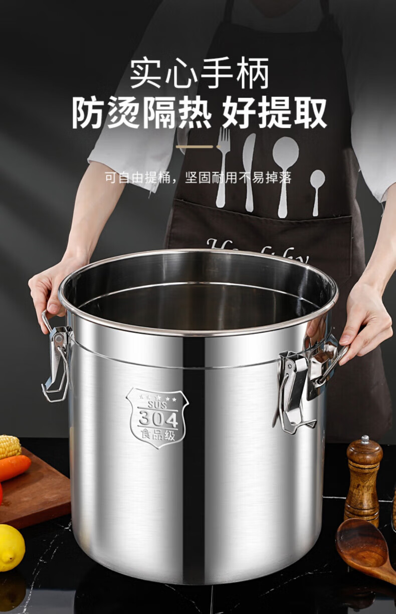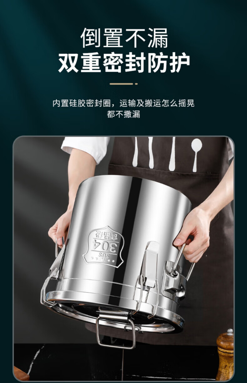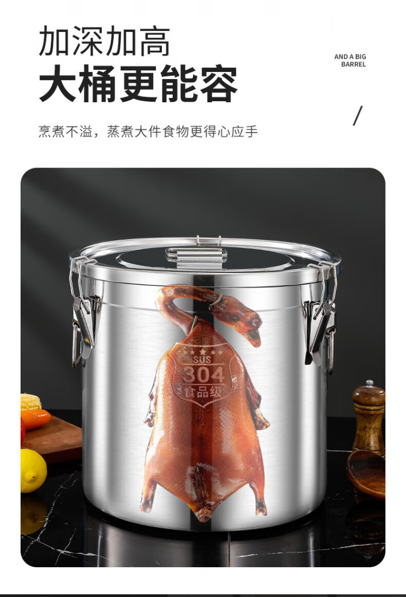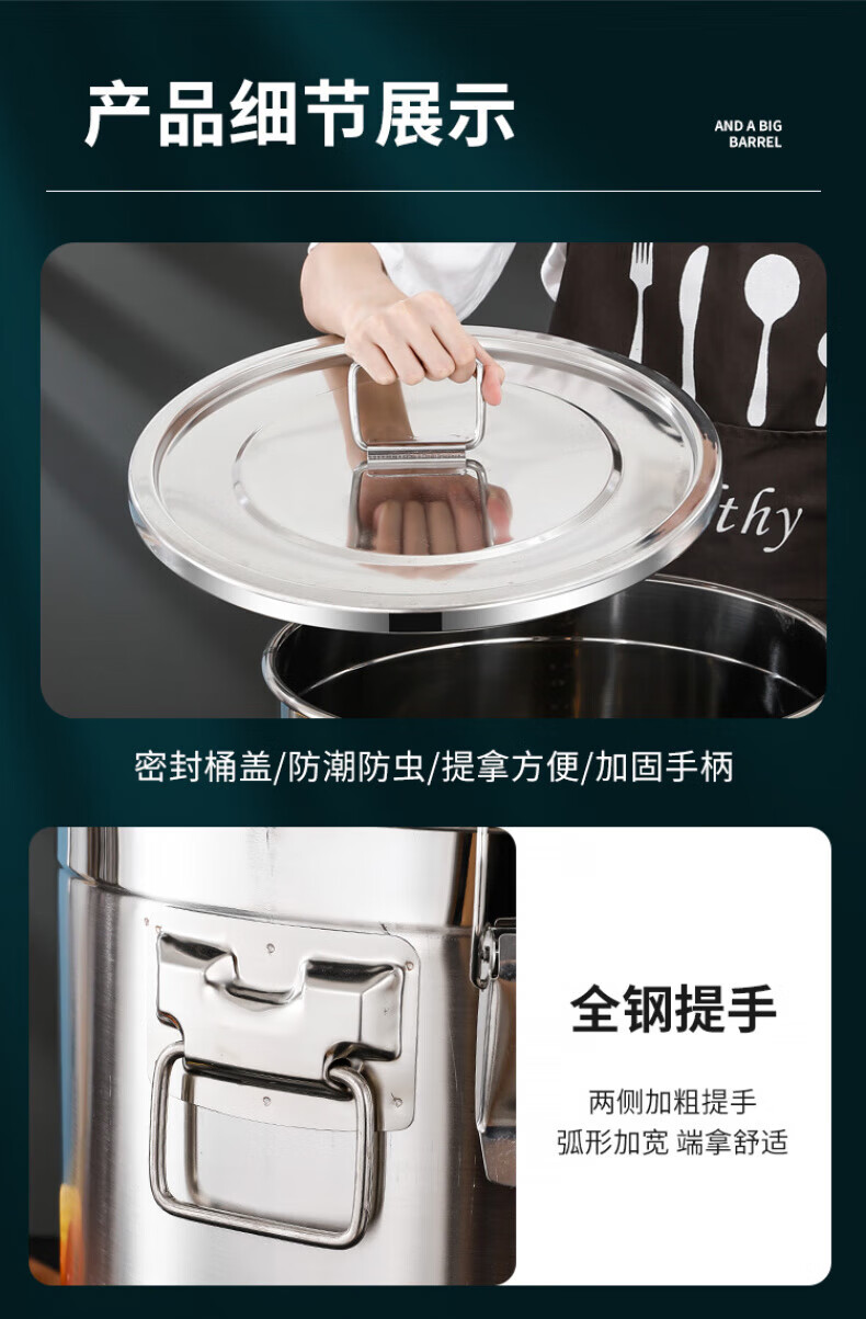 WCZ德国特厚密封桶304食品级不锈钢面粉桶家用50斤装米桶防潮储米罐 17升密封桶304旗舰款 盖子升级304材质