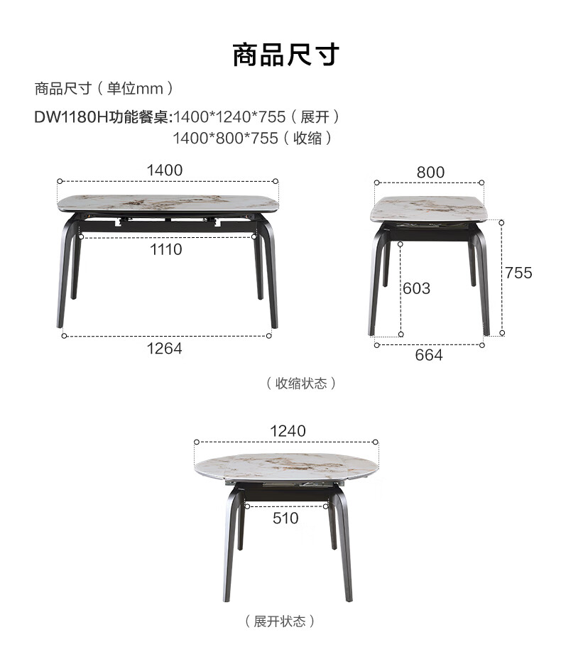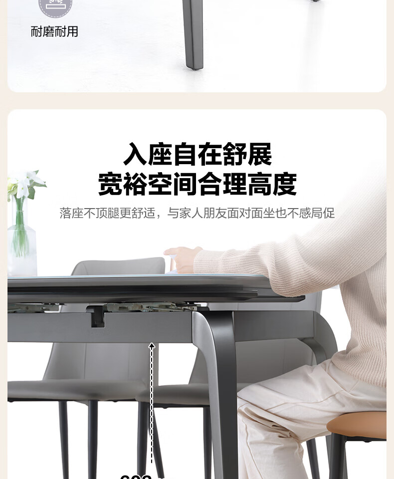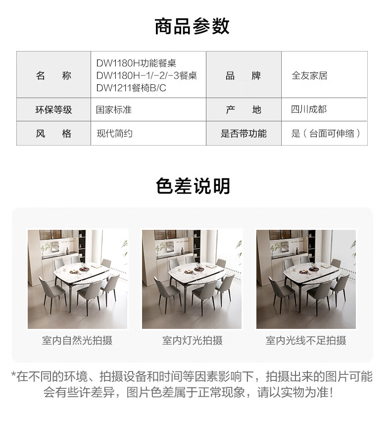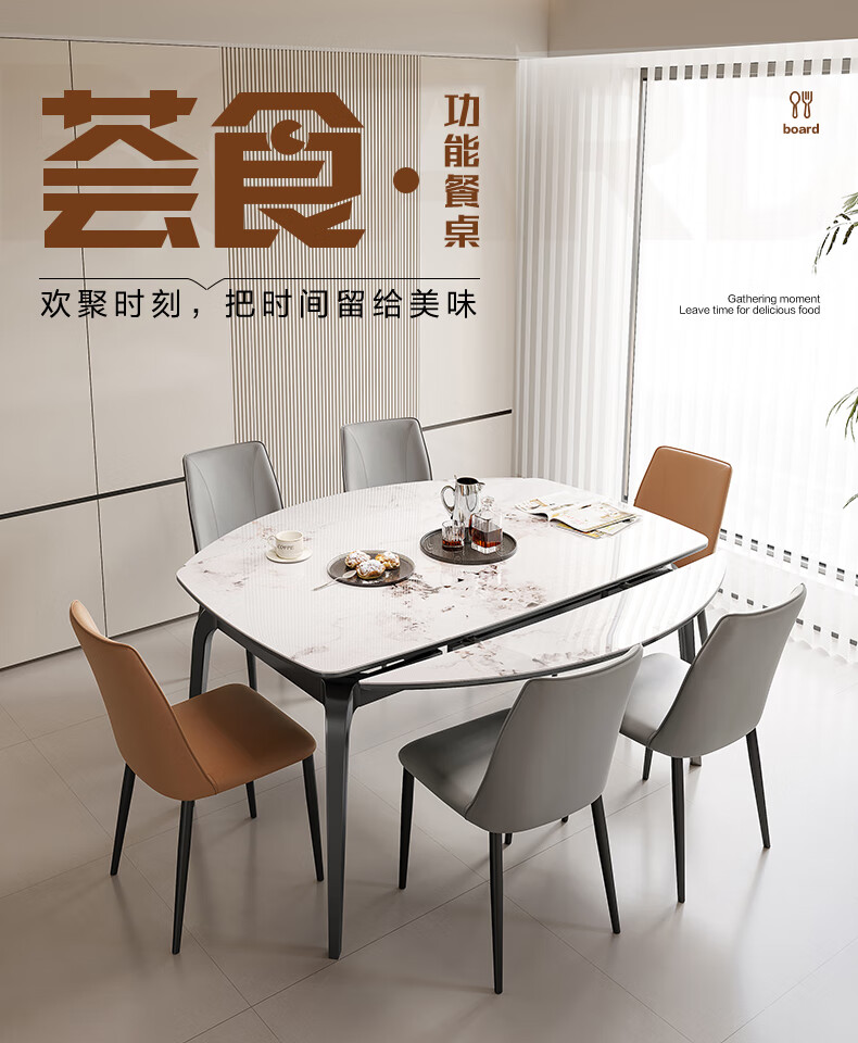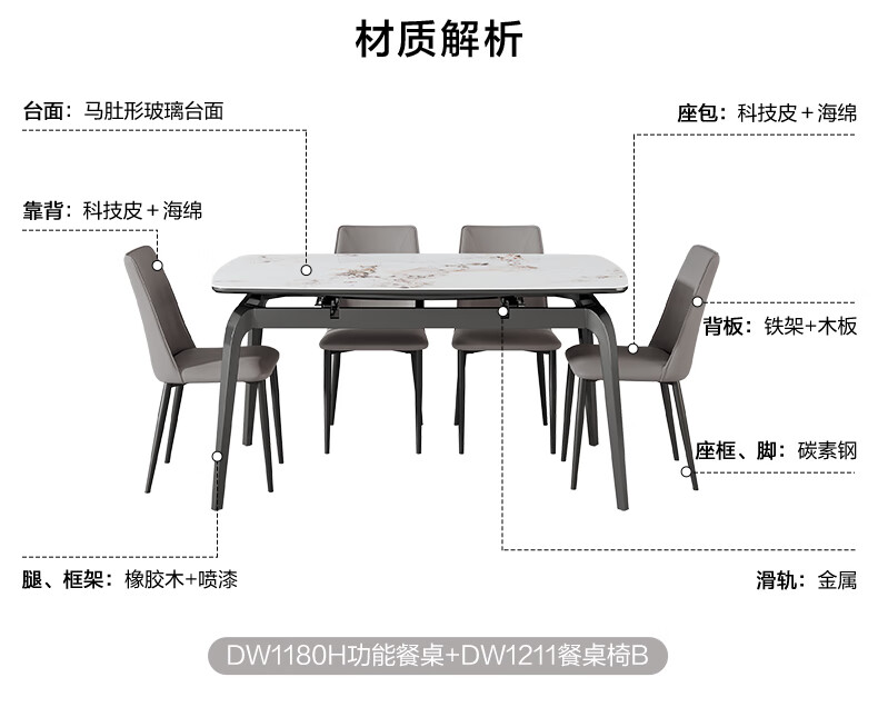 全友家居客厅家用吃饭桌轻奢多功能可伸缩折叠钢化玻璃餐桌休闲学习桌 玻璃|功能餐桌+餐椅(灰色*4)