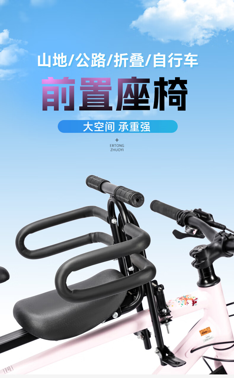 Jeep吉普自行车前置座椅山地车公路车大空间半围栏安全舒适座椅 黑色【公路山地车】 均码