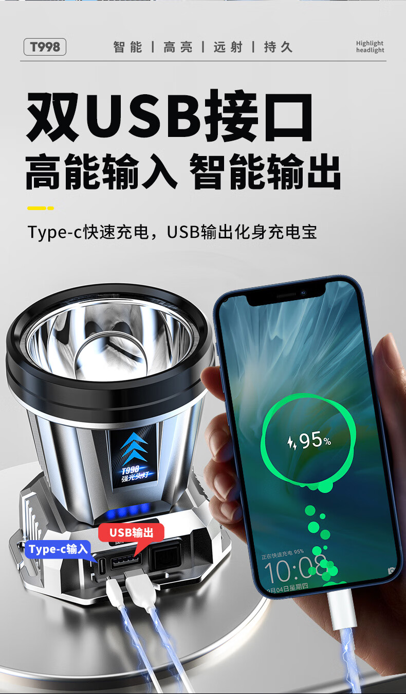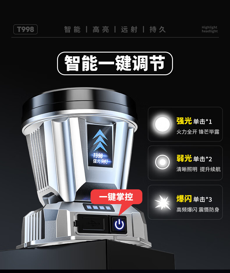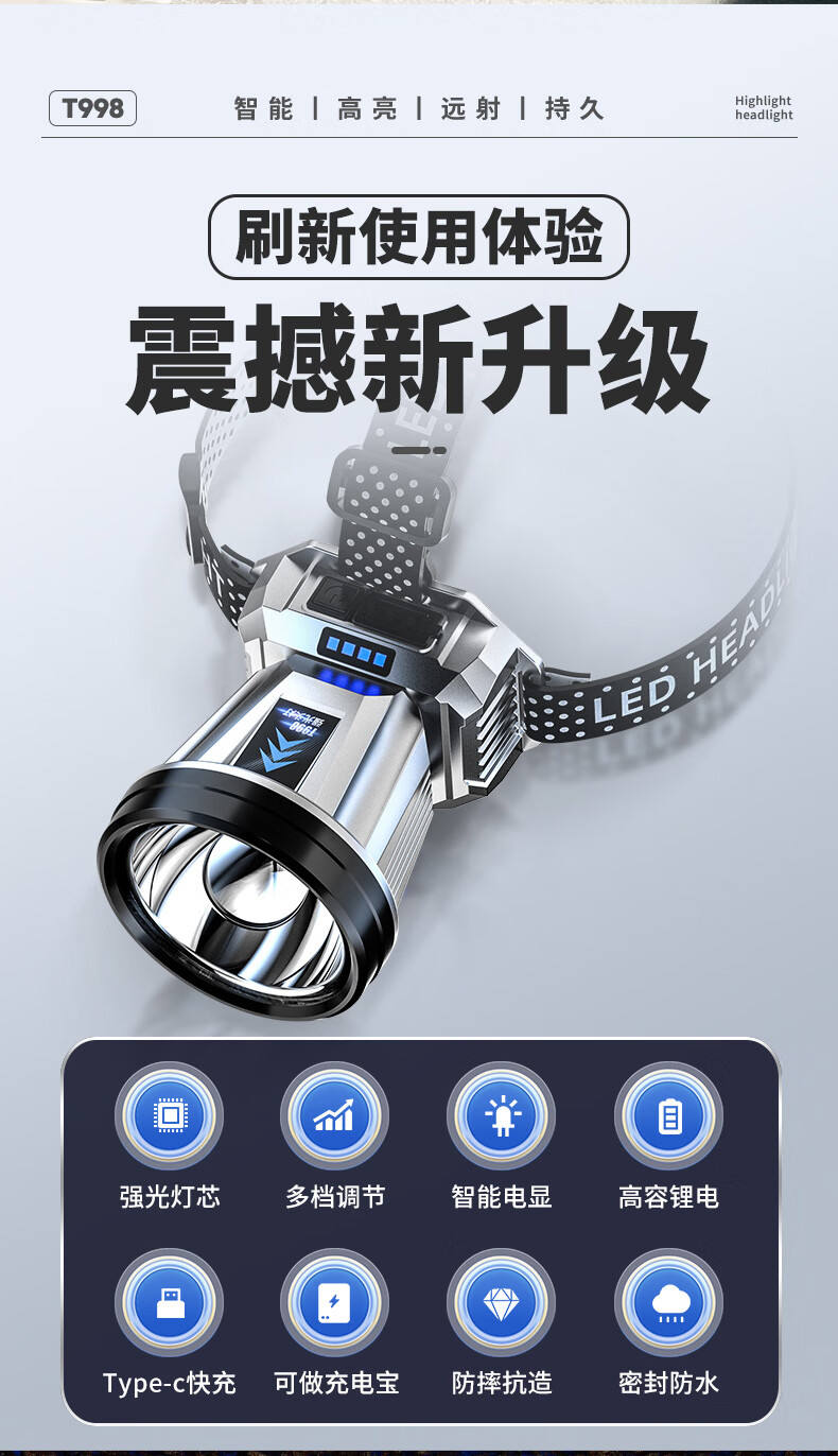 神鱼(SHENYU)头戴式强光头灯防水大功率充电超亮户外夜钓鱼矿灯专用小手电筒 【旗舰版】强光超亮