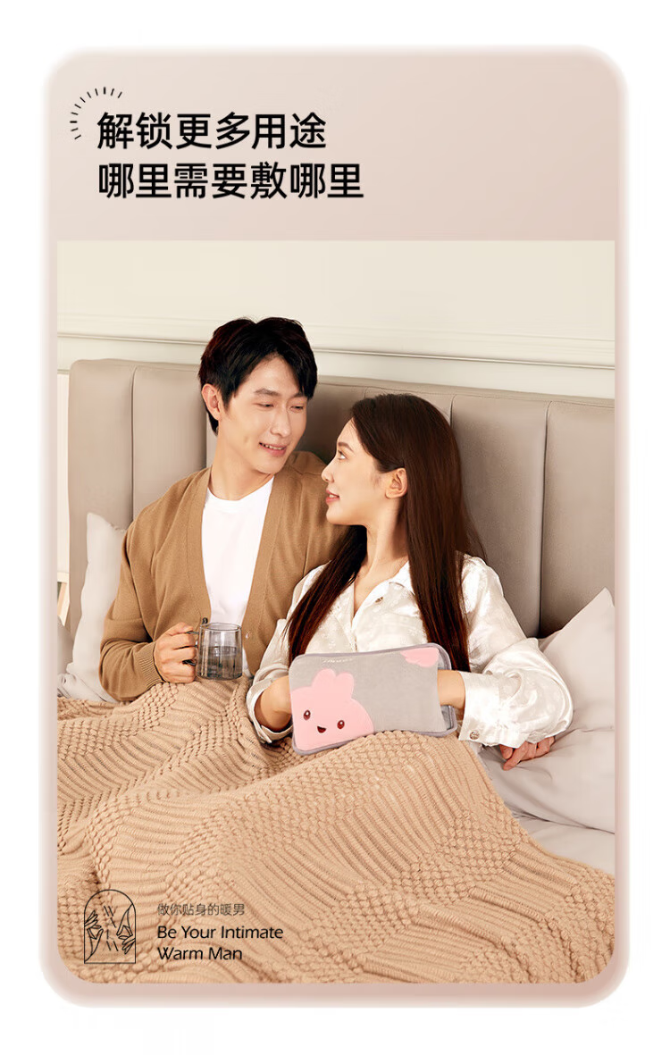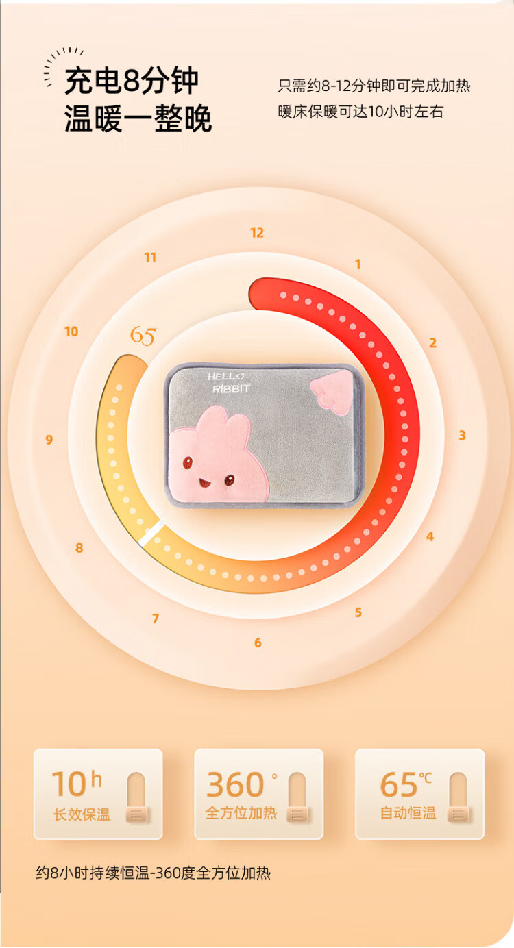 AILUKI日本暖脚宝床上暖足睡觉用充电加热暖脚神器女生冬天保暖水袋 呆萌兔【持续保暖12h】丝绒 水电分离#可拆洗