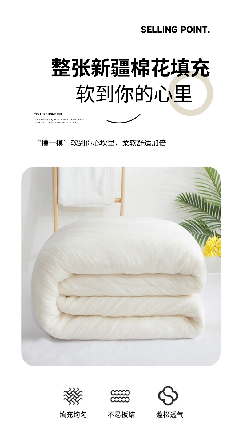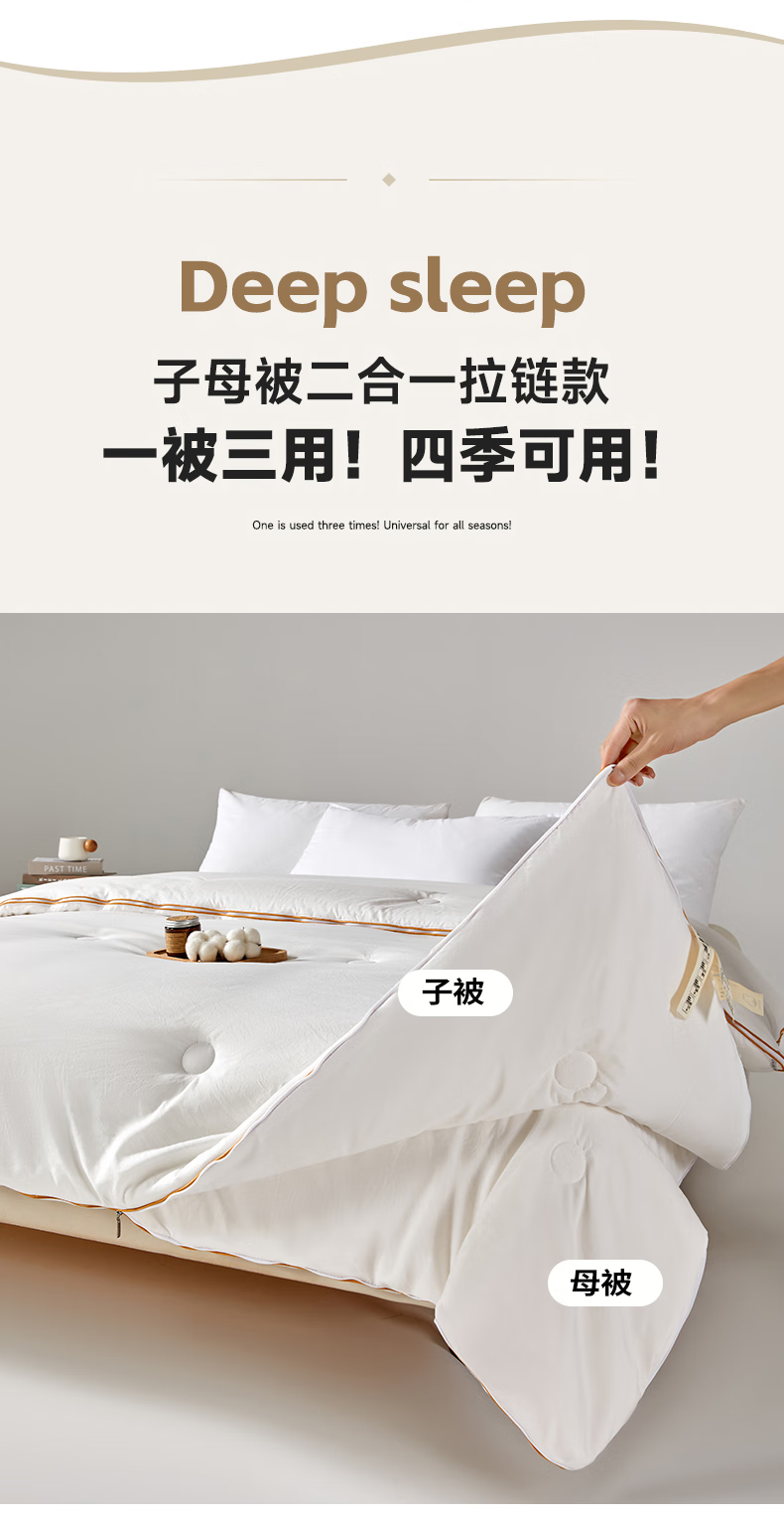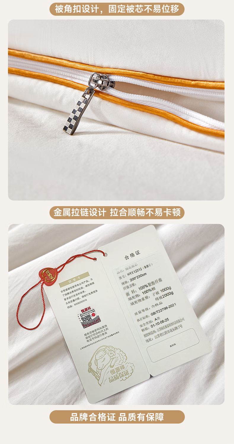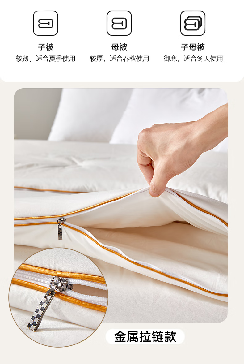 恒源祥新款棉花被子母被二合一拉链款宿舍秋冬被芯棉被子冬季加厚被褥 新款棉花子母被-高雅白 150*200cm 总重7.6斤 子被2.8斤 母被4.8斤