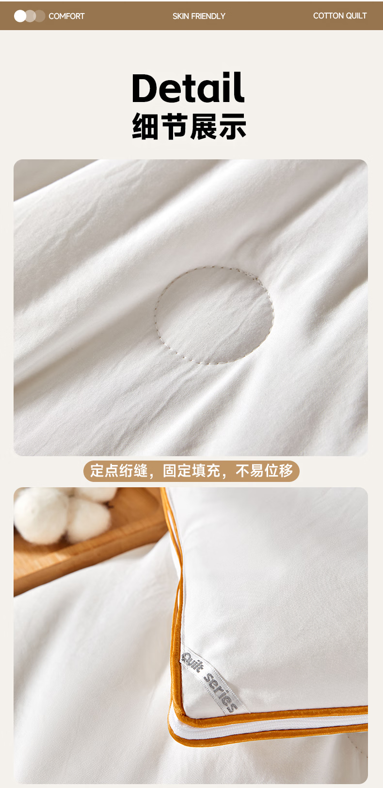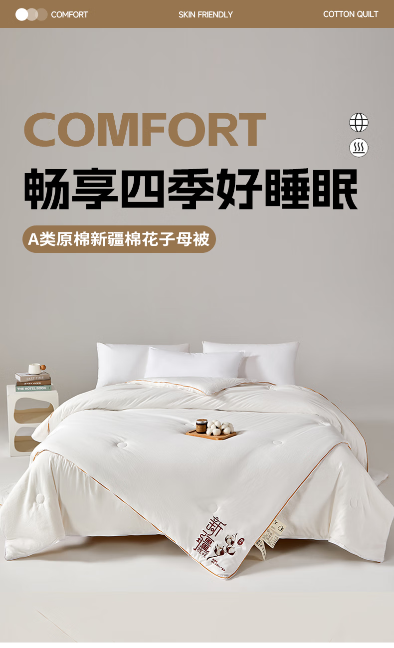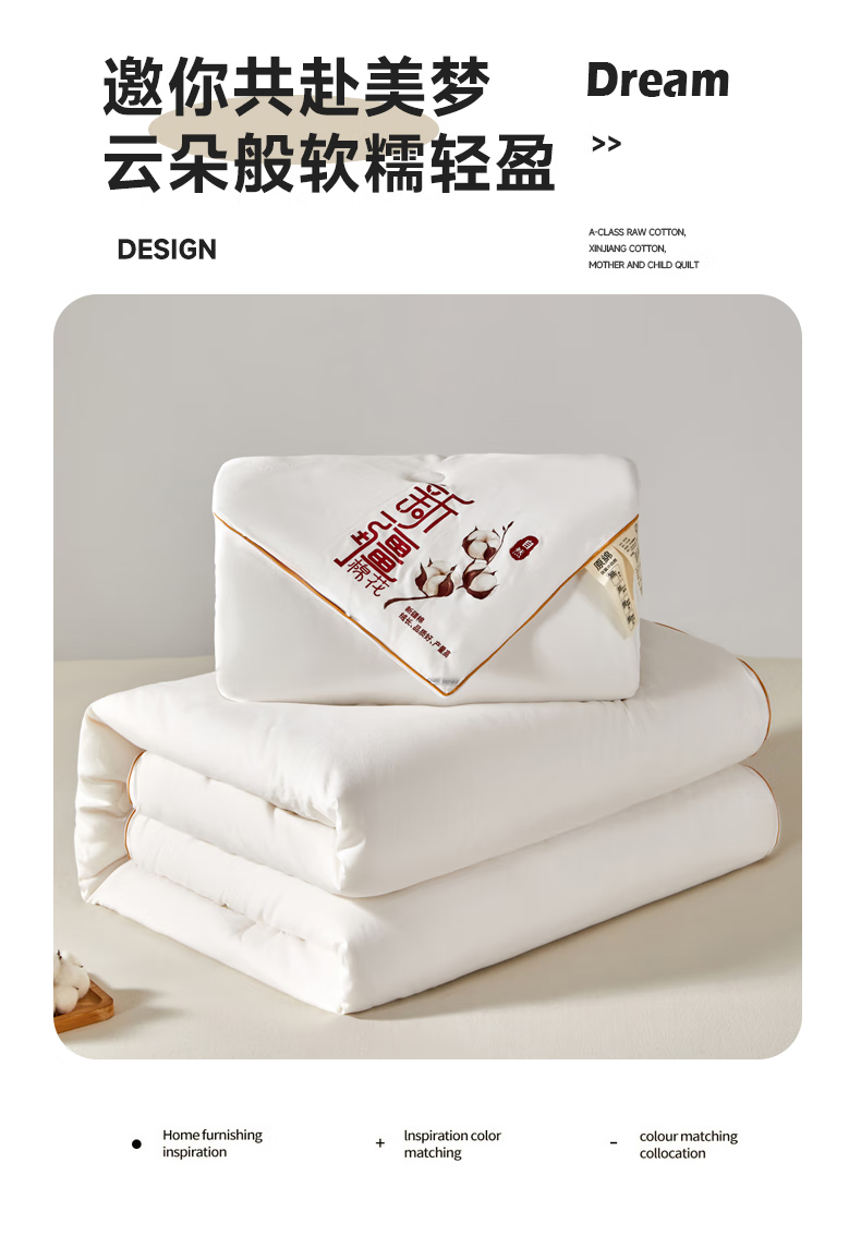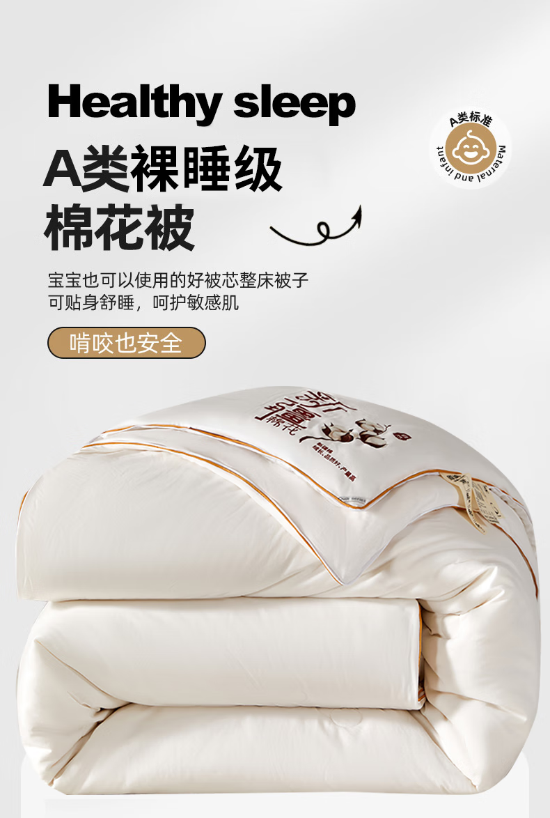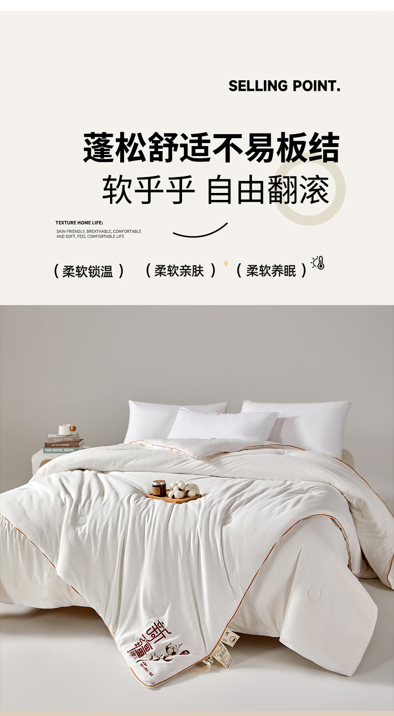 恒源祥新款棉花被子母被二合一拉链款宿舍秋冬被芯棉被子冬季加厚被褥 新款棉花子母被-高雅白 150*200cm 总重7.6斤 子被2.8斤 母被4.8斤