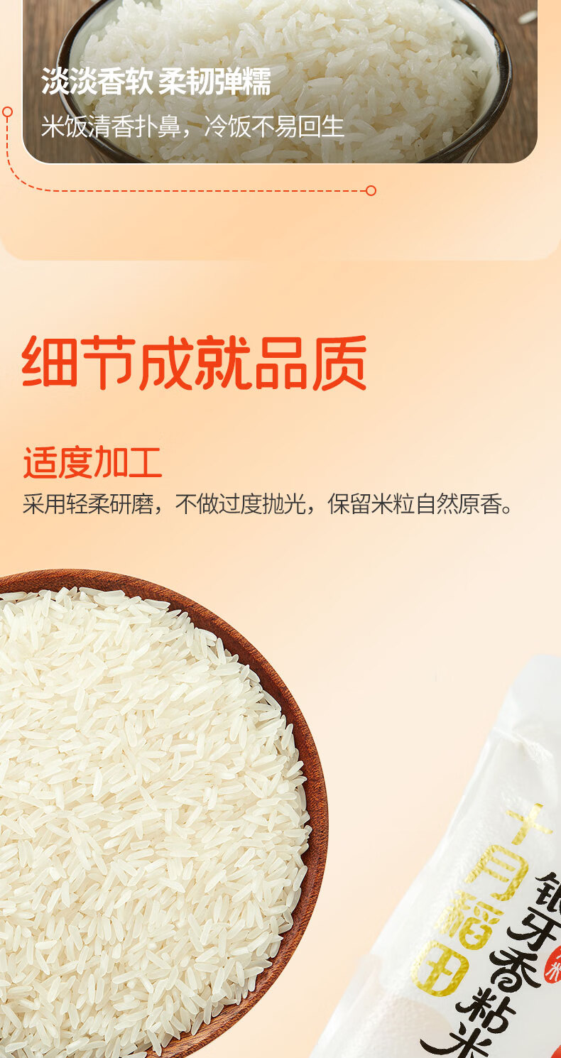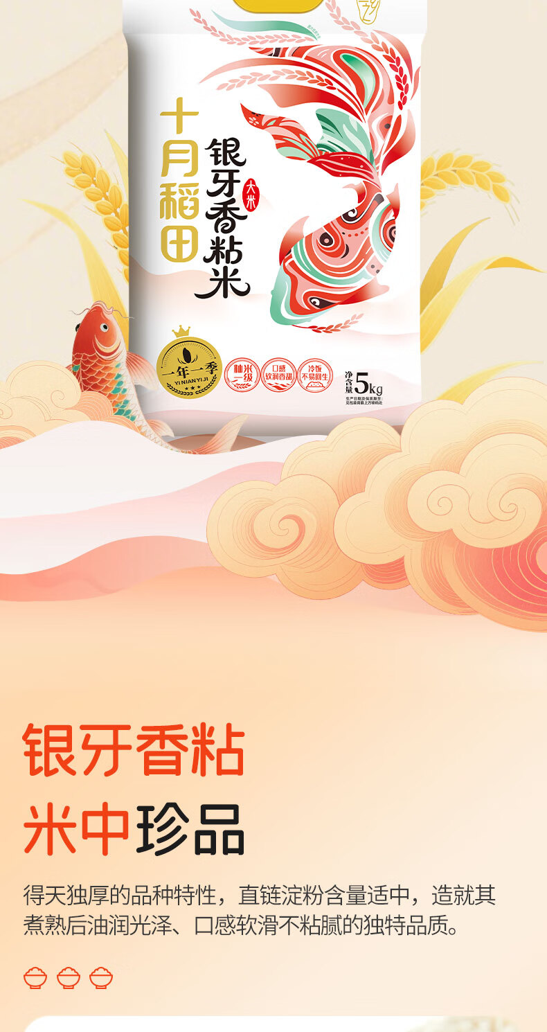 十月稻田银牙香粘米5kg 油粘米 籼米 长粒猫牙米当季新米