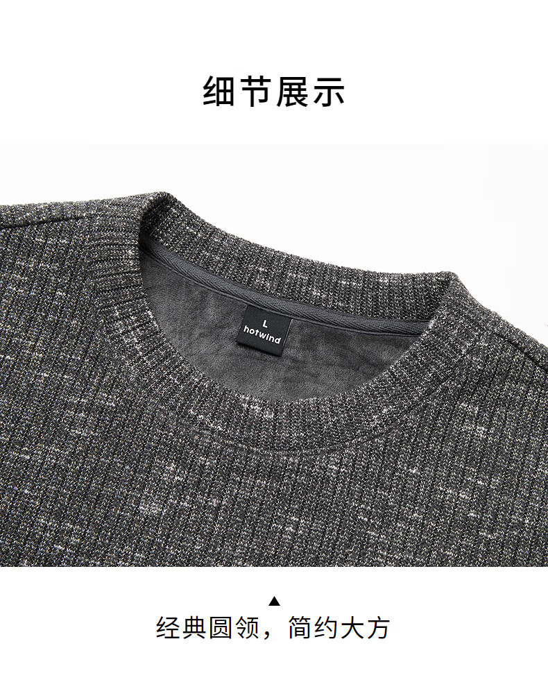 热风(Hotwind)【商场同款】男士加绒卫衣2025年冬季新款圆领时尚保暖内搭上衣 52深灰 加绒 S