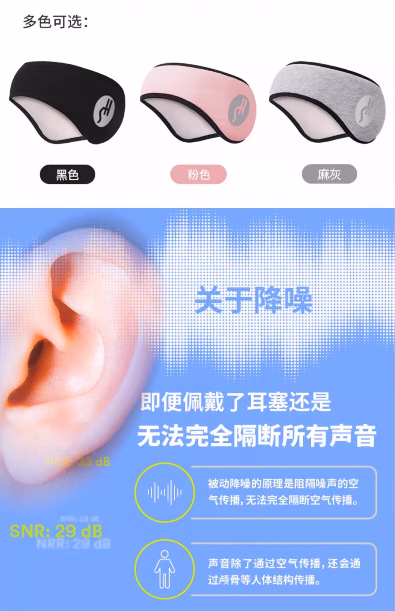 DEATKN德国高端隔音耳罩睡觉专用头戴式睡眠耳塞强降噪神器晚上防吵 降噪耳塞随机颜色赠送