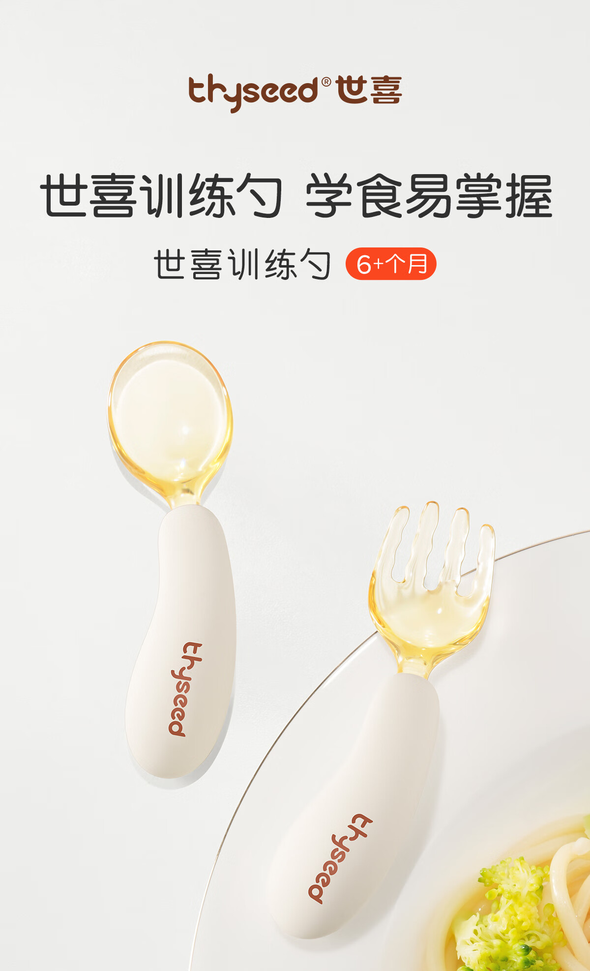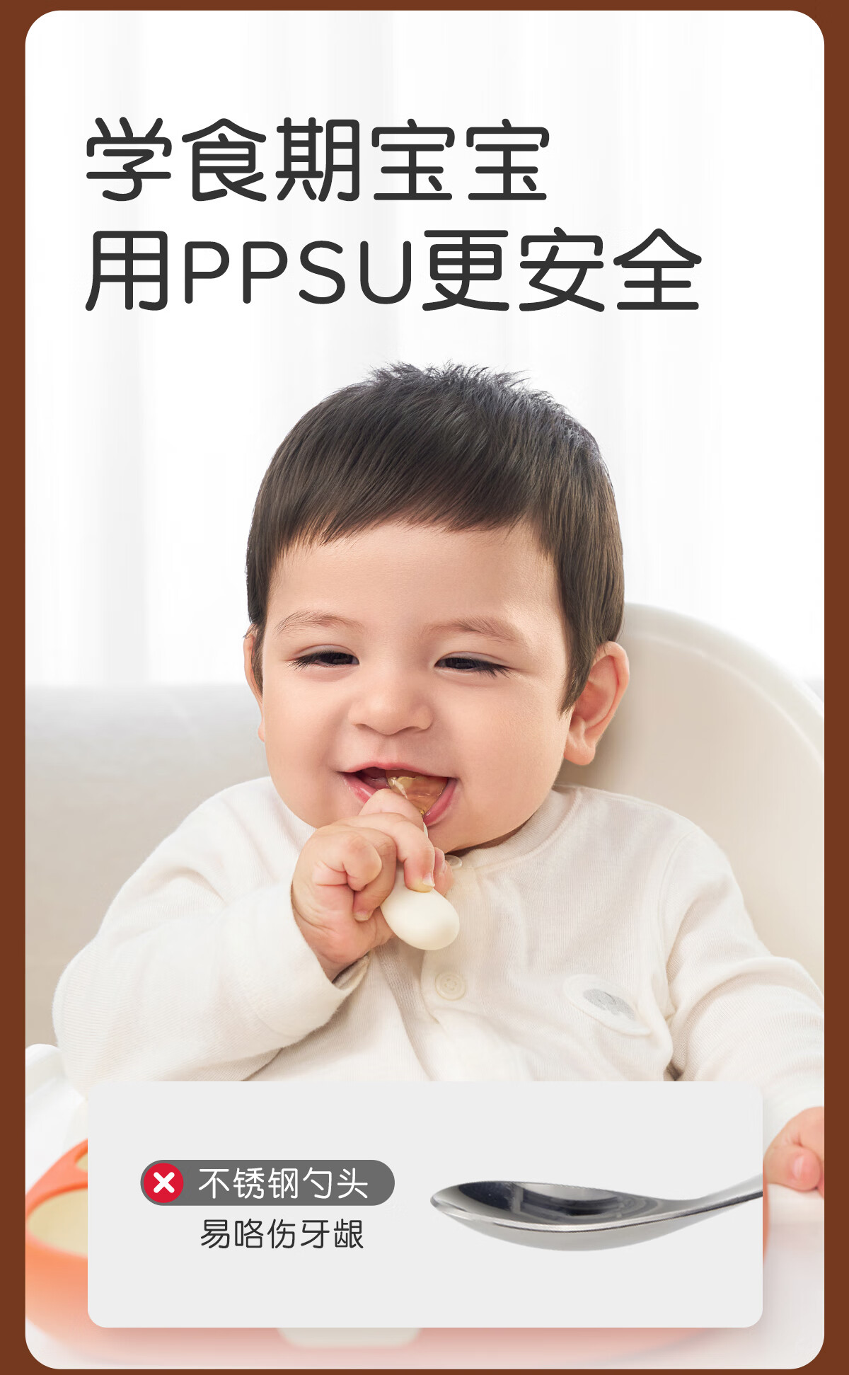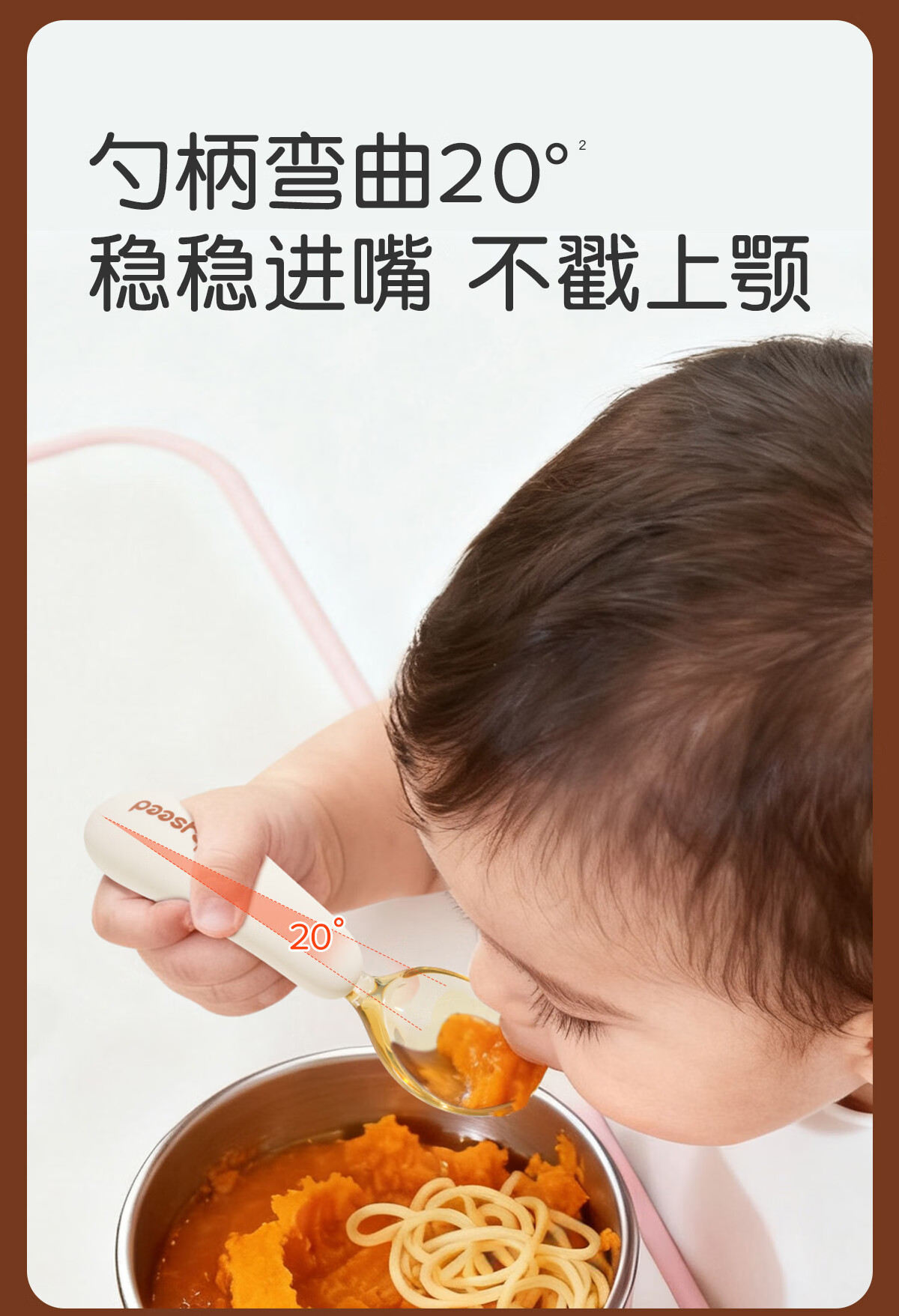 世喜辅食勺婴儿勺子宝宝学吃饭儿童自主进食训练勺PPSU硅胶短柄弯弯勺