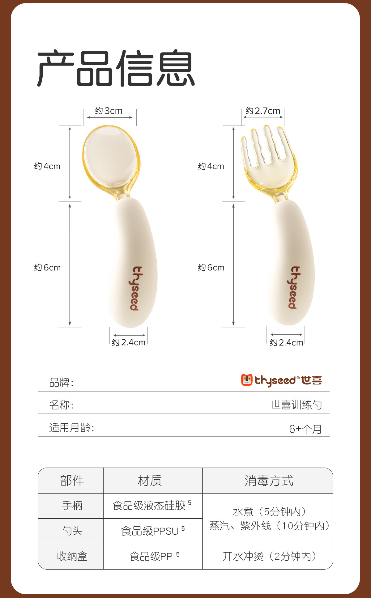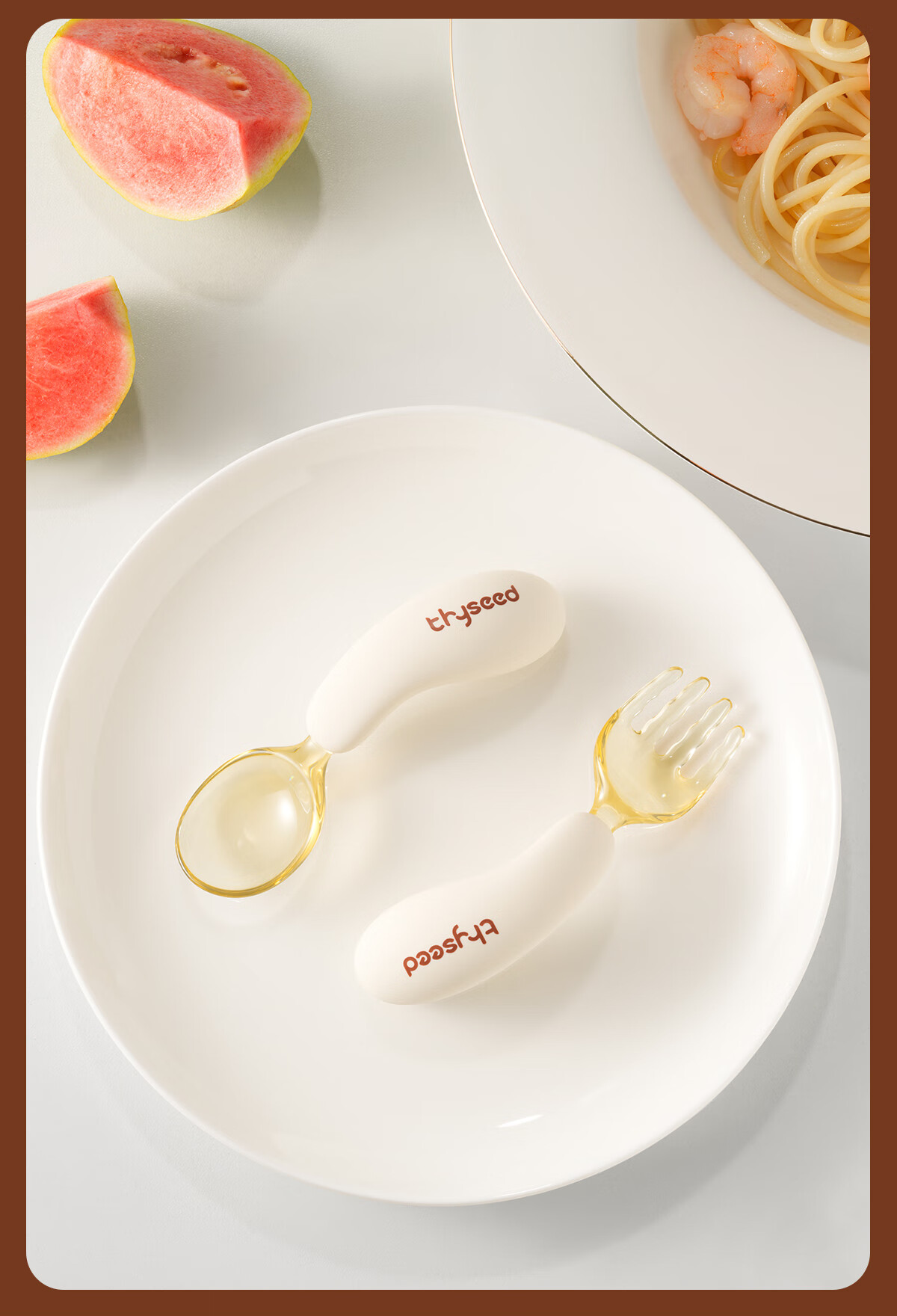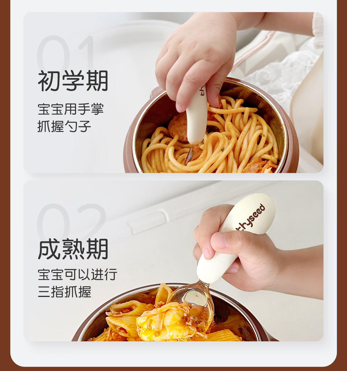 世喜辅食勺婴儿勺子宝宝学吃饭儿童自主进食训练勺PPSU硅胶短柄弯弯勺