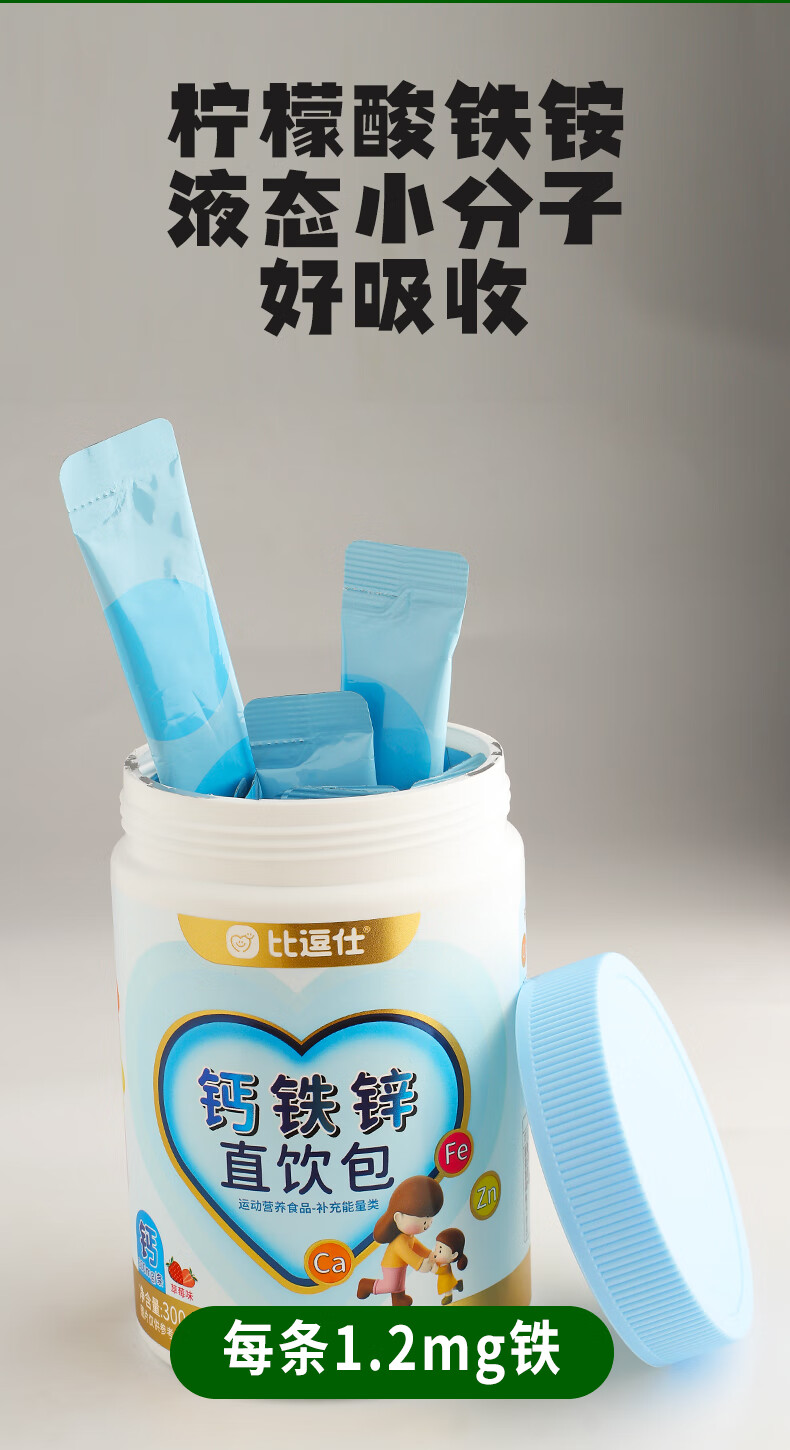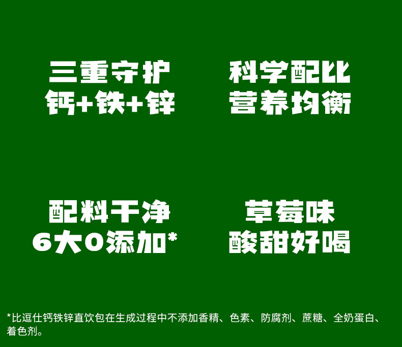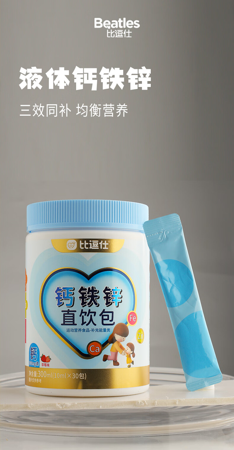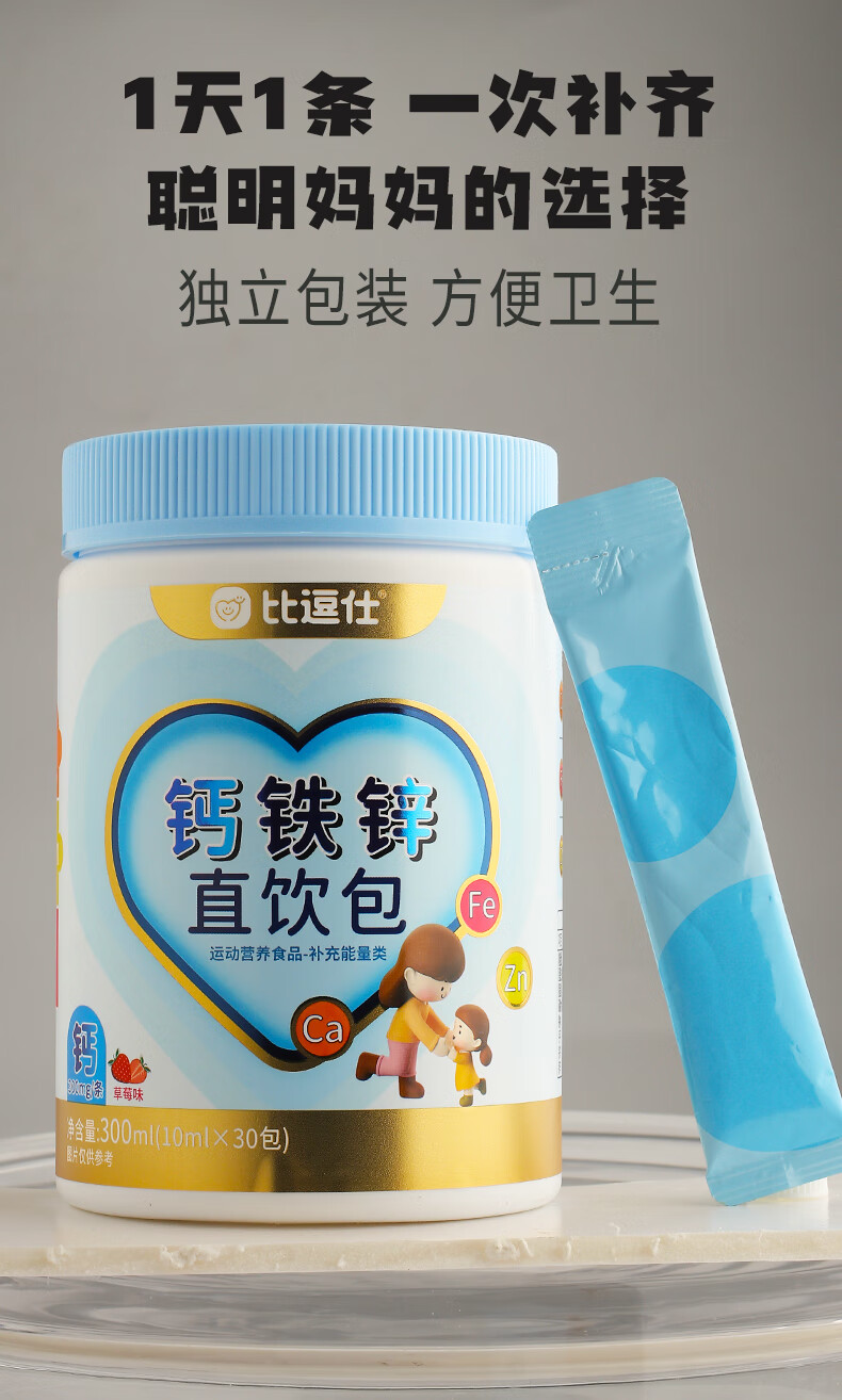 比逗仕钙铁锌直饮包运动营养食品独立包装草莓味即食饮品儿童零食