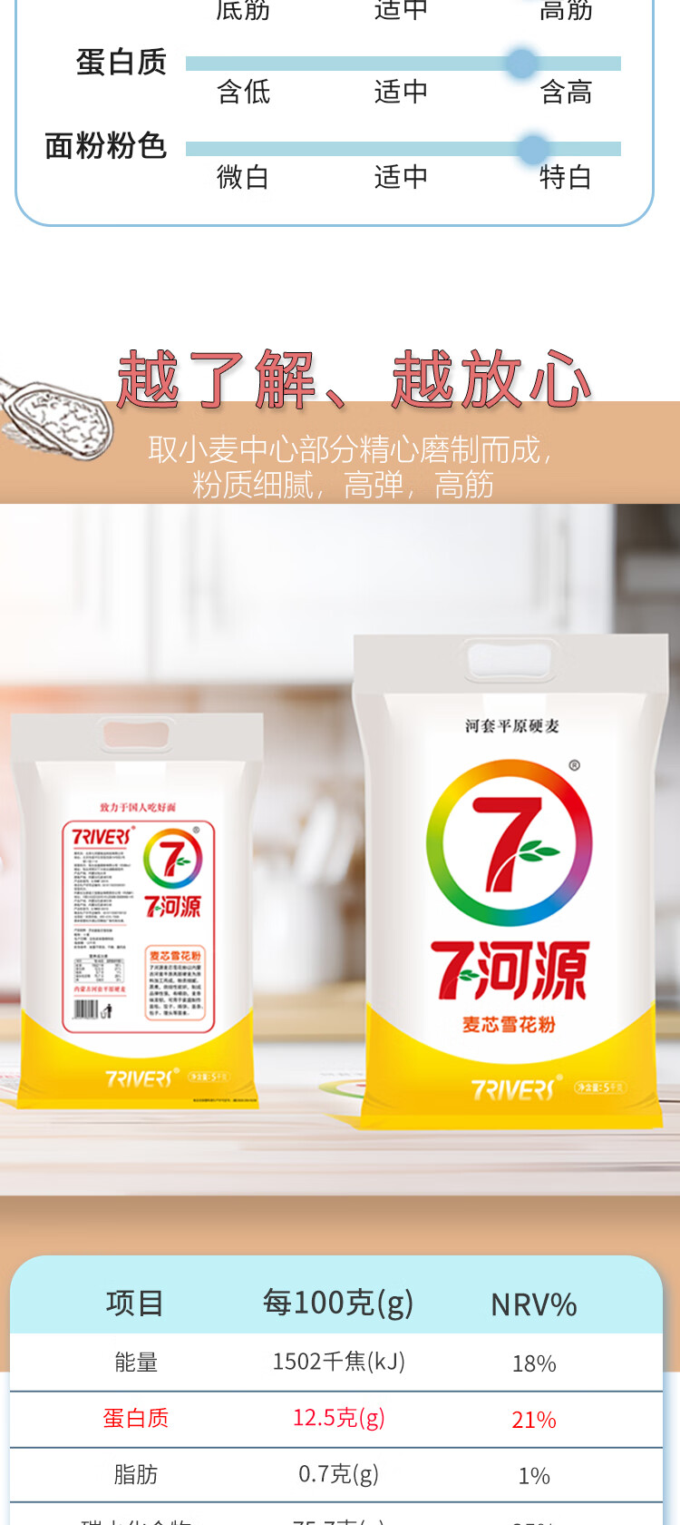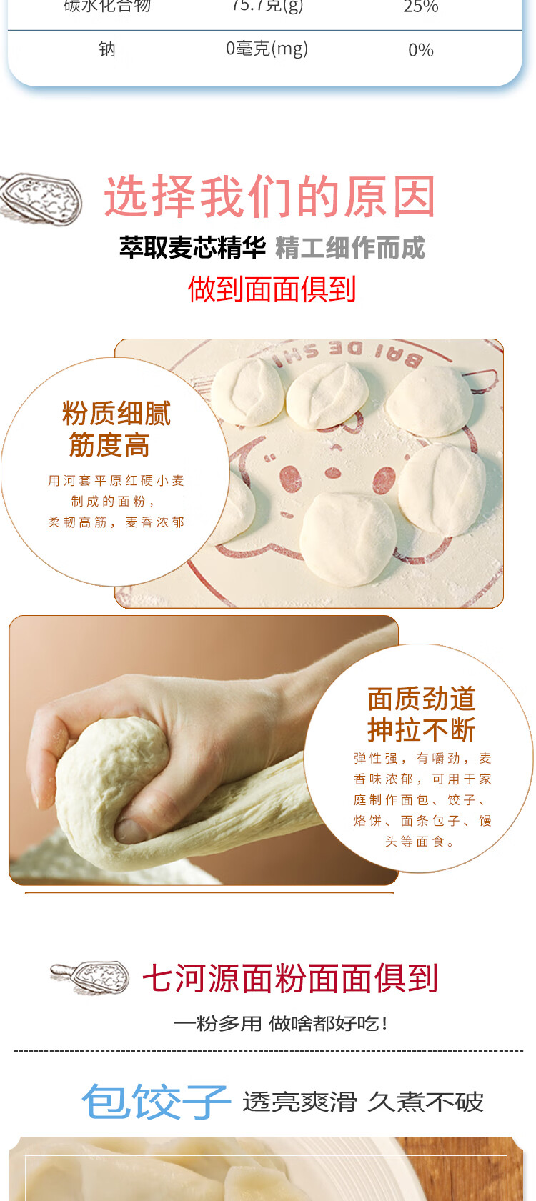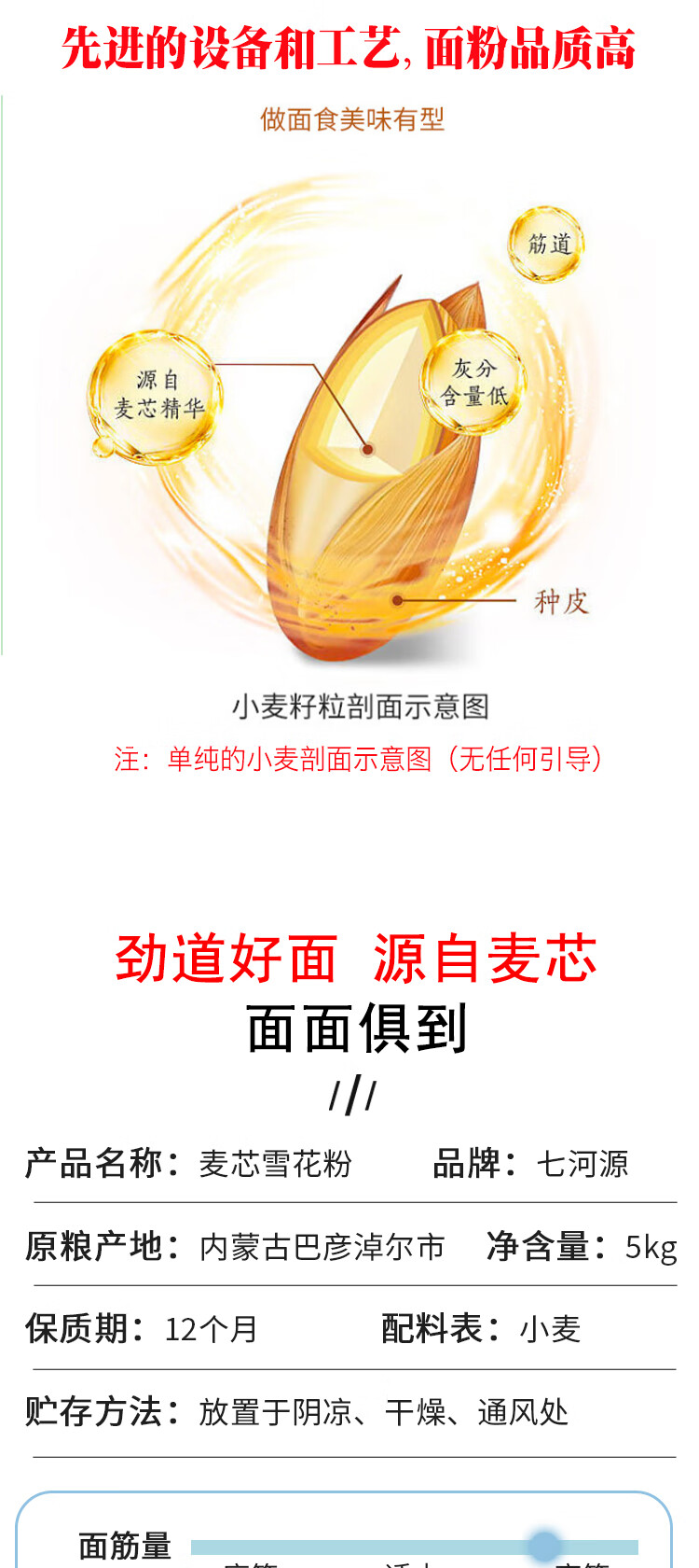 七河源河套平原雪花粉5kg 内蒙面粉10斤 中筋小麦粉 麦芯粉5kg 国家地标