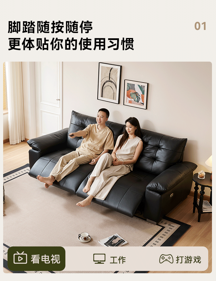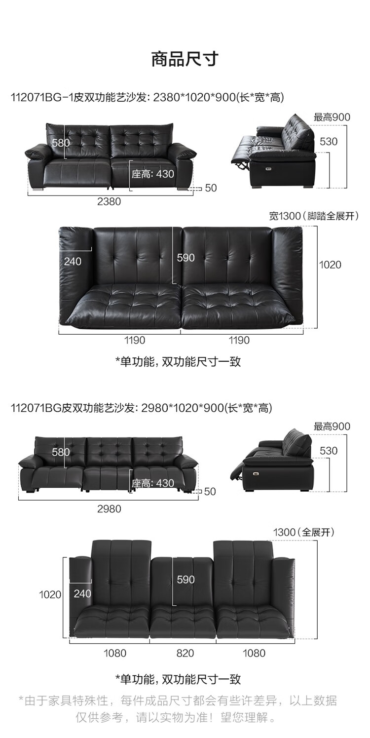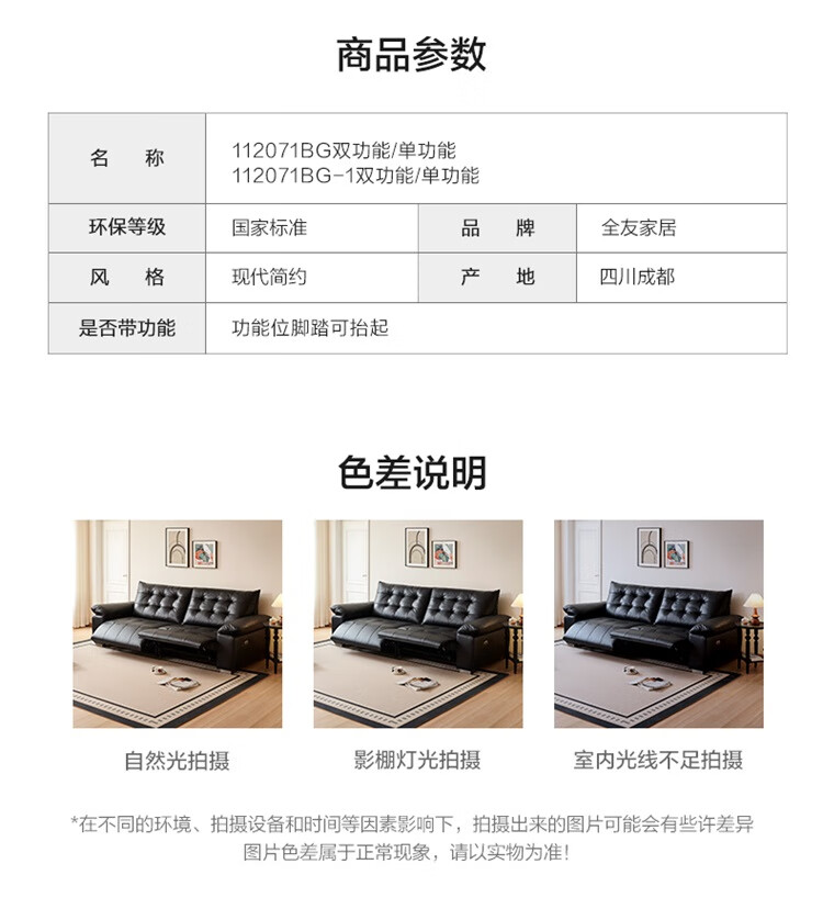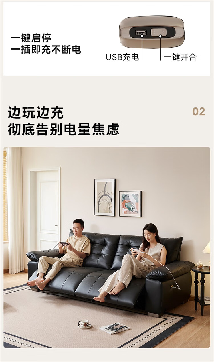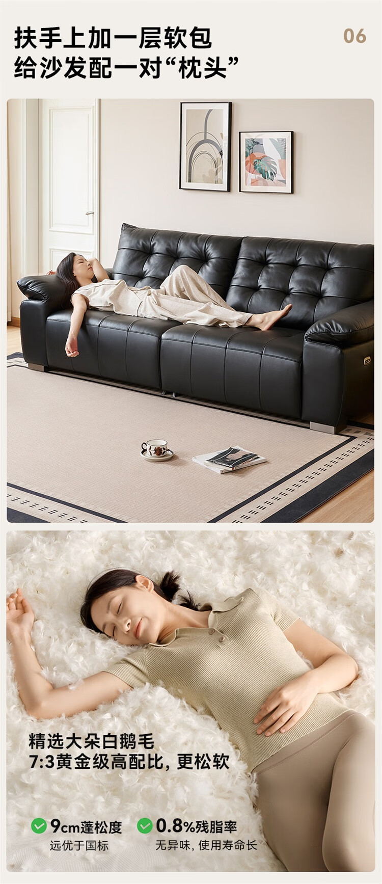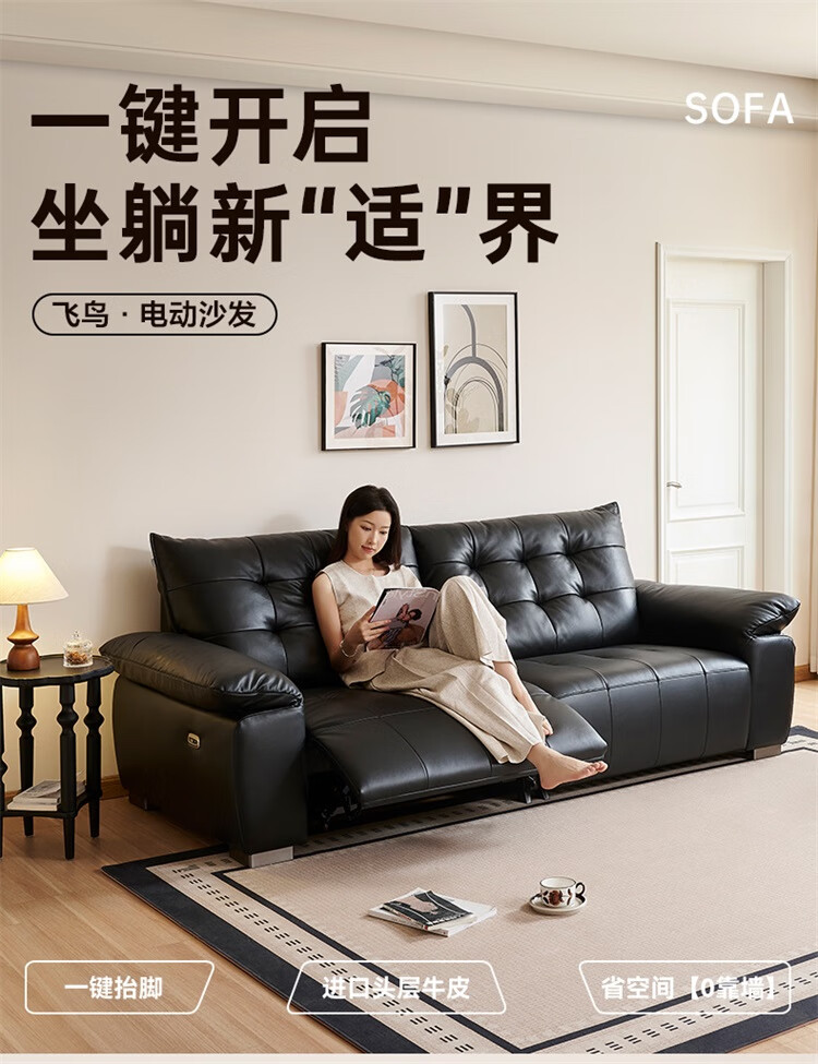 全友家居现代简约家具飞鸟头层牛皮沙发客厅家用一字型新款直排式沙发 【黑茶色|功能版(接触面牛皮)】2.38m右功能位沙发 0靠墙+白鹅毛+德国进口机架