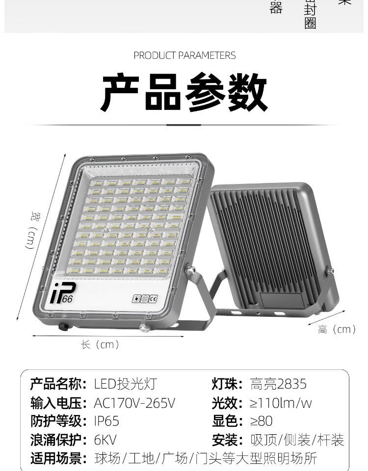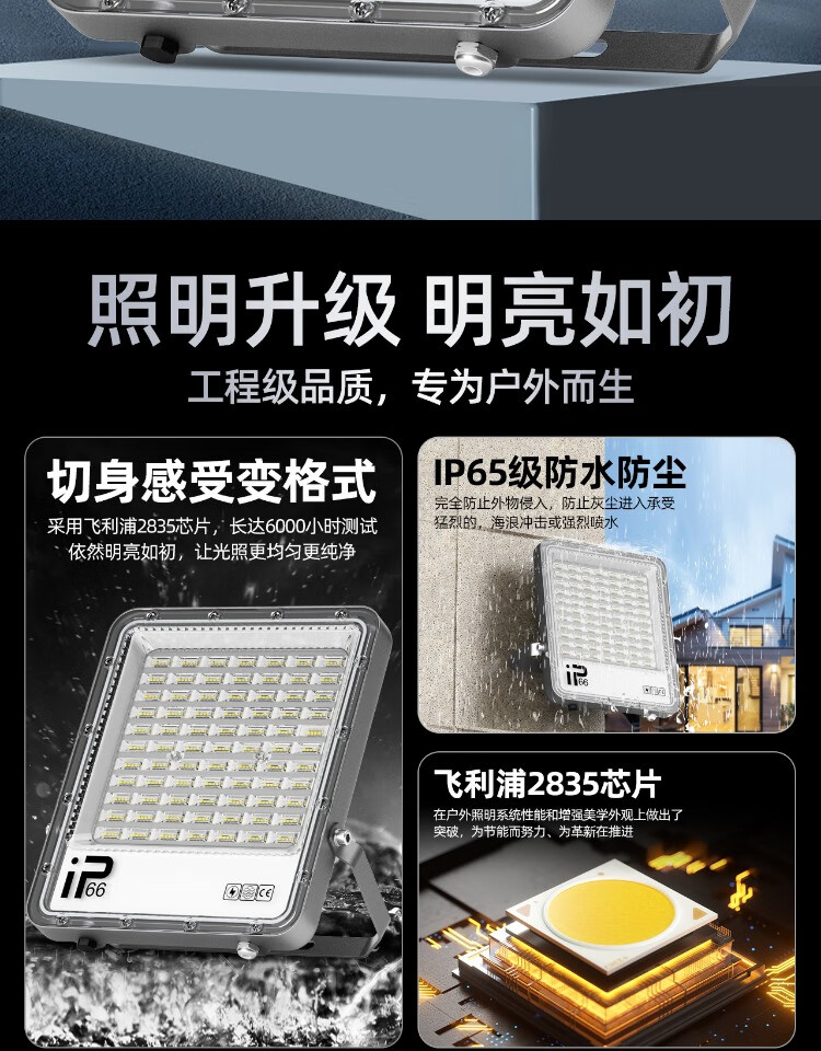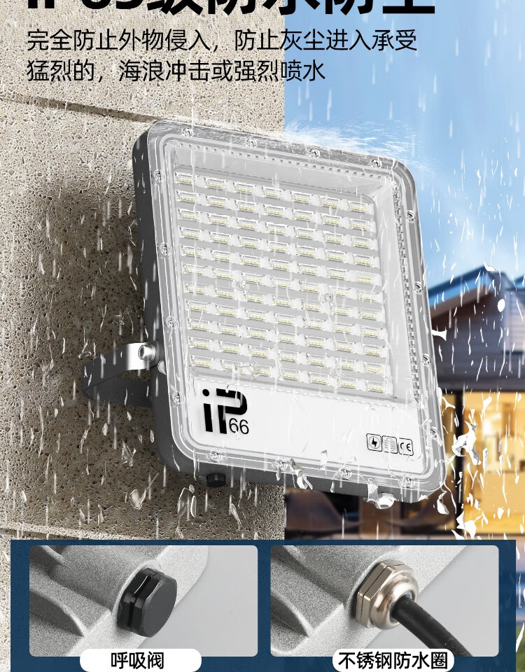 振牛220Vled投光灯户外照明灯探照室外射灯厂房投射泛光强光超亮防水 50W 【白光】照明约30平米左右 足功率220V投光灯