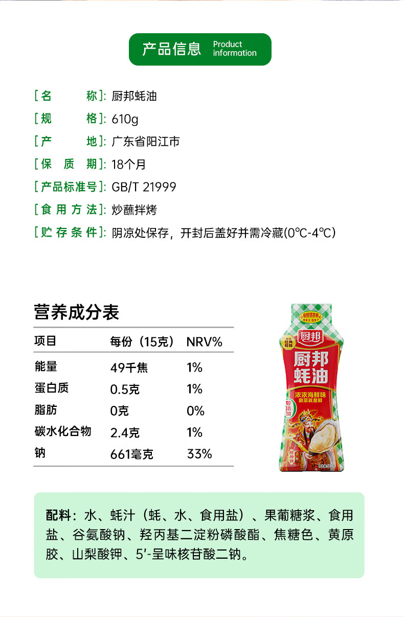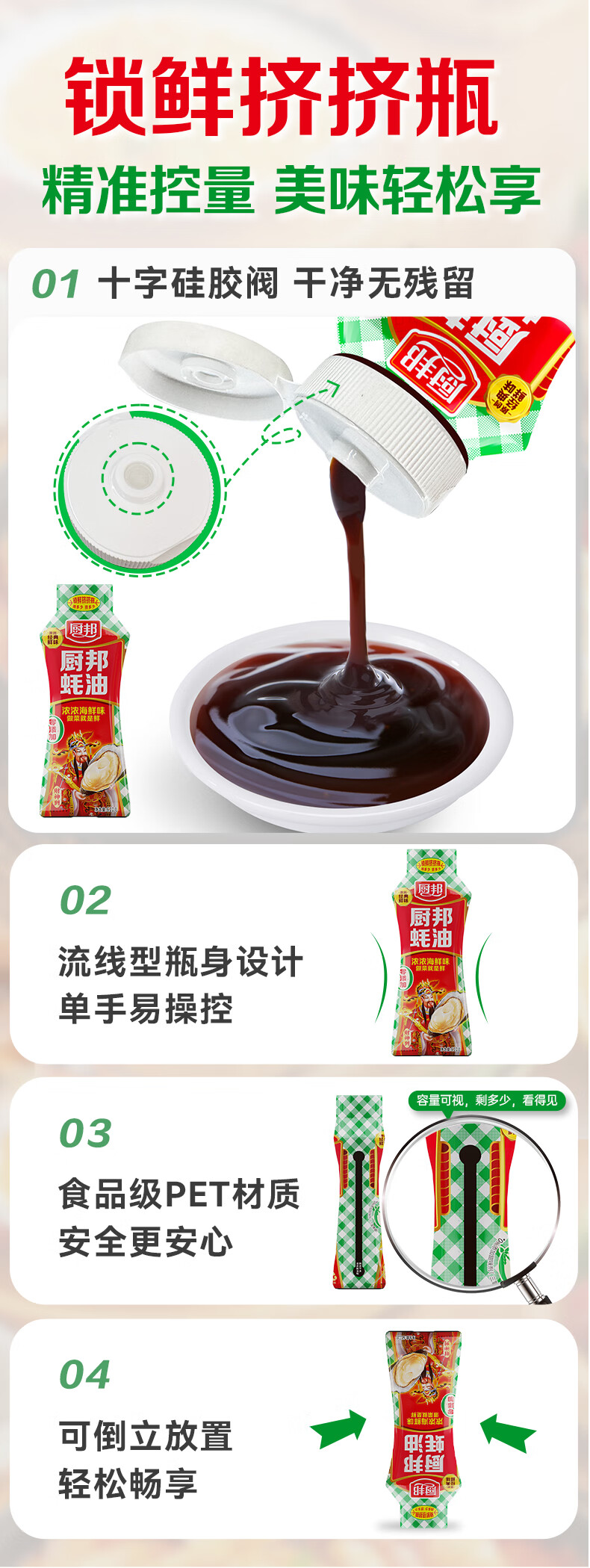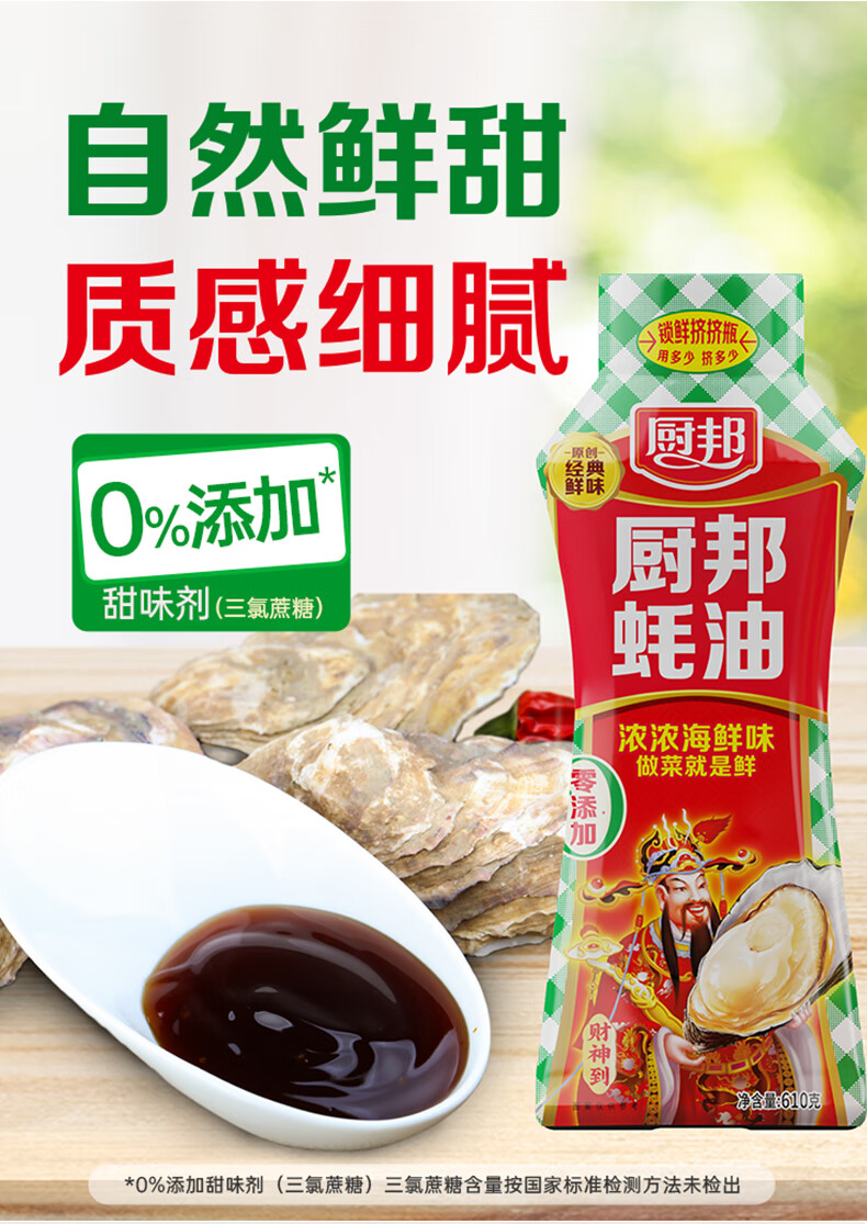 厨邦蚝油 610g 【0脂肪0添加甜味剂】挤挤装 炒蘸拌烤提鲜调料自营