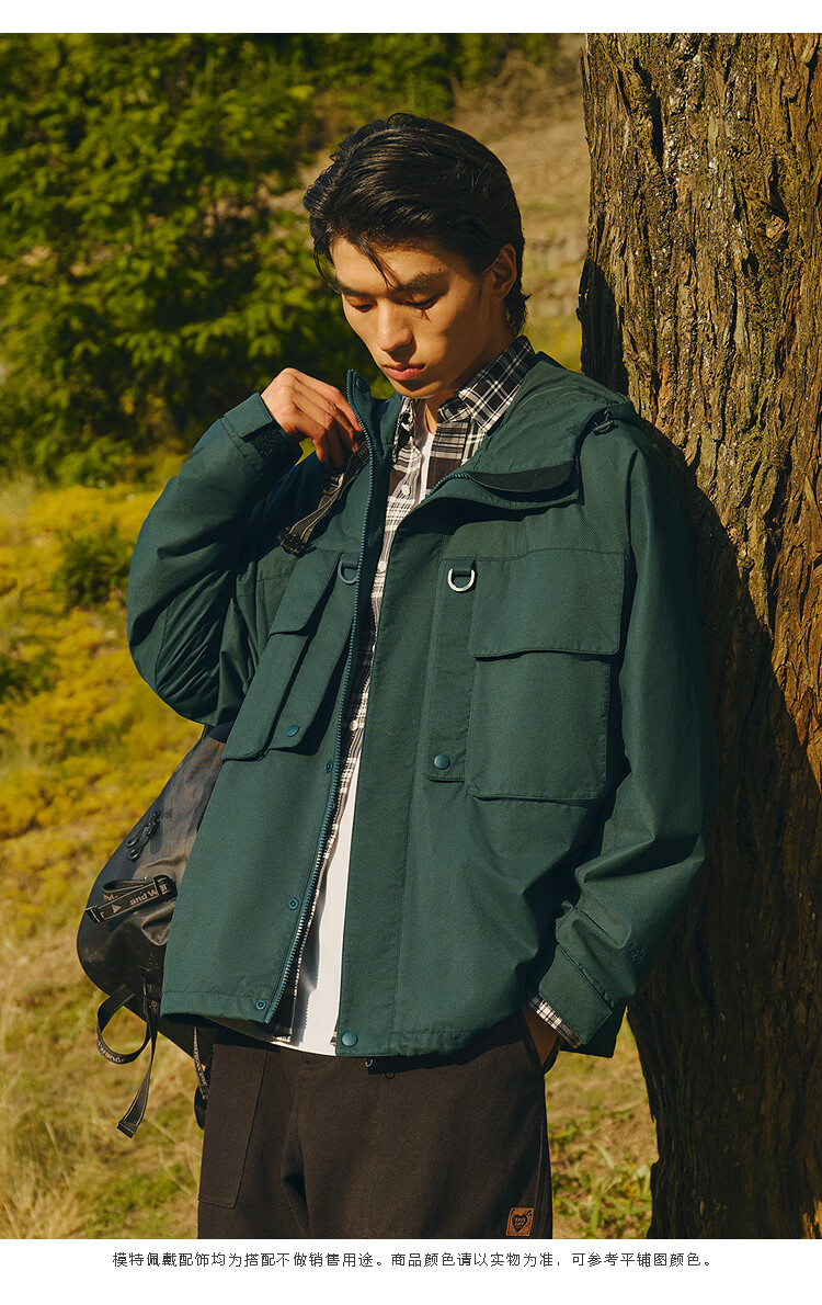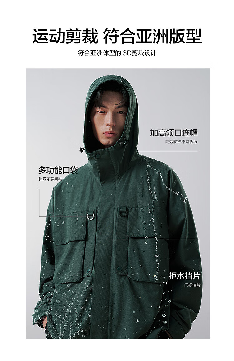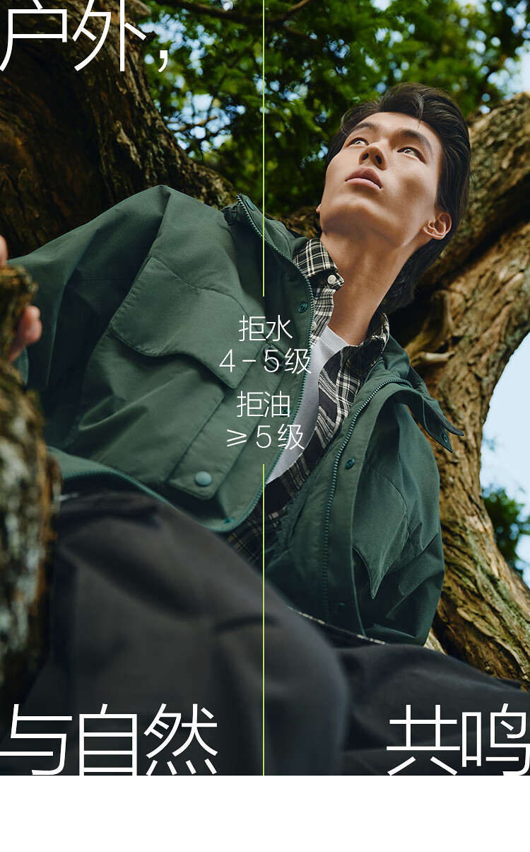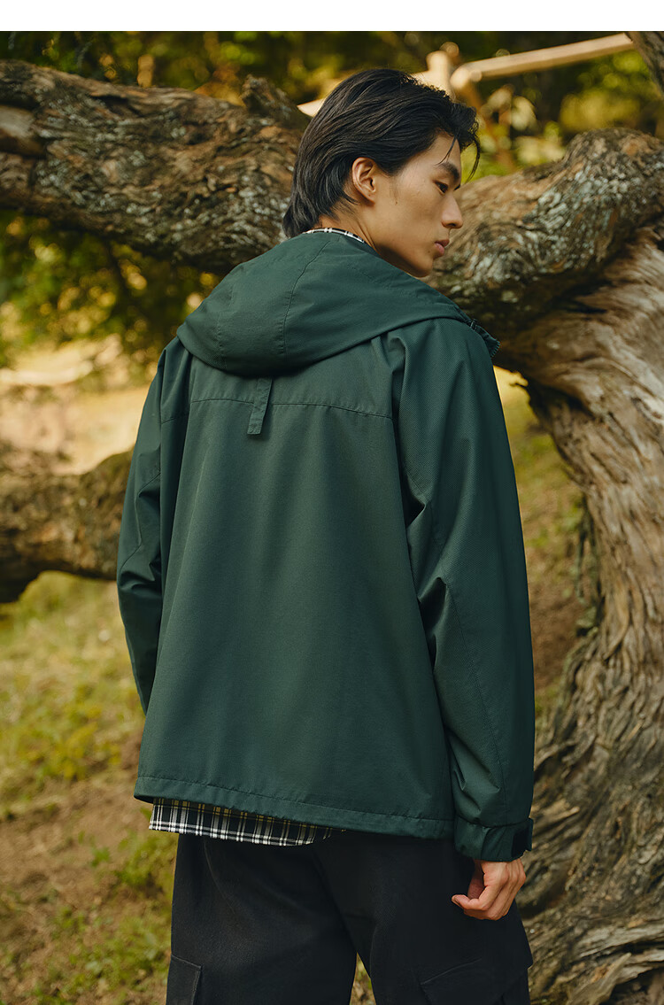 太平鸟男装【京东独家】夹克登山冲锋休闲城市轻户外 墨绿色 XL