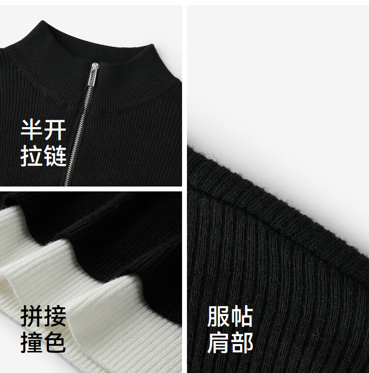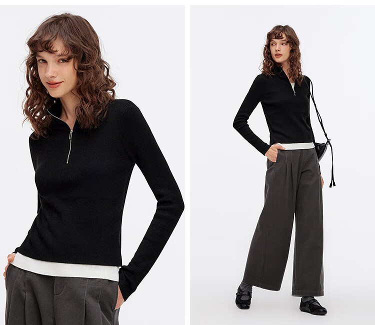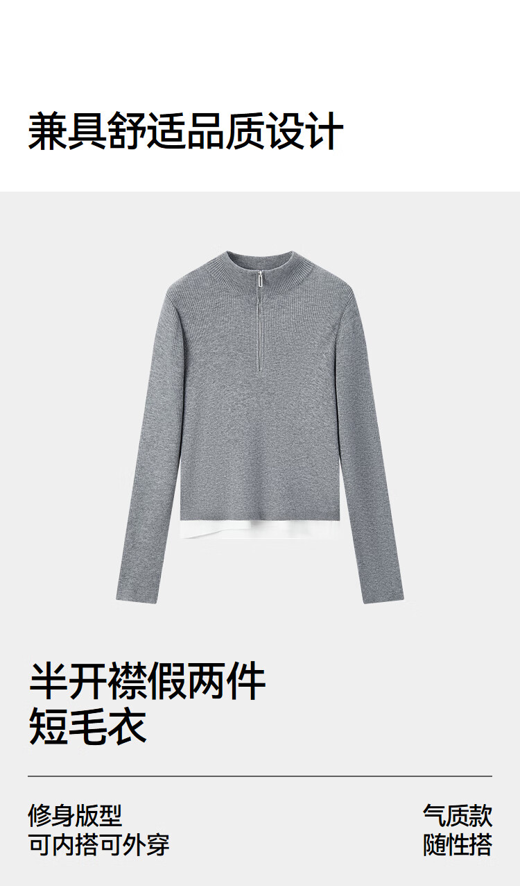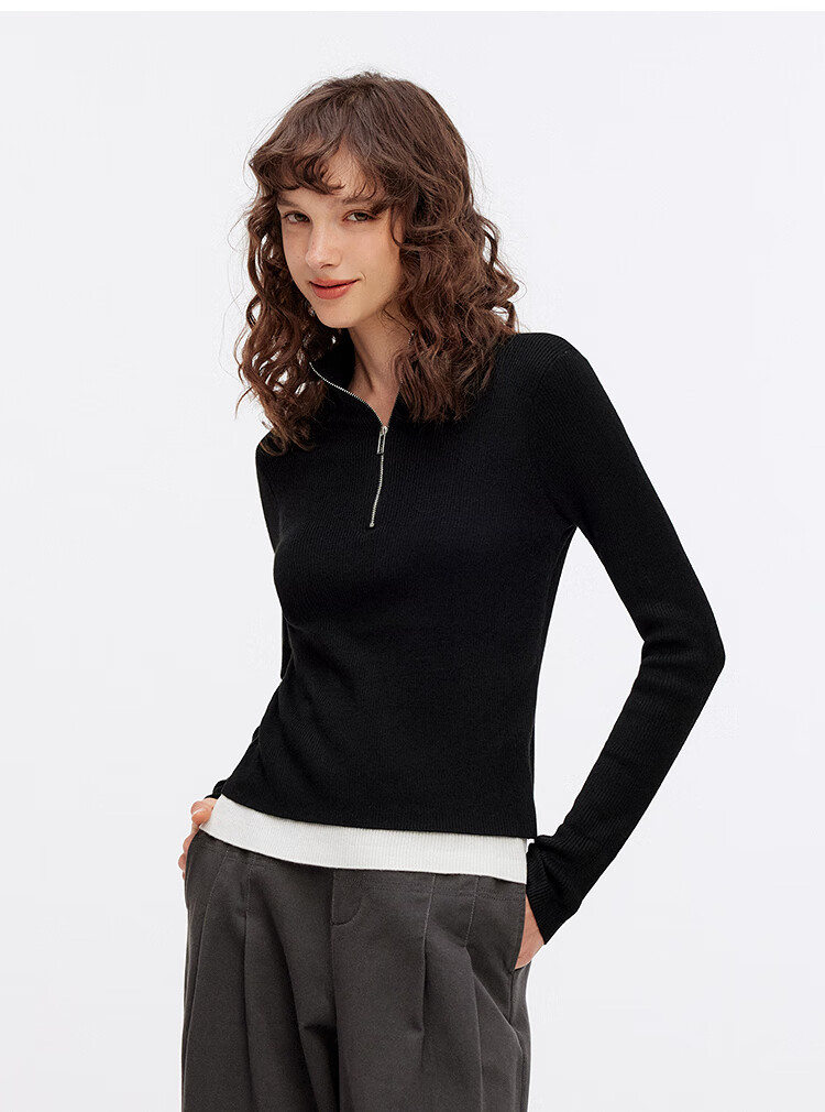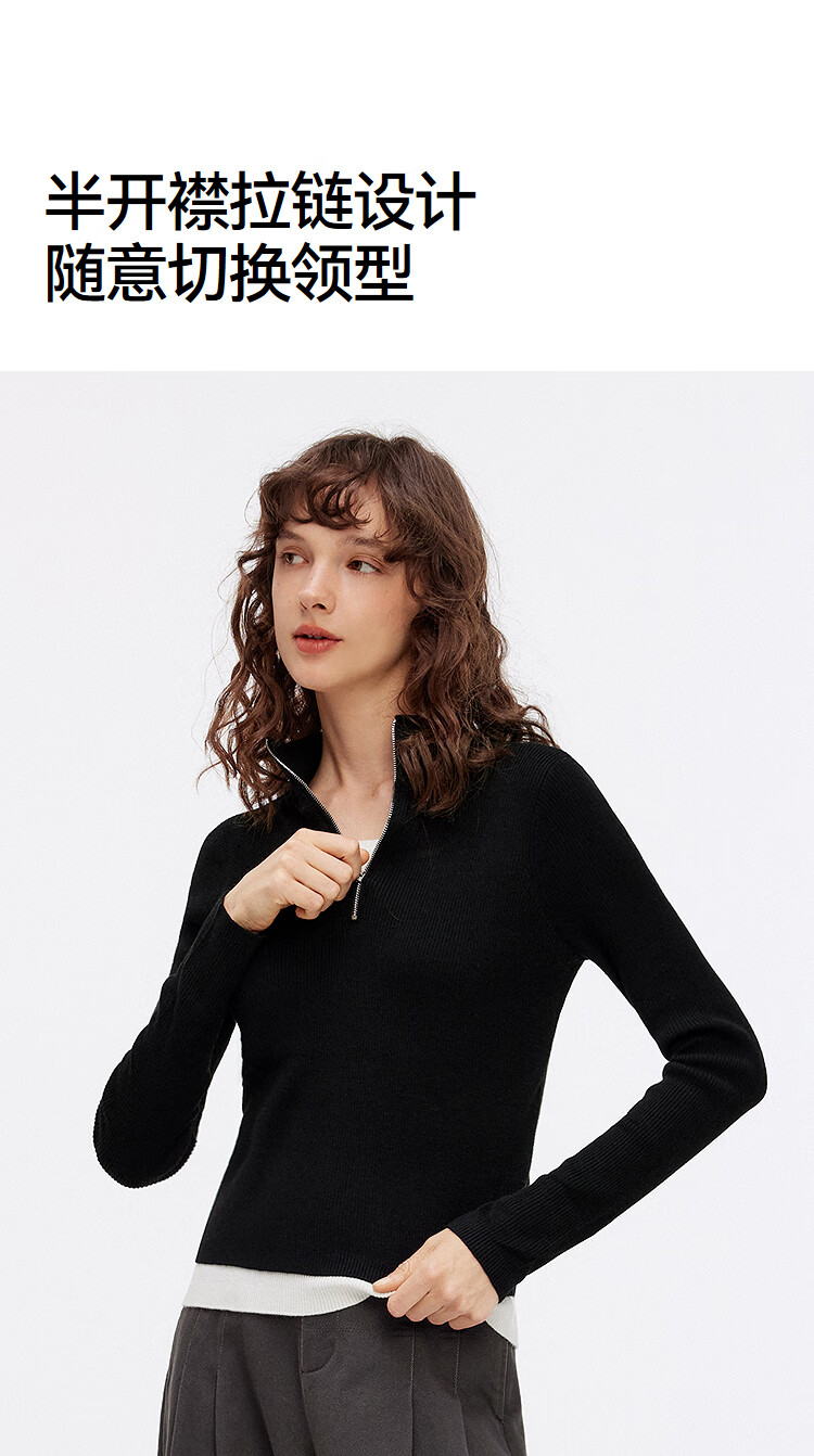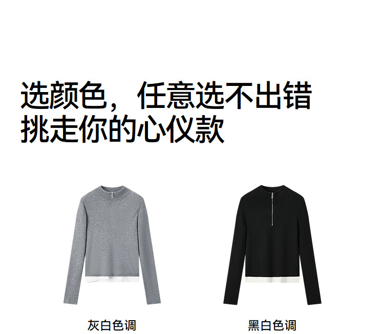 森马(Semir)毛衣女短款撞色假两件百搭女士内搭秋半开襟修身毛衫107524107006