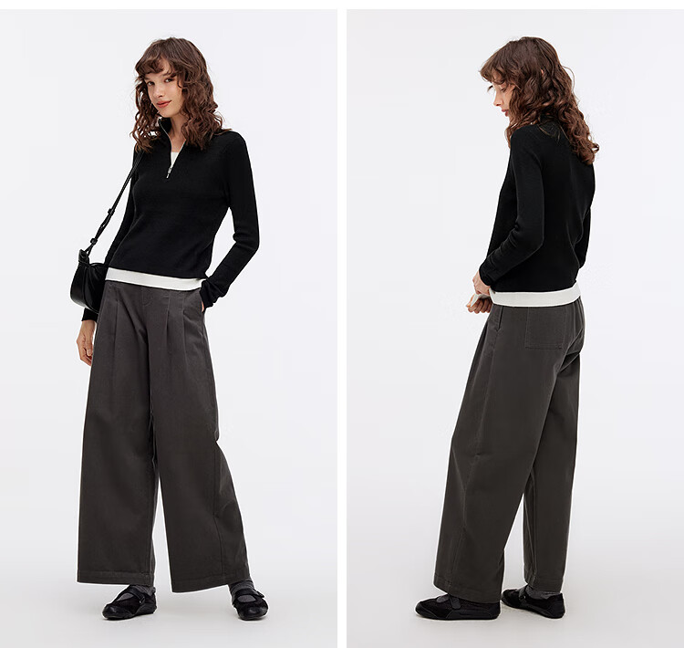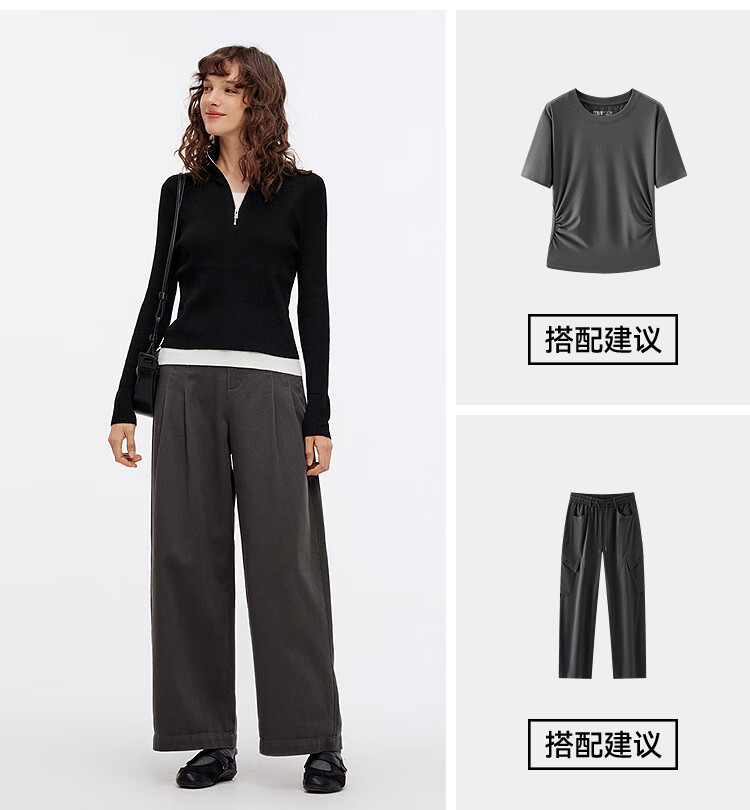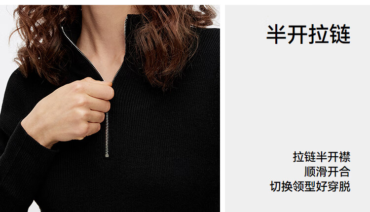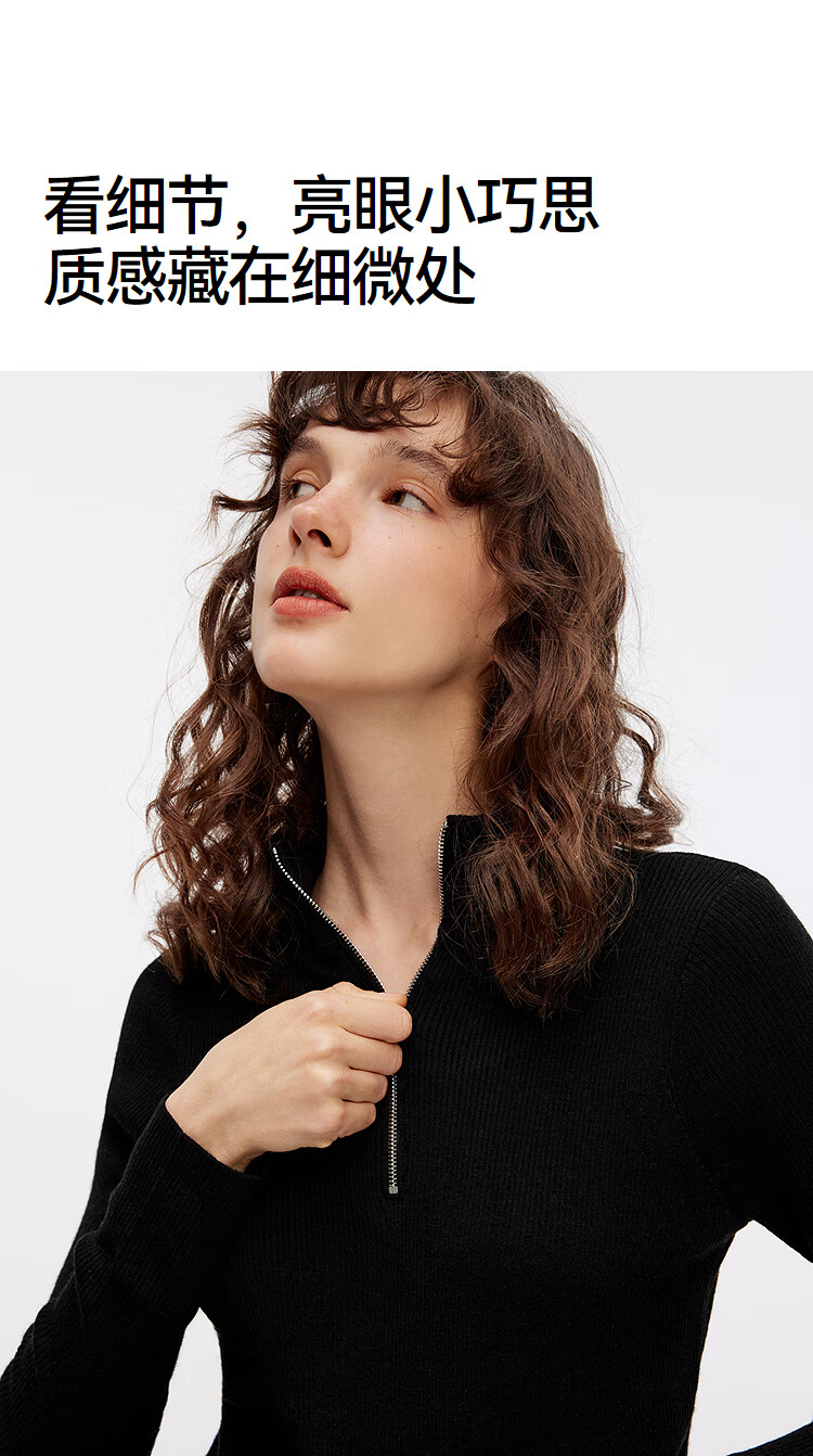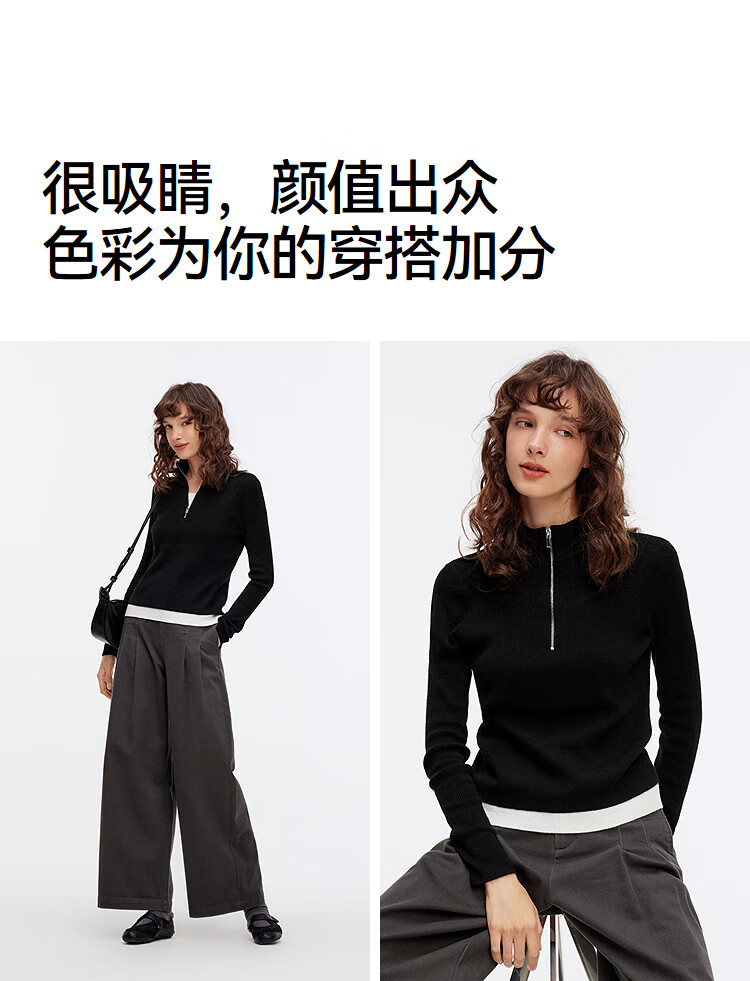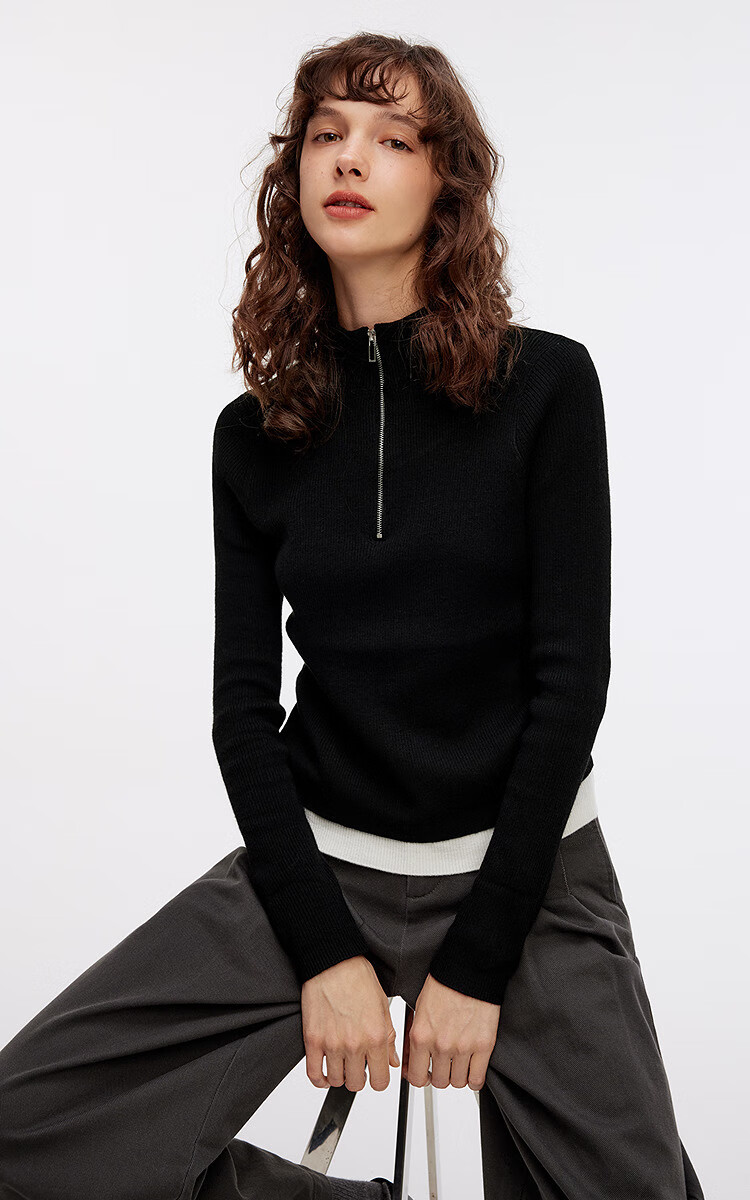 森马(Semir)毛衣女短款撞色假两件百搭女士内搭秋半开襟修身毛衫107524107006