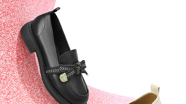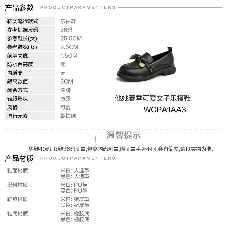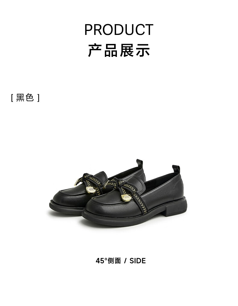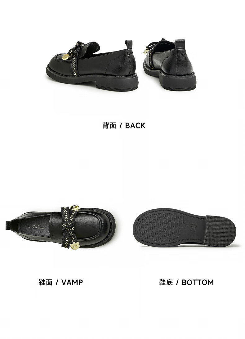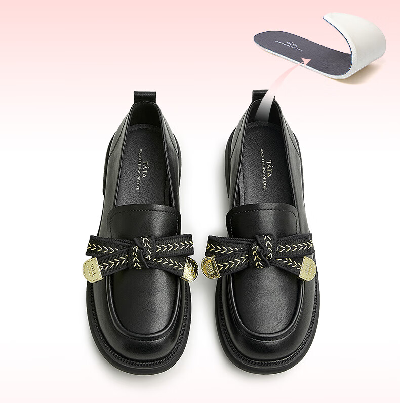 他她Tata通勤百搭乐福鞋2024春季方跟小皮鞋 黑色 36