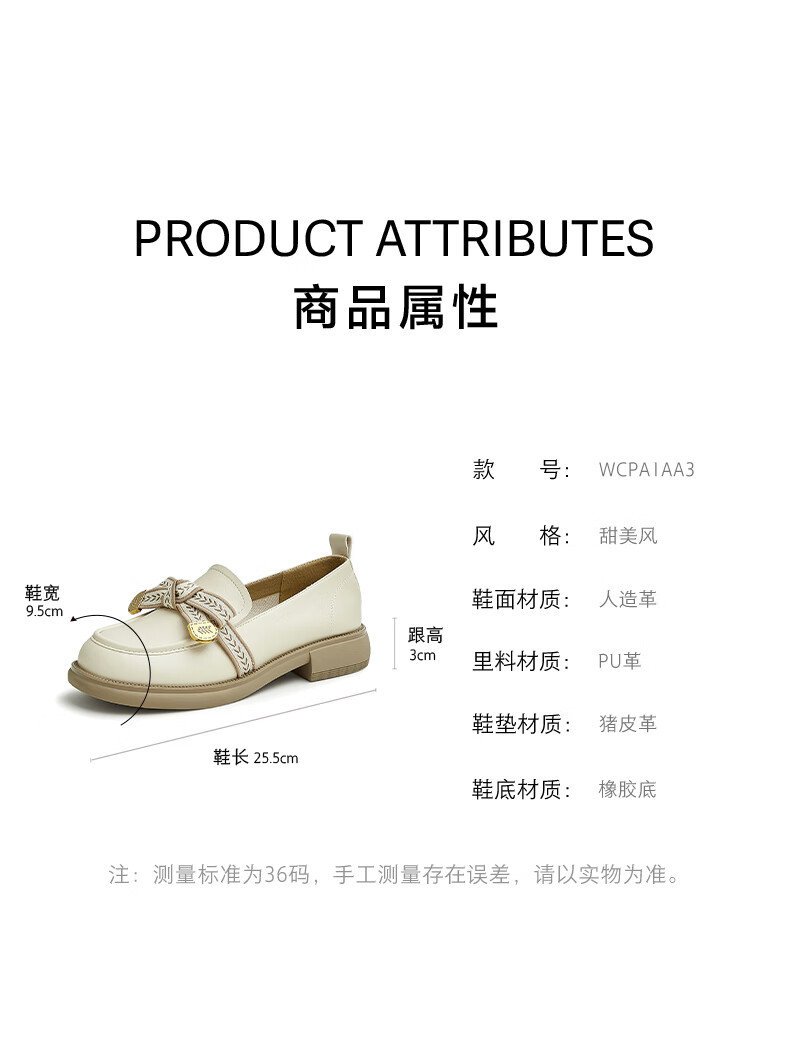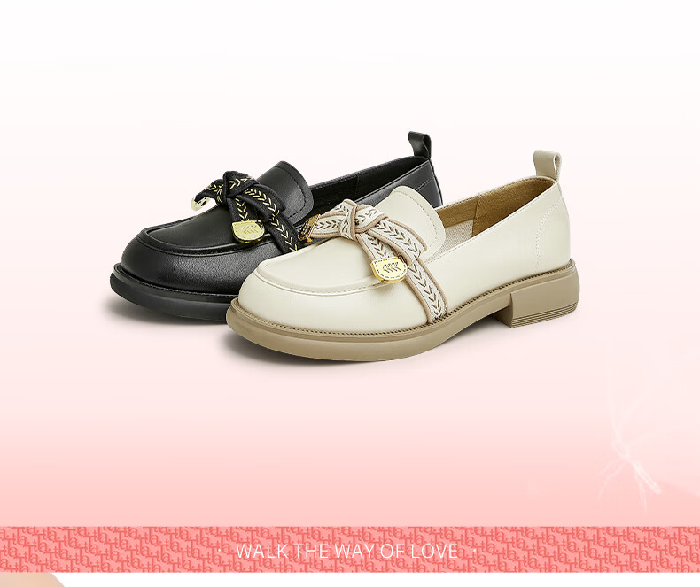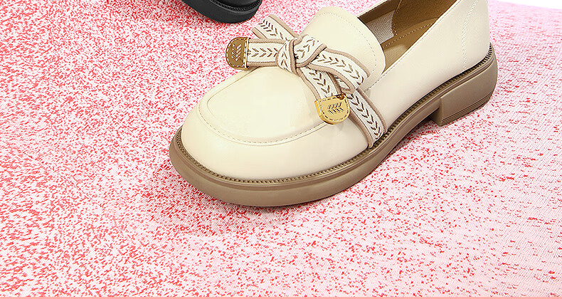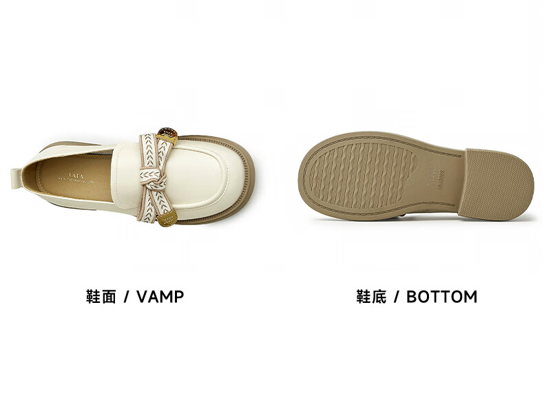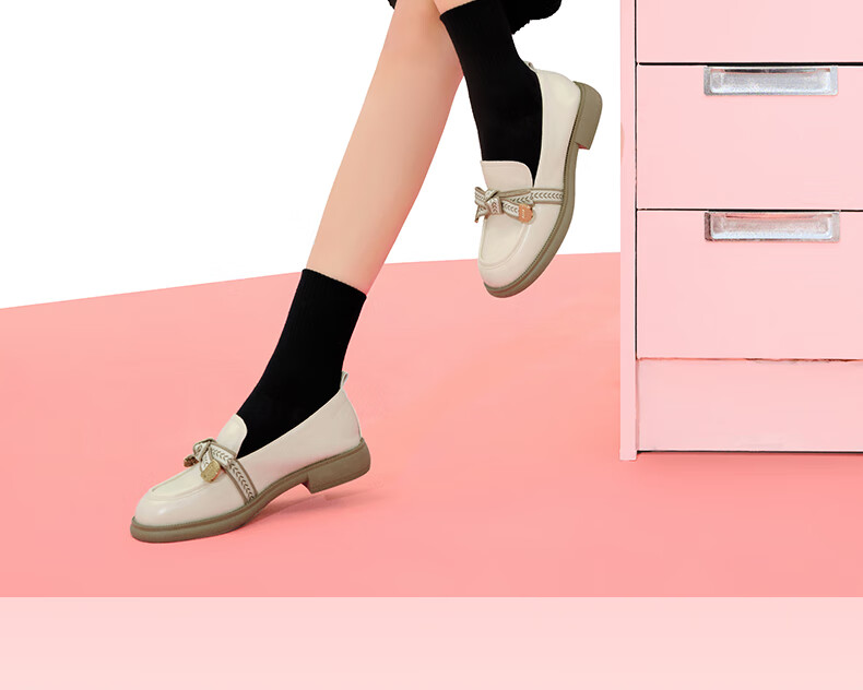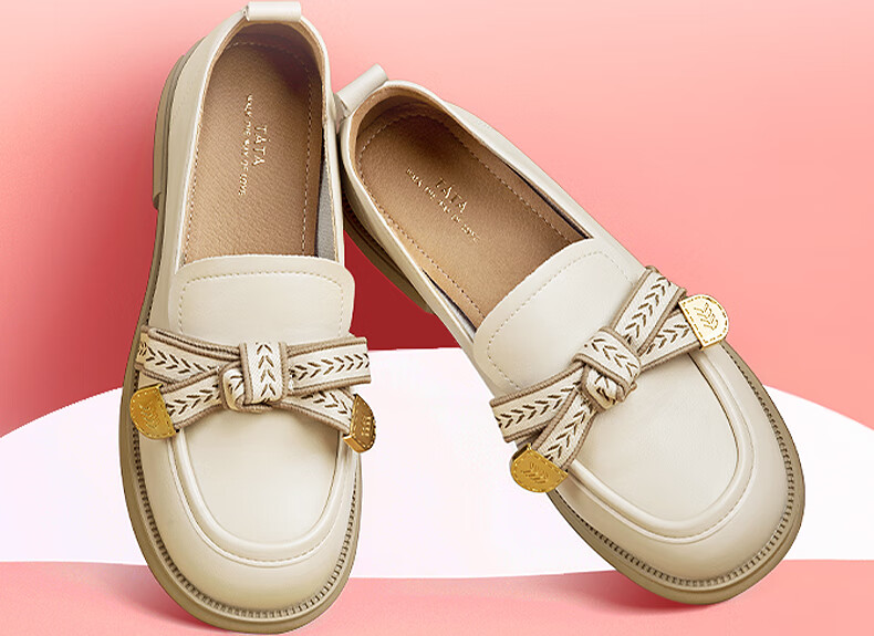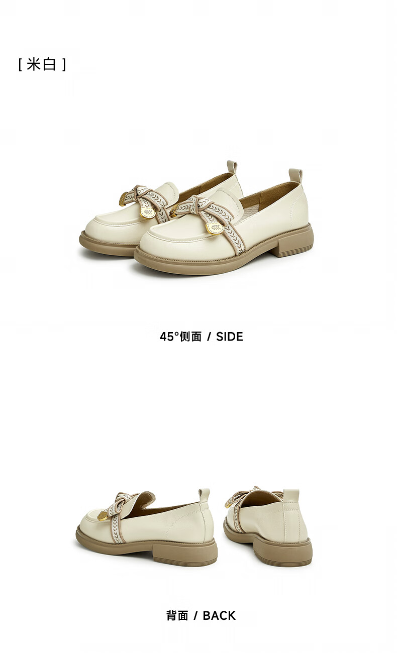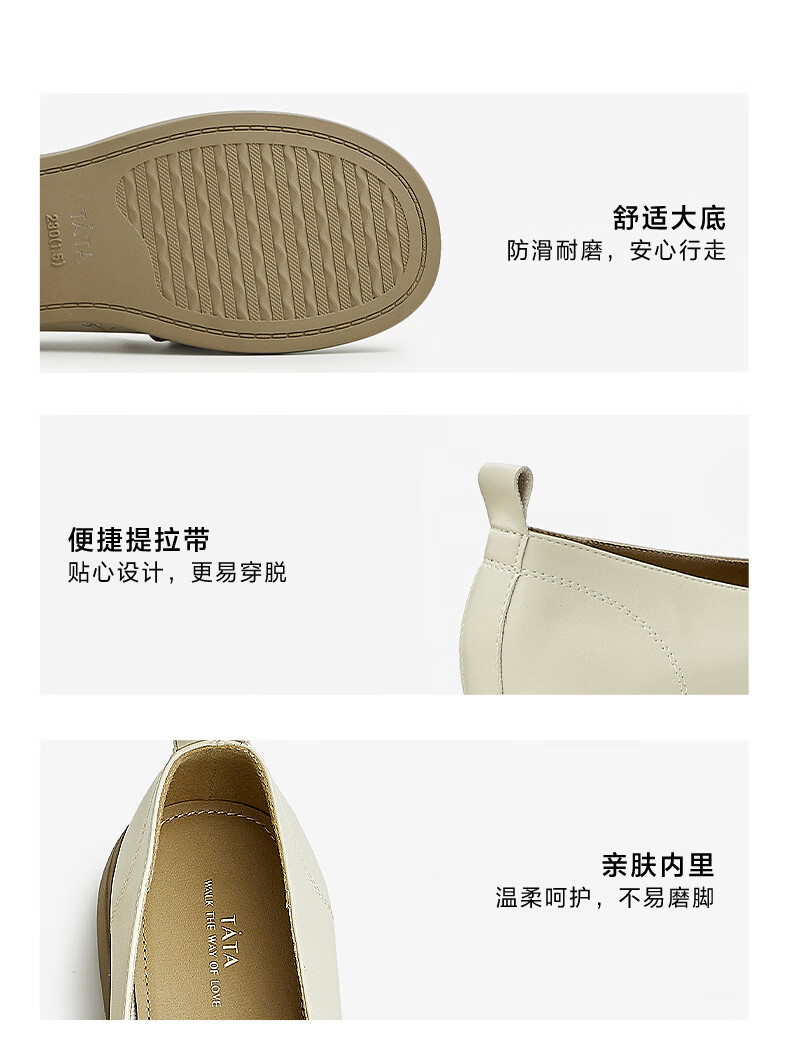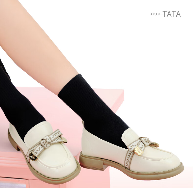 他她Tata通勤百搭乐福鞋2024春季方跟小皮鞋 米白 36