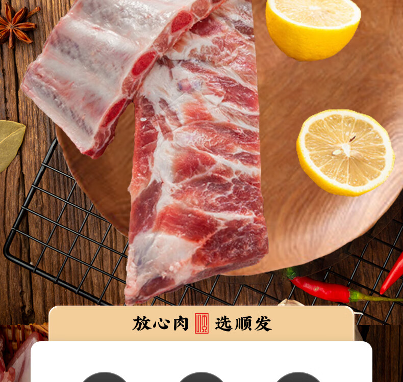 鲁南顺发黑猪排骨 (含脆骨10%) 净重4斤 源头直发